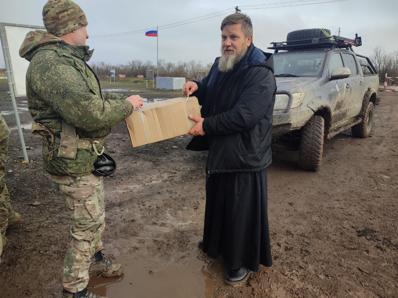 С 22 по 25 ноября староста прихода святителя Николая архиепископа Мир Ликийских села Каменка Козельского района Дмитрий Володиков и прихожанин Денис Галатов совершили поездку в Луганскую область. Жители Каменки и прихожане храма Николая Чудотворца собрали для наших воинов продукты питания, теплые вещи, так же для священников которые окормляют бойцов на передовой взяли Евангелия, лампадное масло, ладан, уголь, кагор, нательные крестики и молитвословы. Очень хотелось лично передать воинам все что было собрано жителями Каменки. По приезду в одно из подразделений путешественники были удивлены и обрадованы когда встретили хорошего знакомого командира из Калужской области. Всё его подразделение состоит из калужан. Им и решили передать всю гуманитарную помощь. Обеспечение у наших бойцов не плохое, но все равно им пришлись кстати и шерстяные носки и войлочные стельки, свитера, газовые баллончики и многое другое. Особенно обрадовались они целой коробке чеснока, который передала жительница Каменки Марина. По Божиему промыслу помощь оказалась адресной, всё что было собрано, получили бойцы из Калужской области.