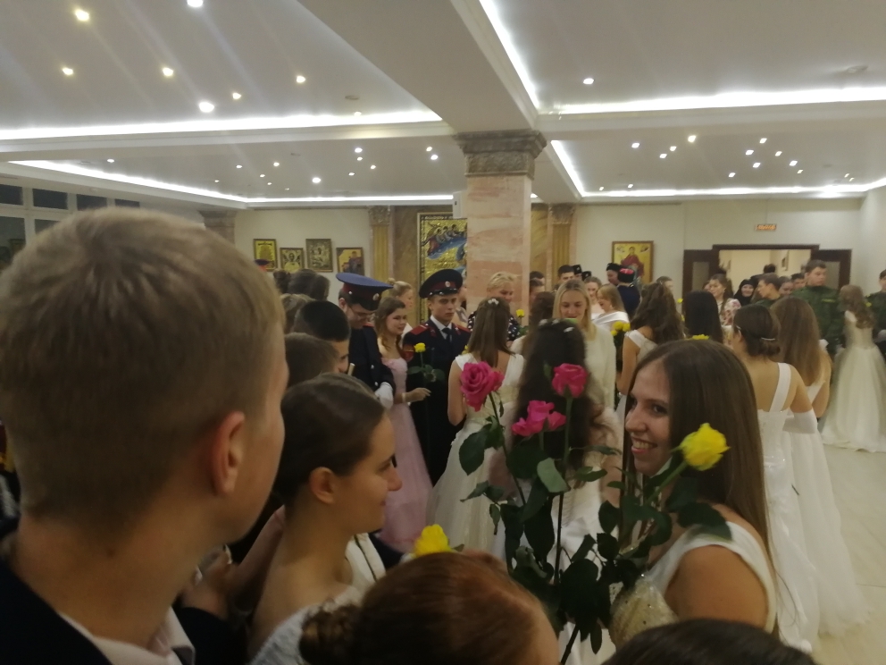 Сегодня, на фоне современной массовой культуры, бал – отчасти благодаря классической литературе — это скорее образец следования традиционным ценностям. Каким? Пониманию идеалов женской красоты. Мужественности. Восприятию этикета общения, в котором имеет место такт, вежливость, услужливость, обходительность – во время танца и традиционного бального фуршета – как выражение христианских ценностей служения и любви к ближнему. Ну, а то, что касается традиционной христианской ценности целомудрия – то, бальный этикет уж гораздо более строг, чем правила поведения, принятые в большинстве молодежных компаний, в отношении сдержанности и дистанции в поведении участников бала и обязует и во время танцев, и во время общения. После исполнения песни «Покров Богородицы» все гости бала получили по розе как символу чистоты и целомудрия. Традиционный и даже классическим является бальный протокол и по выбору музыки – традиционным классическим вальсам, полонезам, полькам. Ведь среди авторов этих танцев можно назвать много композиторов-классиков.
