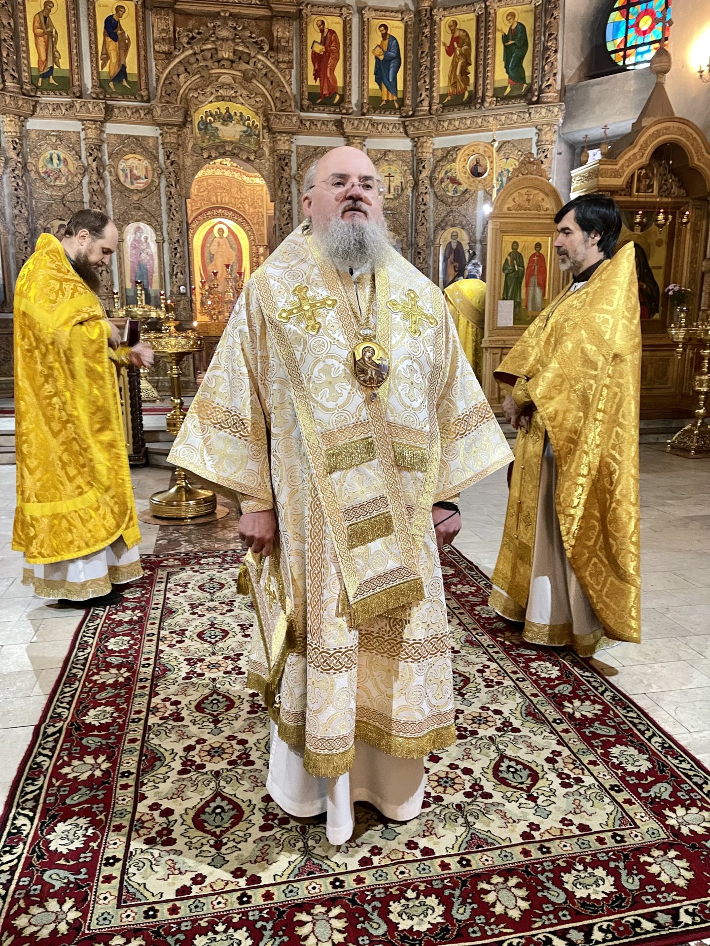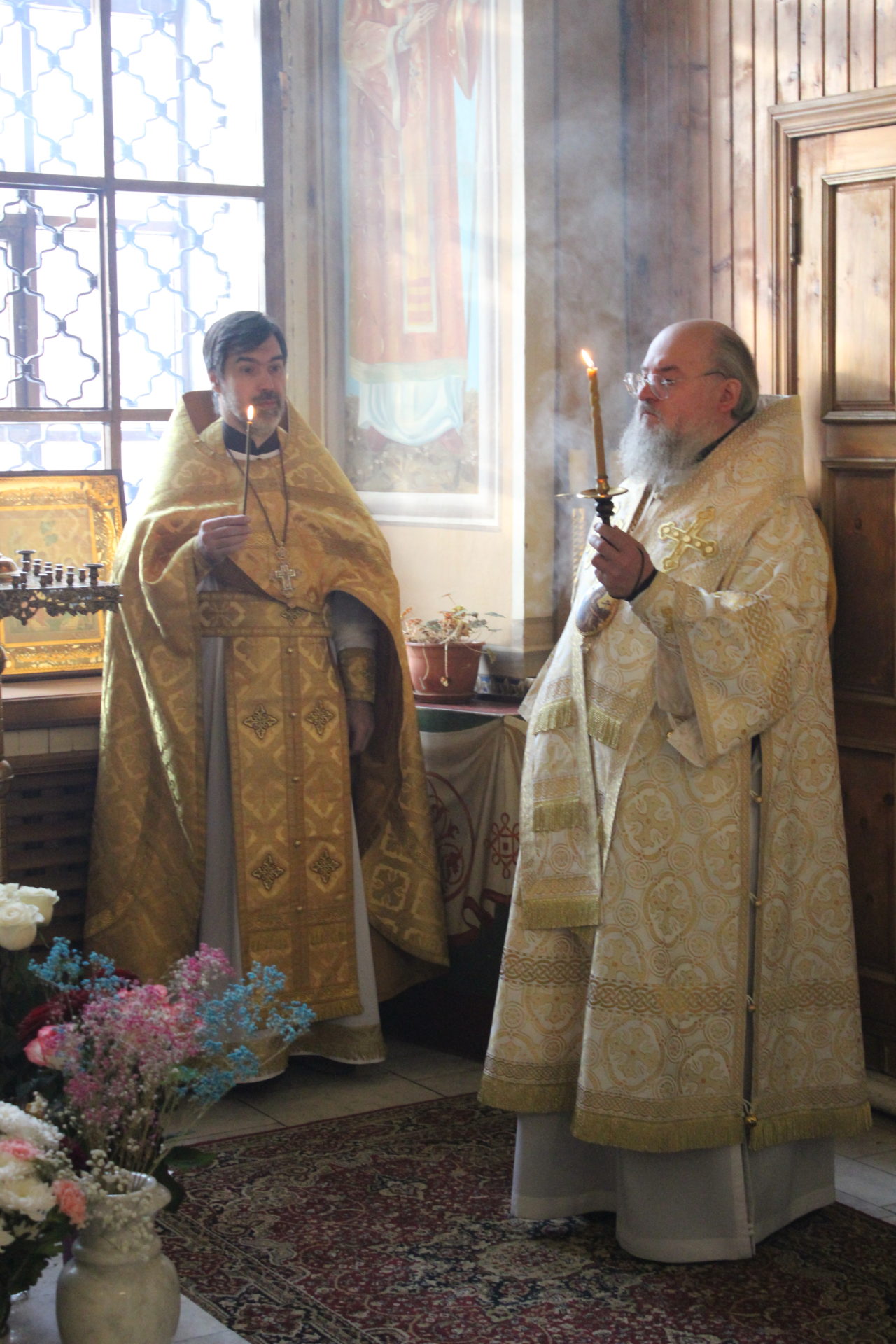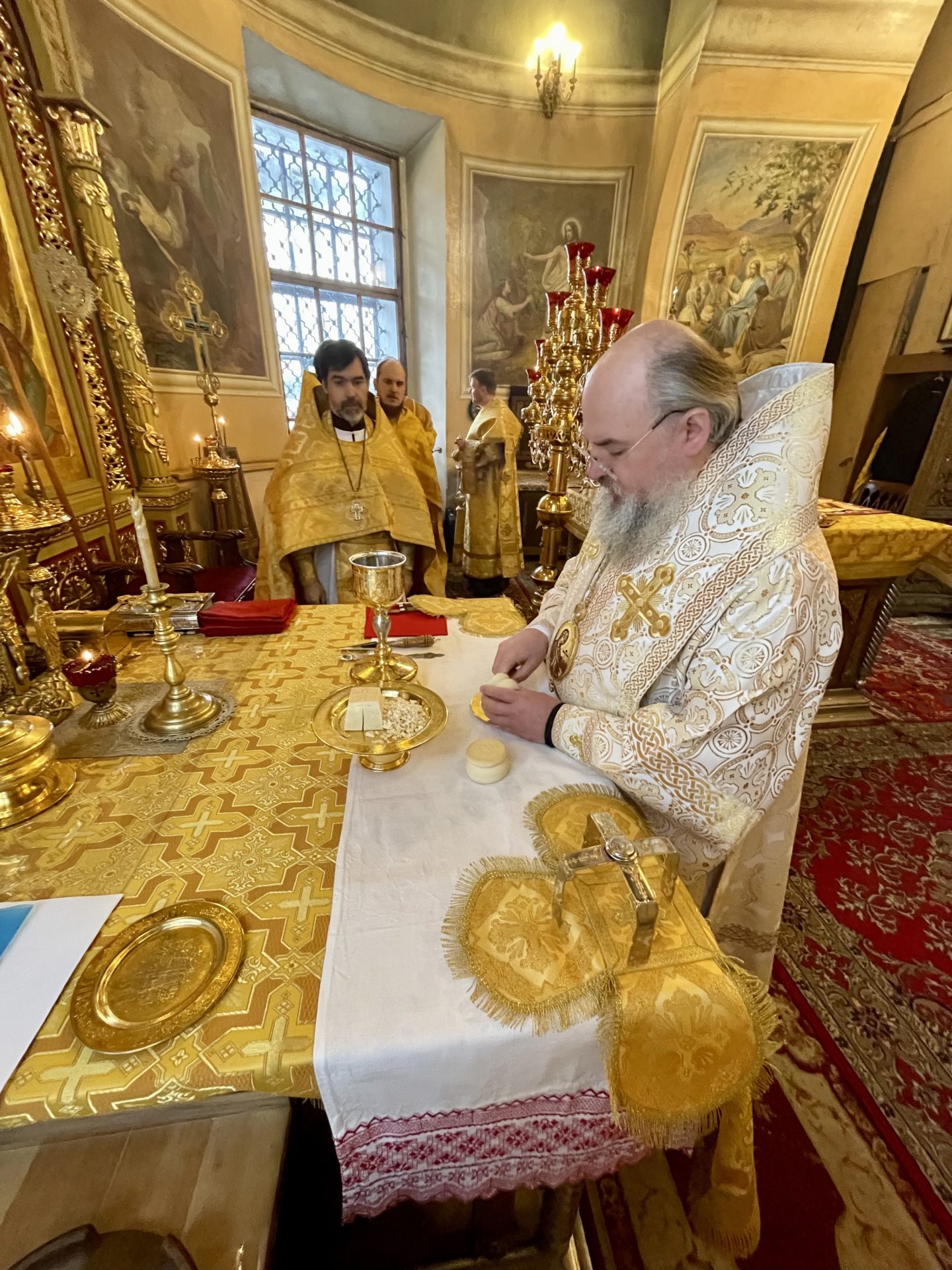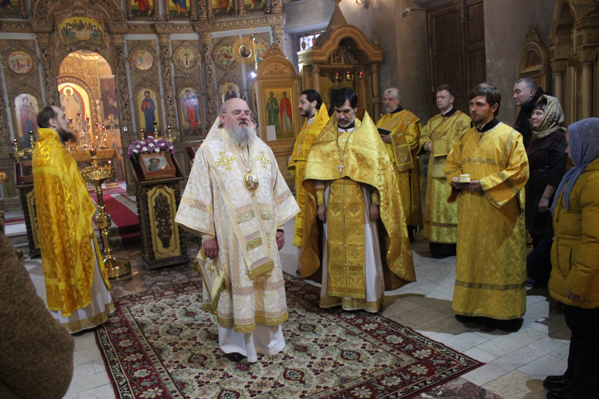 Архипастырю сослужили: настоятель прихода протоиерей Вадим Кудрявцев, протоиерей Антоний Хатунцев, иерей Максим Немыченков, иерей Николай Лукашов, диакон Олег Митин и диакон Евгений Ковригин.