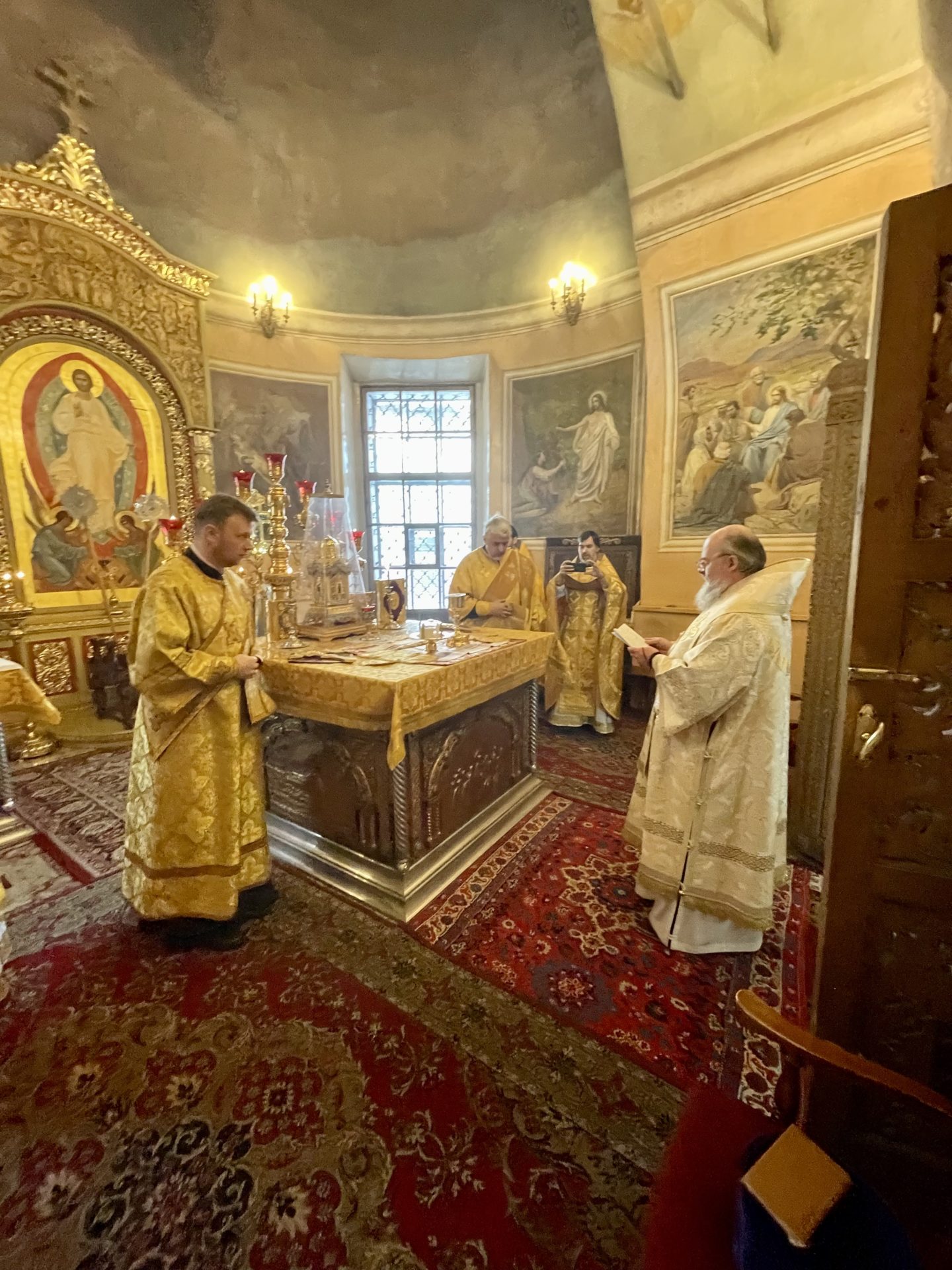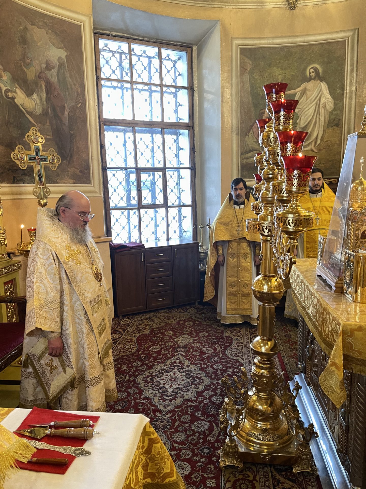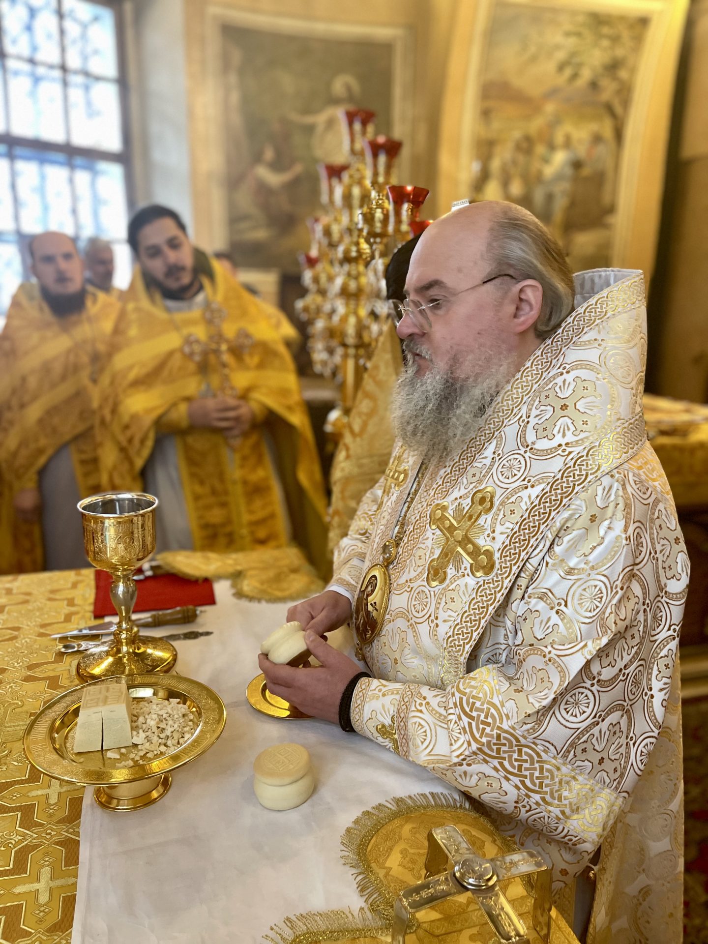 Архипастырю сослужили: настоятель прихода протоиерей Вадим Кудрявцев, протоиерей Антоний Хатунцев, иерей Максим Немыченков, иерей Николай Лукашов, диакон Олег Митин и диакон Евгений Ковригин.