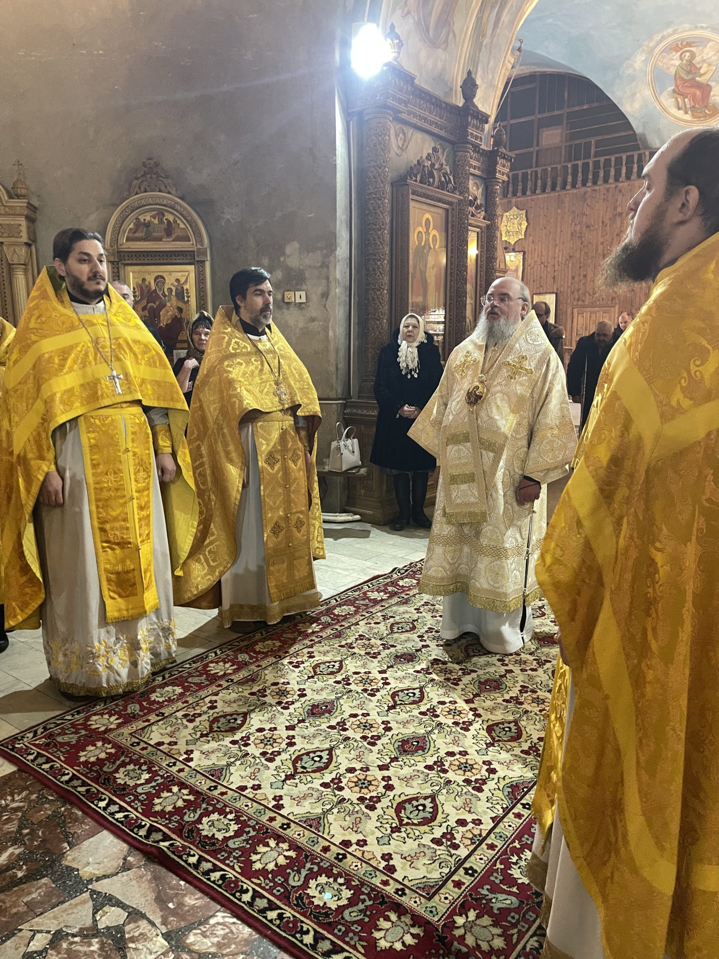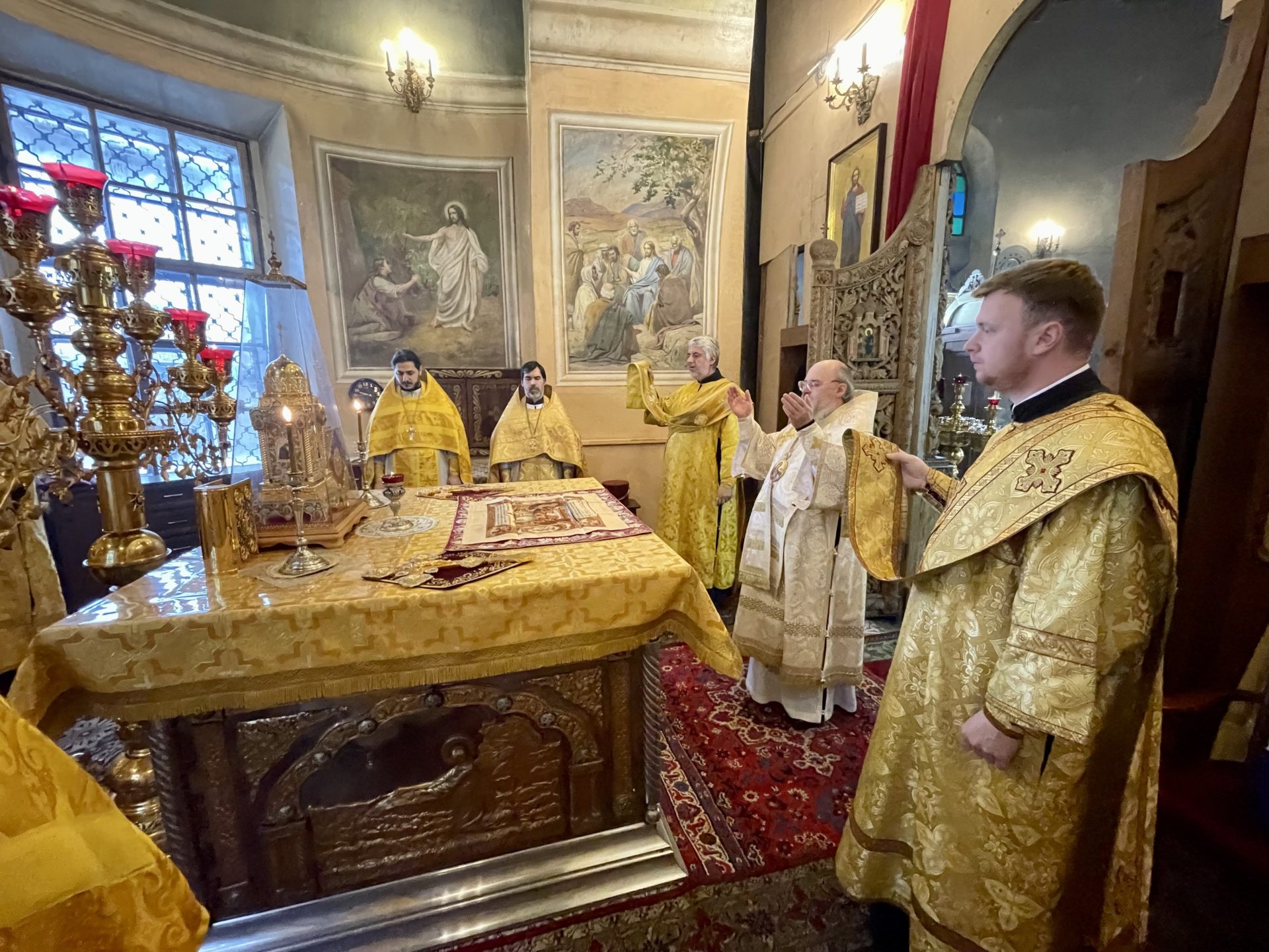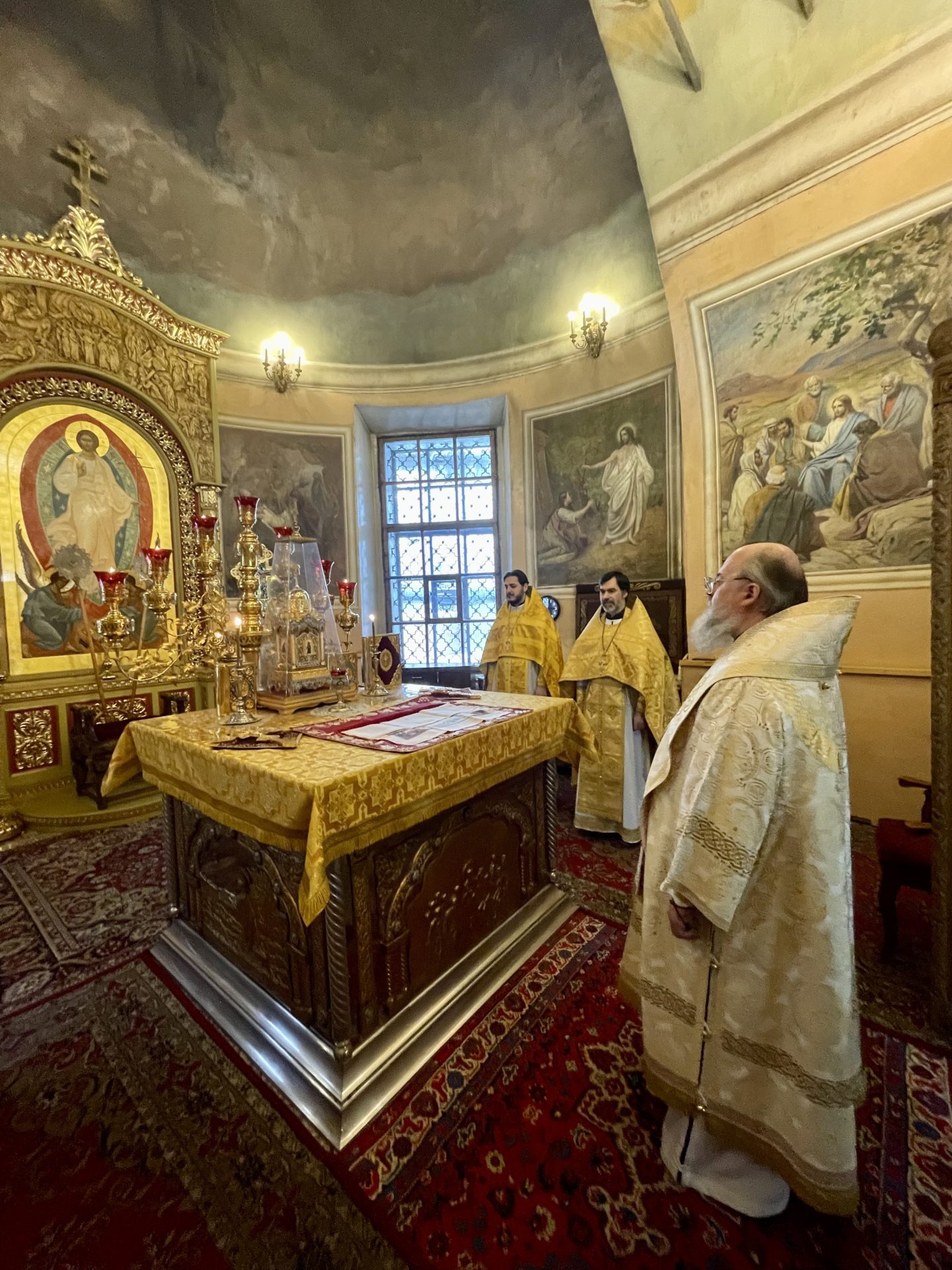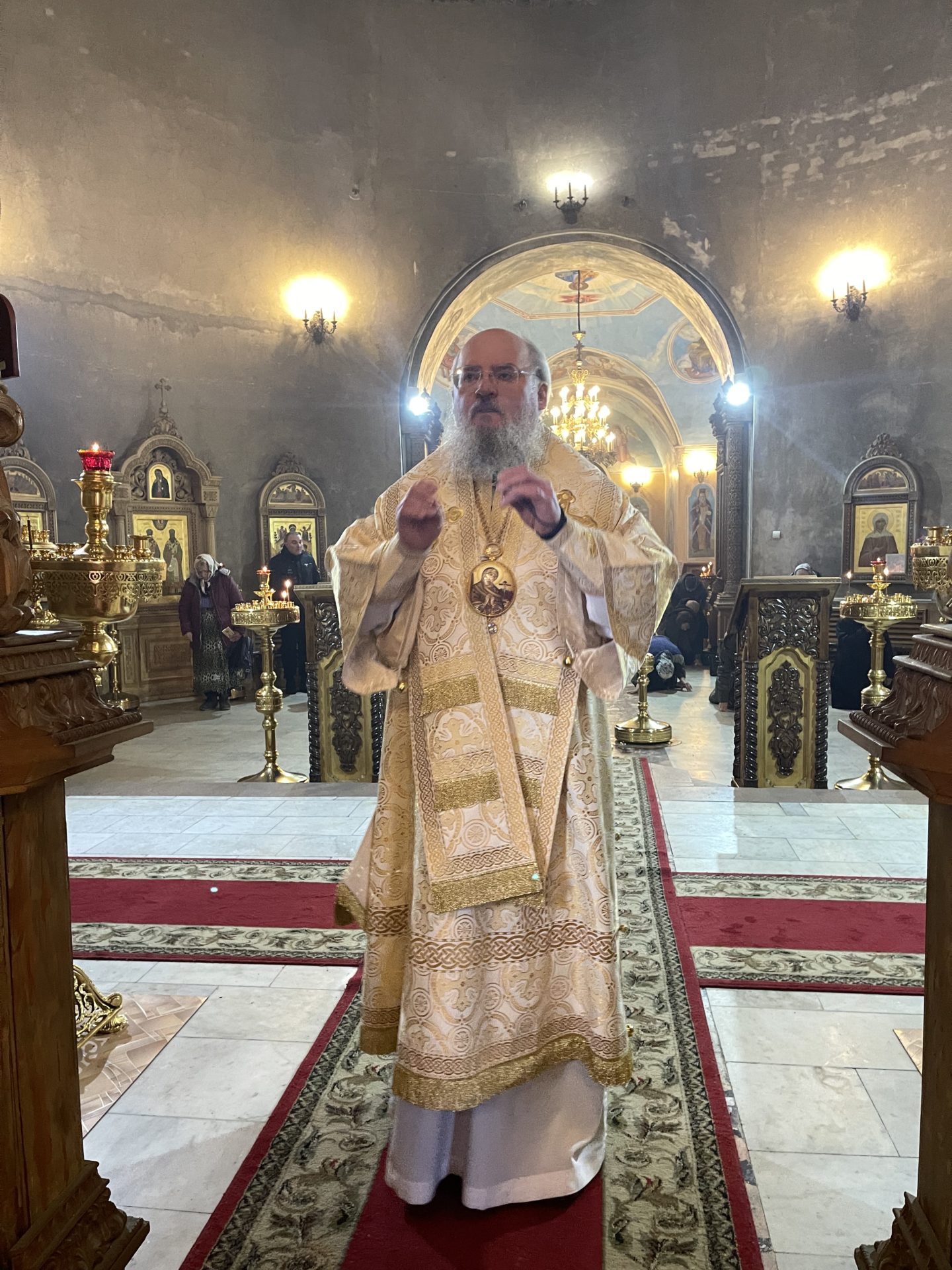 Архипастырю сослужили: настоятель прихода протоиерей Вадим Кудрявцев, протоиерей Антоний Хатунцев, иерей Максим Немыченков, иерей Николай Лукашов, диакон Олег Митин и диакон Евгений Ковригин.