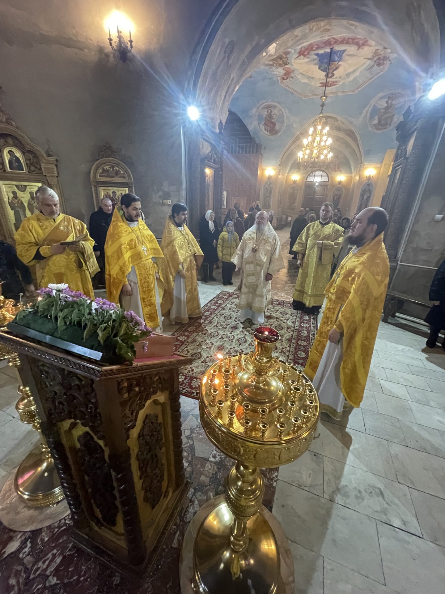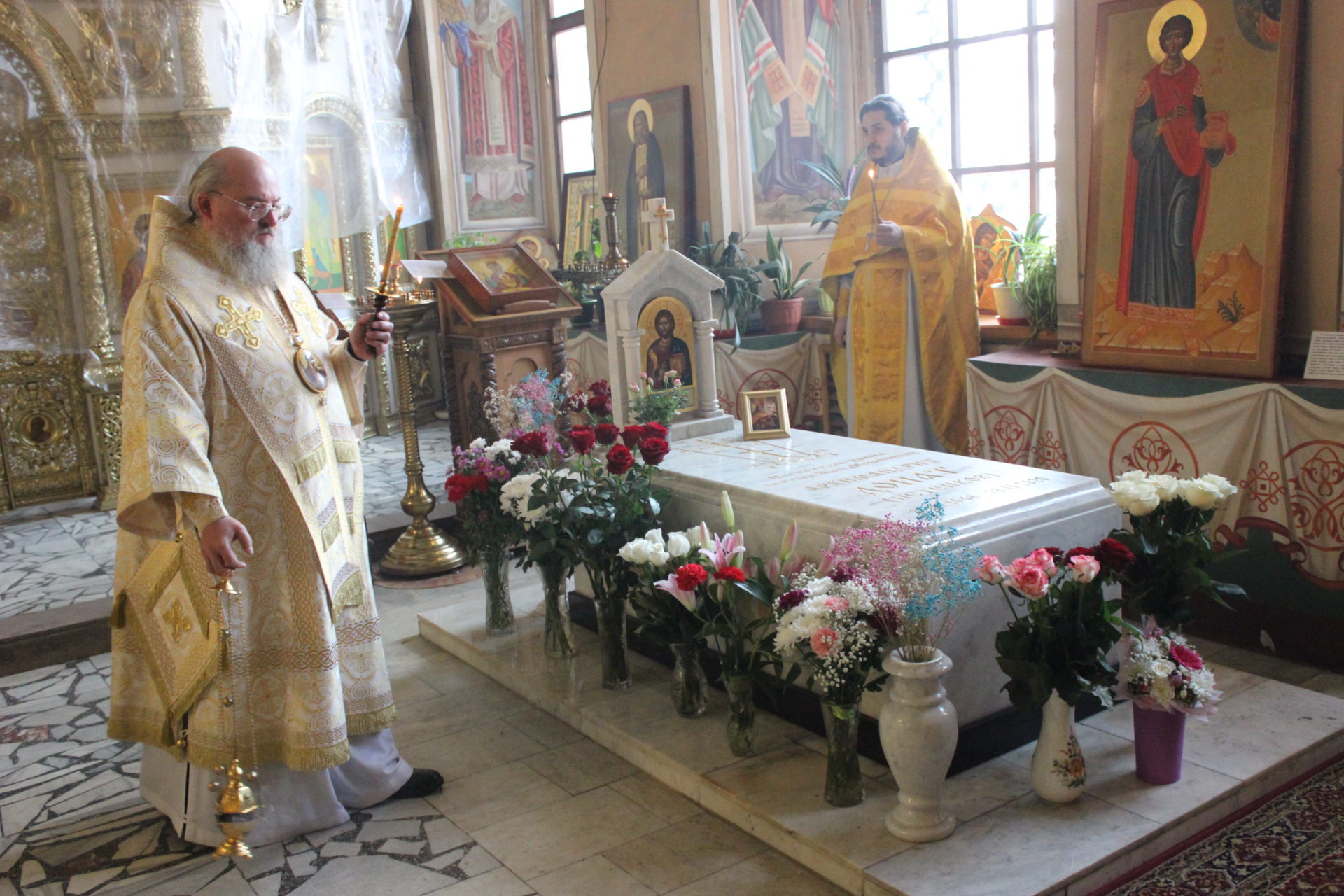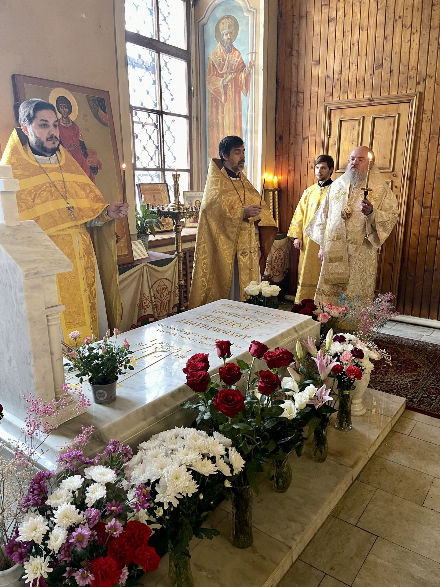 В этот день, по благословению митрополита Калужского и Боровского Климента, епископ Козельский и Людиновский Никита совершил Божественную литургию в вышеуказанном храме, где у южного придела погребен приснопоминаемый отец архимандрит.