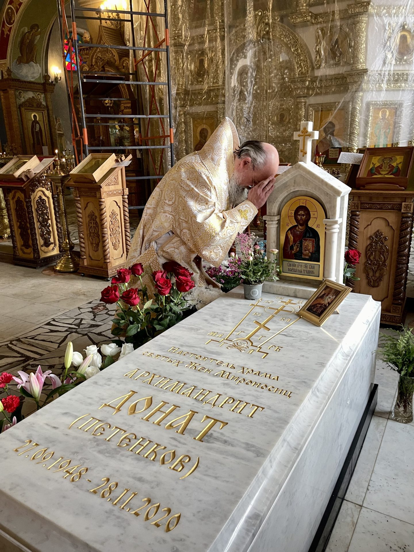 По окончании литургии священнослужители совершили панихиду у могилы отца Доната.