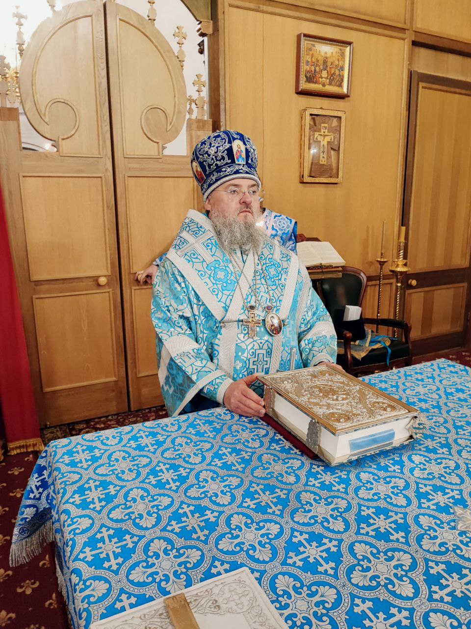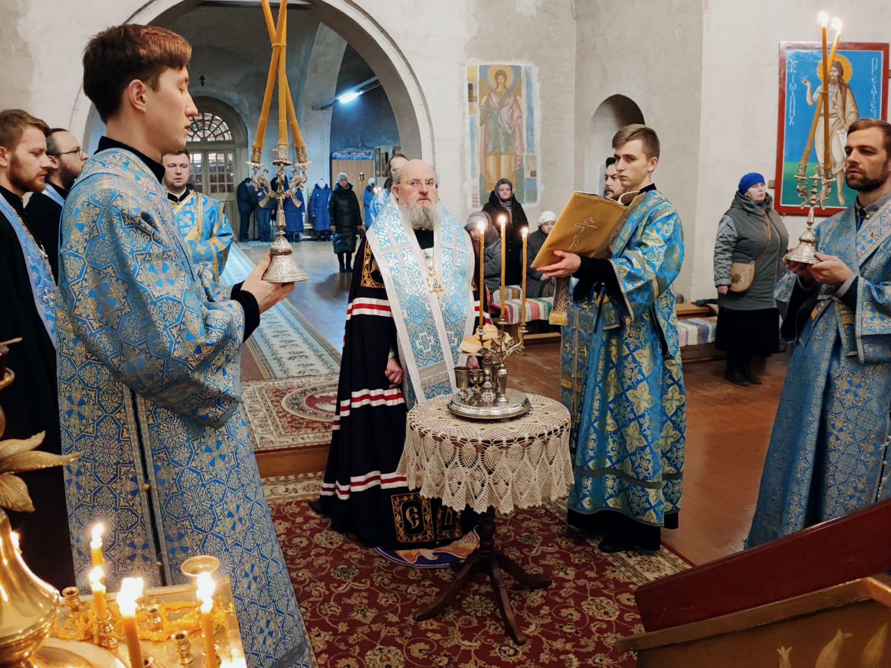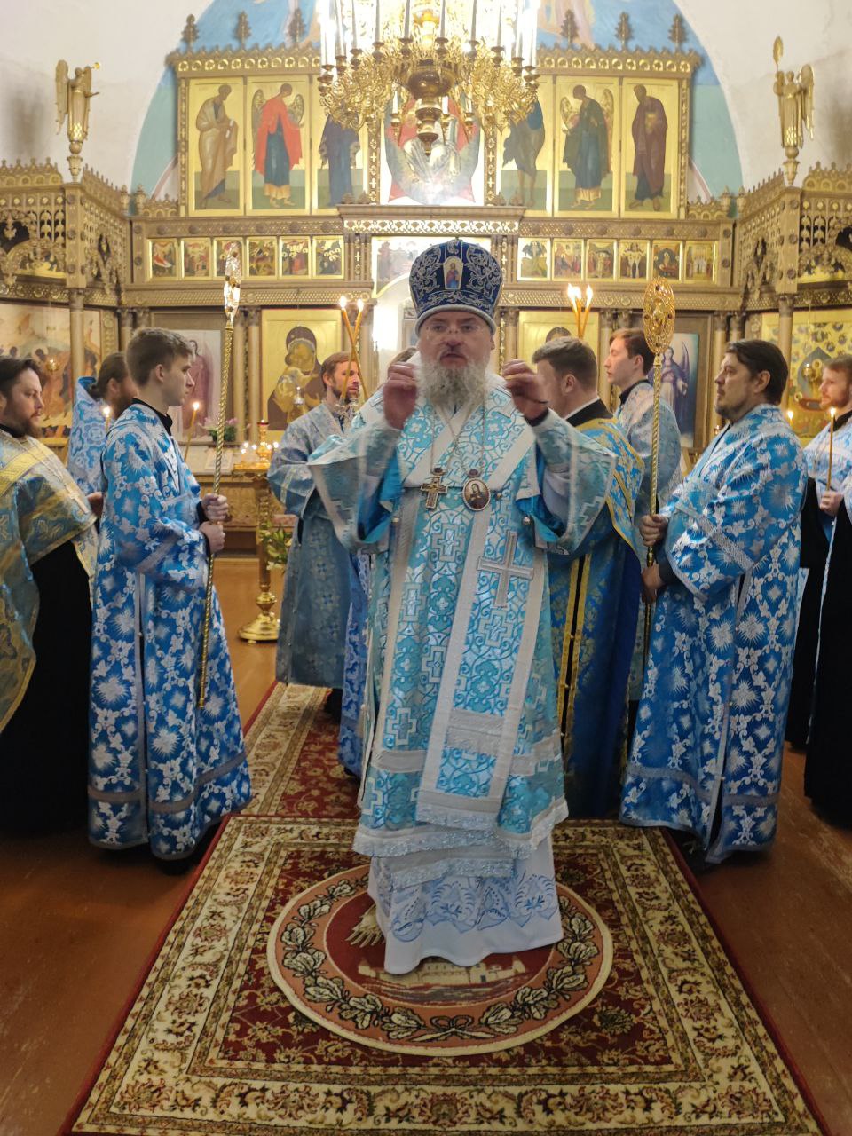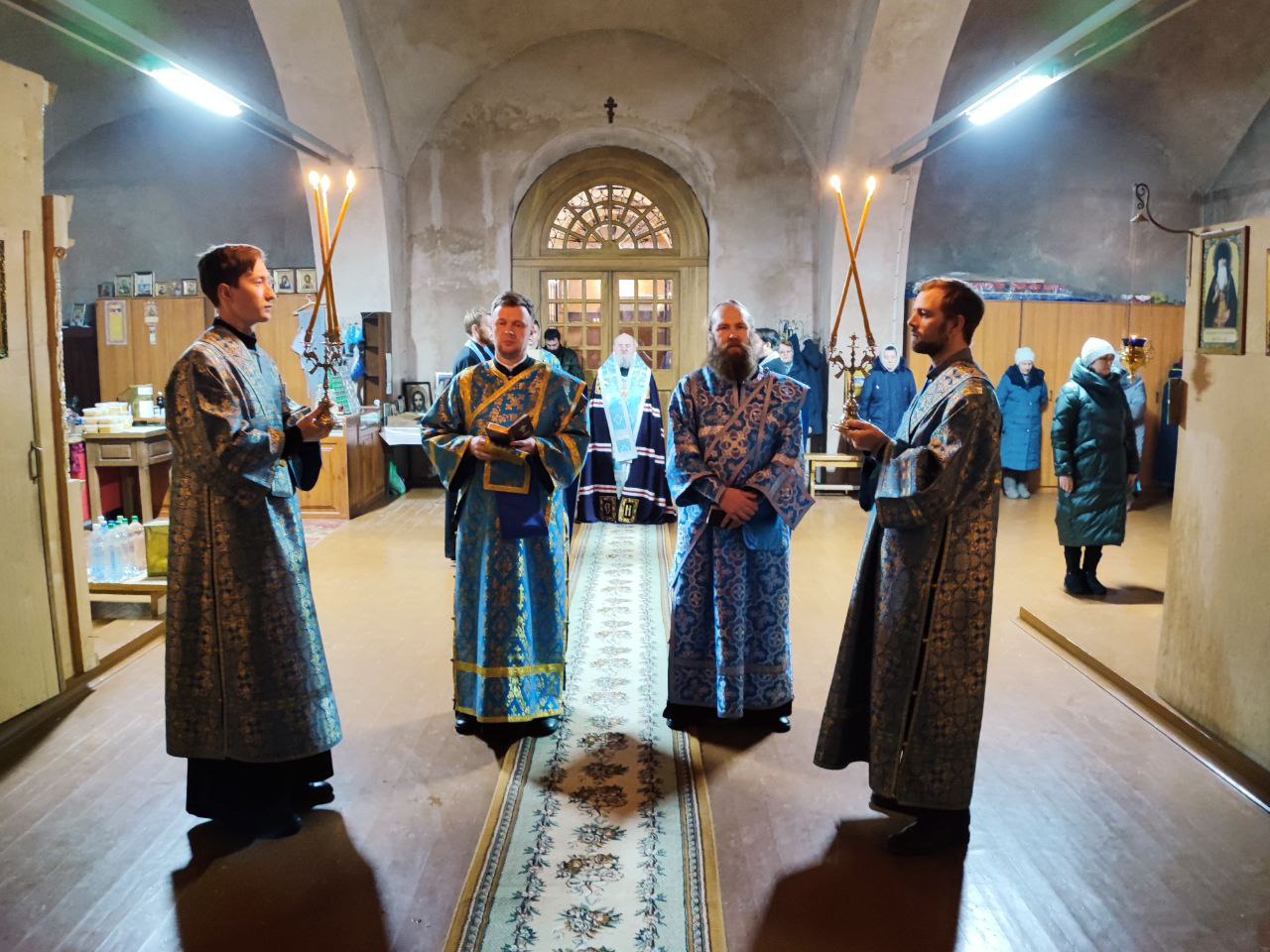 Его Преосвященству сослужили клирики собора: иеромонах Паисий (Курмаз) – настоятель храма, протоиерей Антоний Хатунцев, иерей Елисей Тимофеев, иерей Евгений Чуркин, диакон Евгений Ковригин и диакон Дмитрий Лутков.