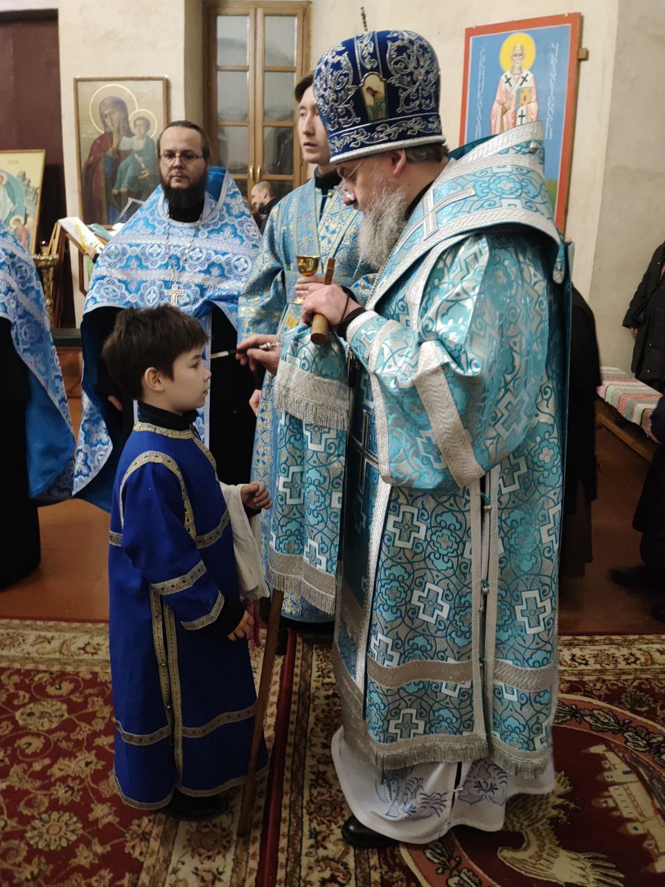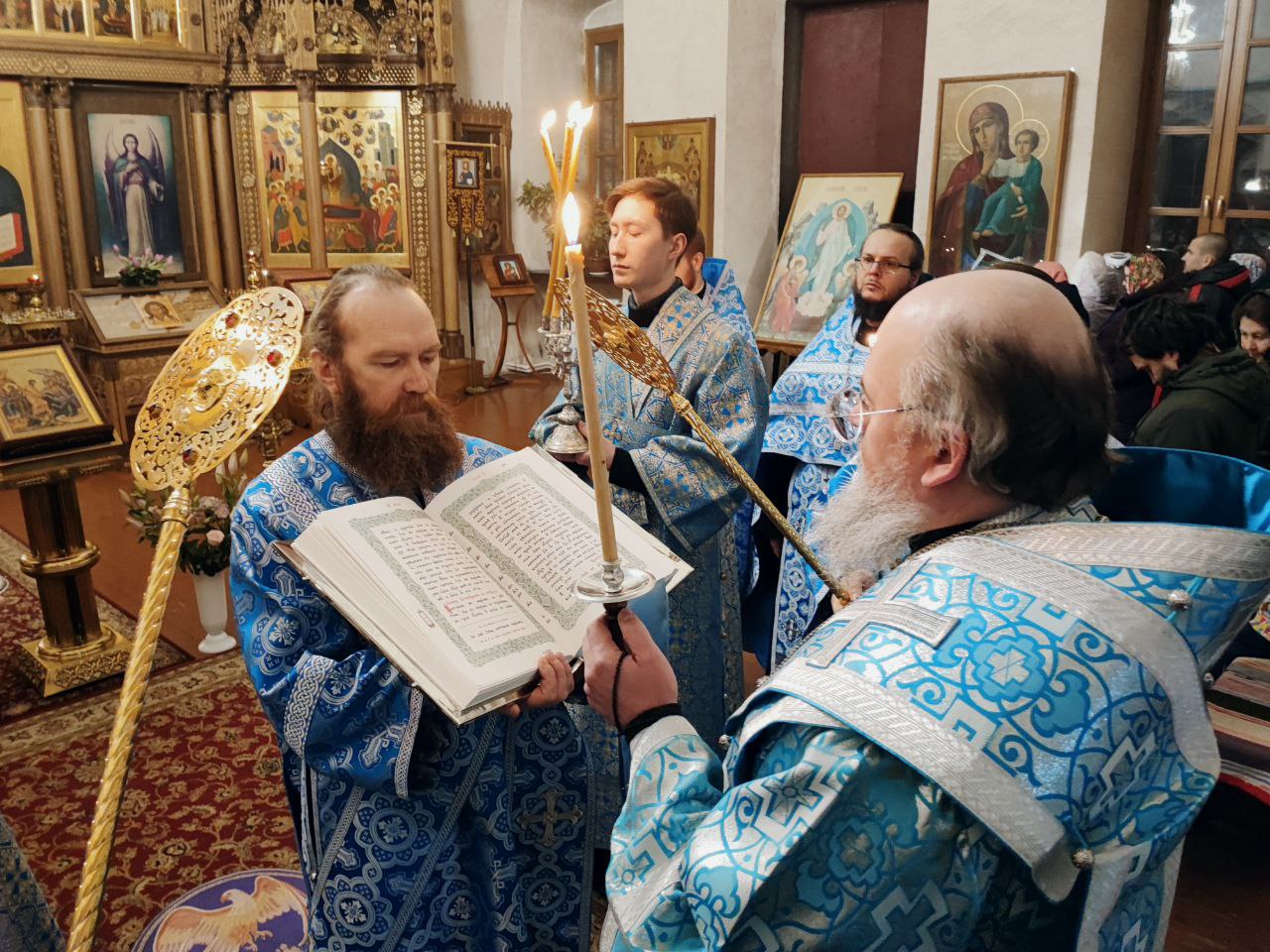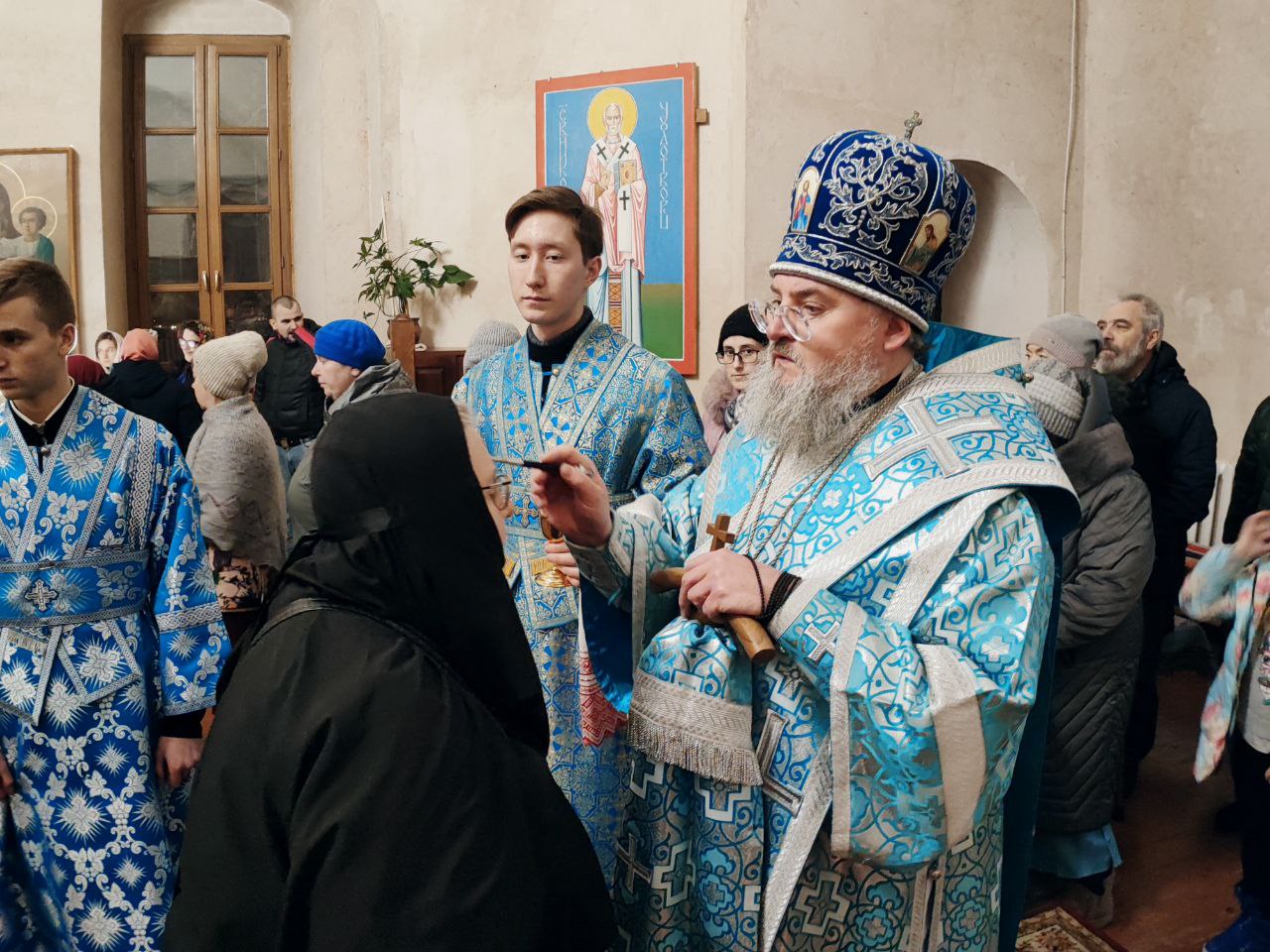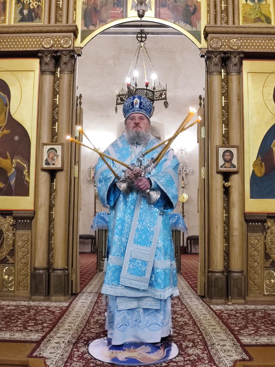 Его Преосвященству сослужили клирики собора: иеромонах Паисий (Курмаз) – настоятель храма, протоиерей Антоний Хатунцев, иерей Елисей Тимофеев, иерей Евгений Чуркин, диакон Евгений Ковригин и диакон Дмитрий Лутков.