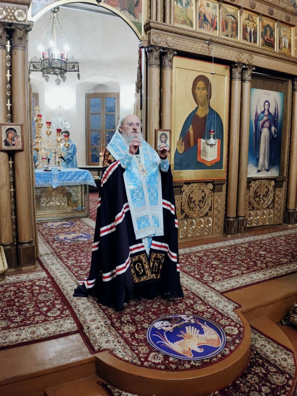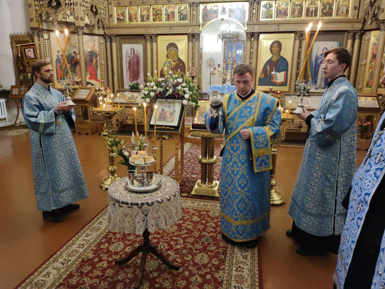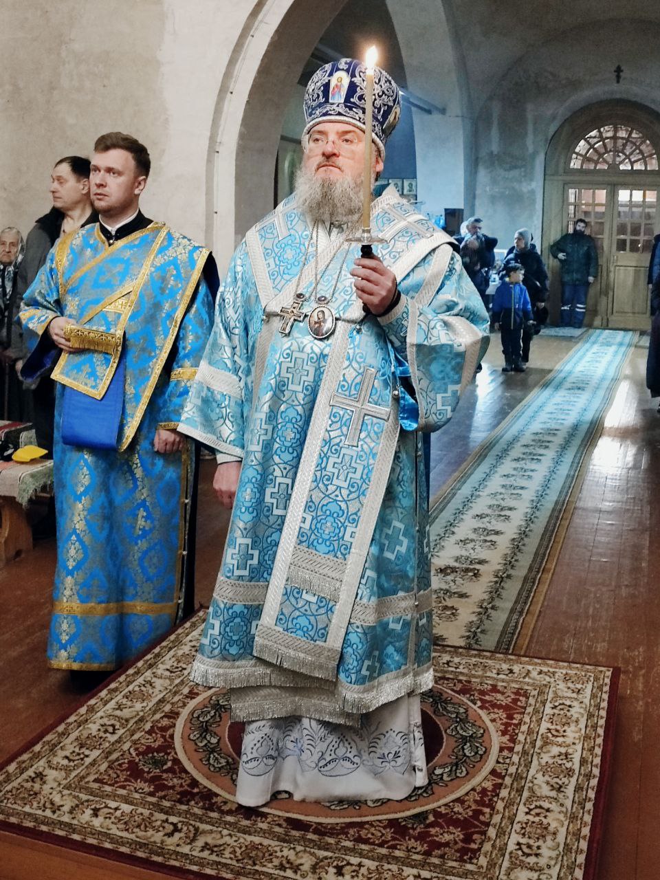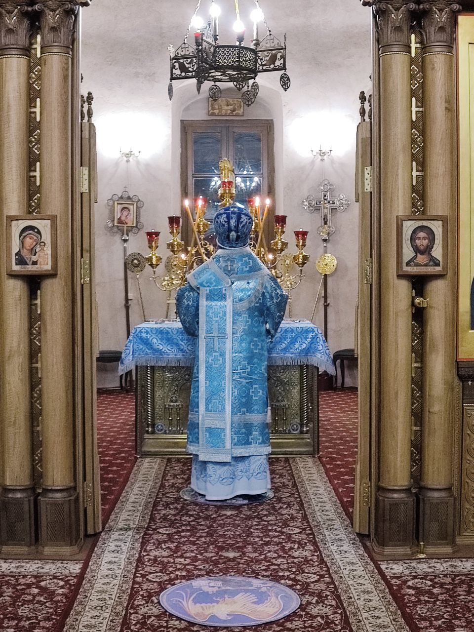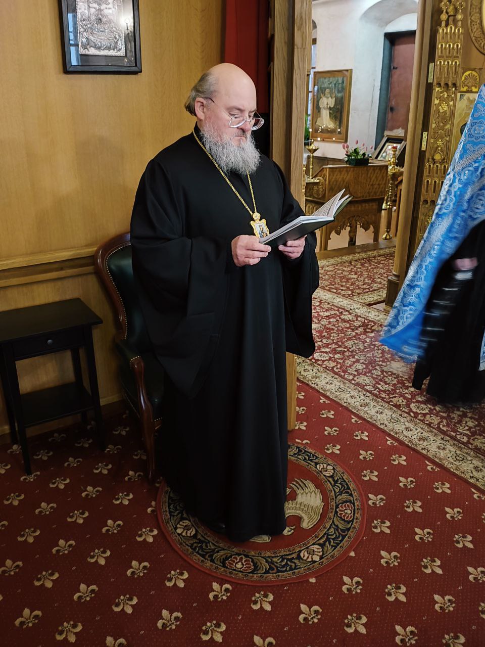 Его Преосвященству сослужили клирики собора: иеромонах Паисий (Курмаз) – настоятель храма, протоиерей Антоний Хатунцев, иерей Елисей Тимофеев, иерей Евгений Чуркин, диакон Евгений Ковригин и диакон Дмитрий Лутков.