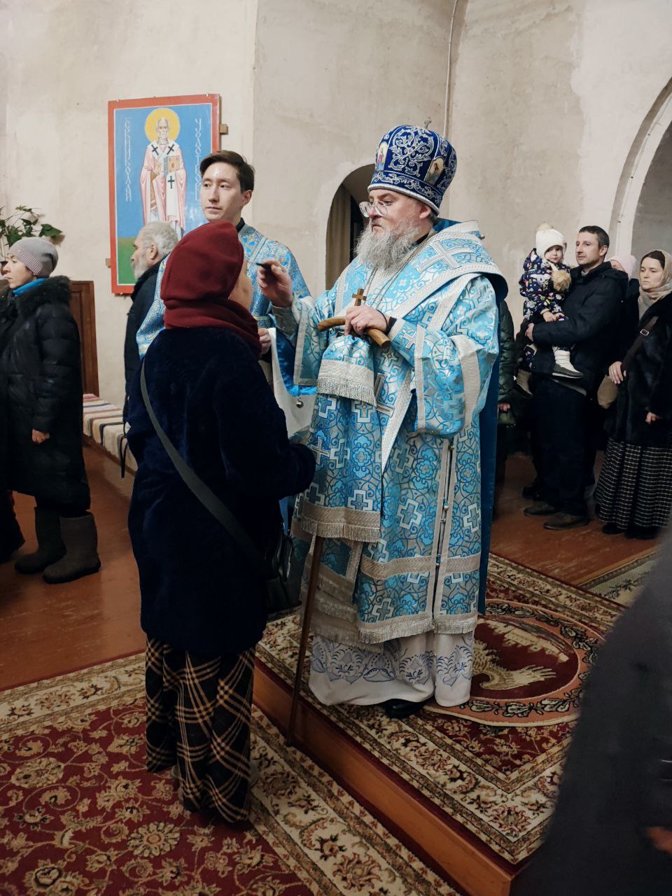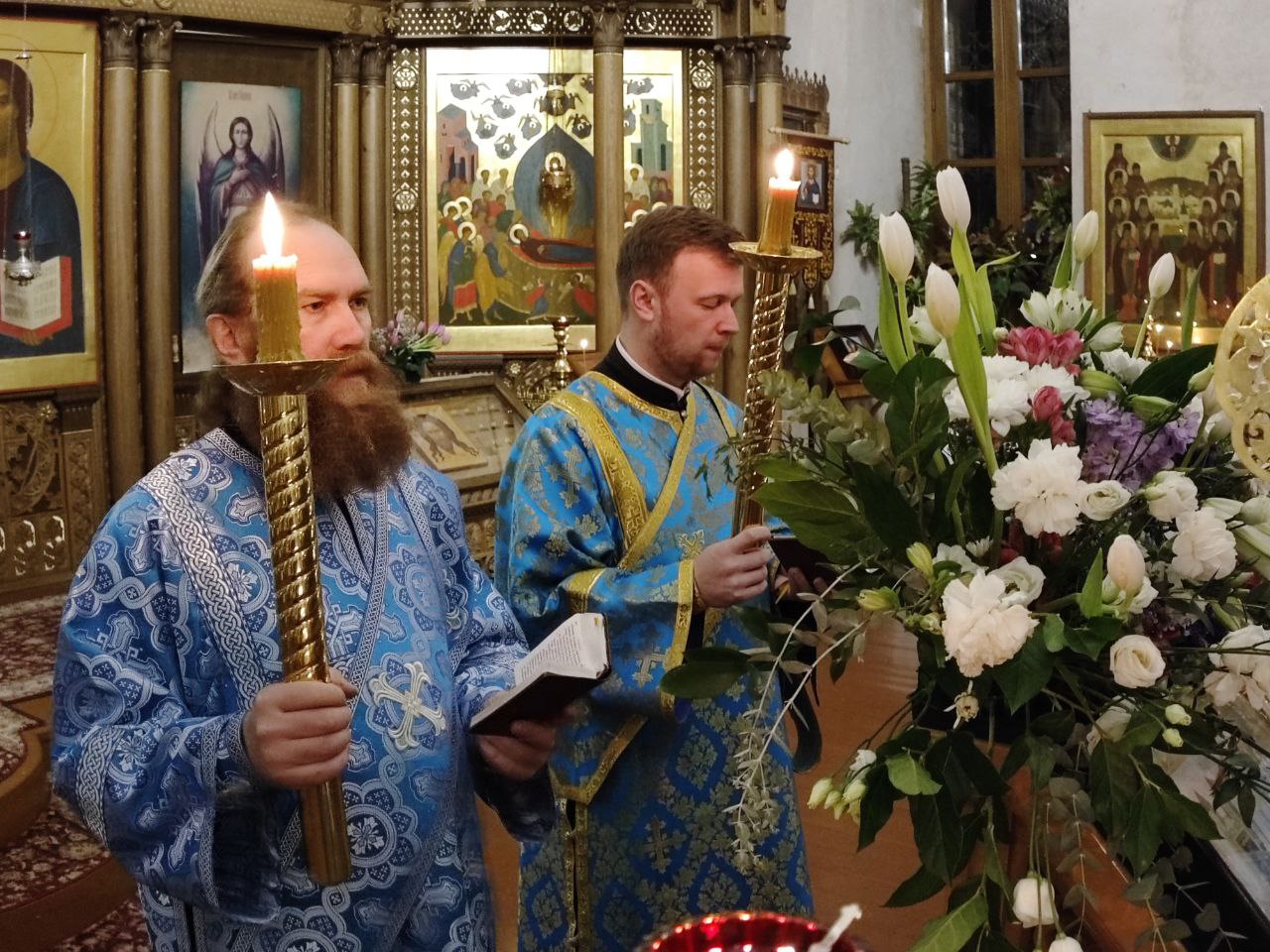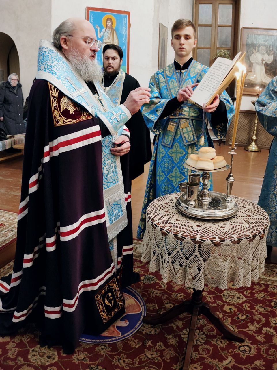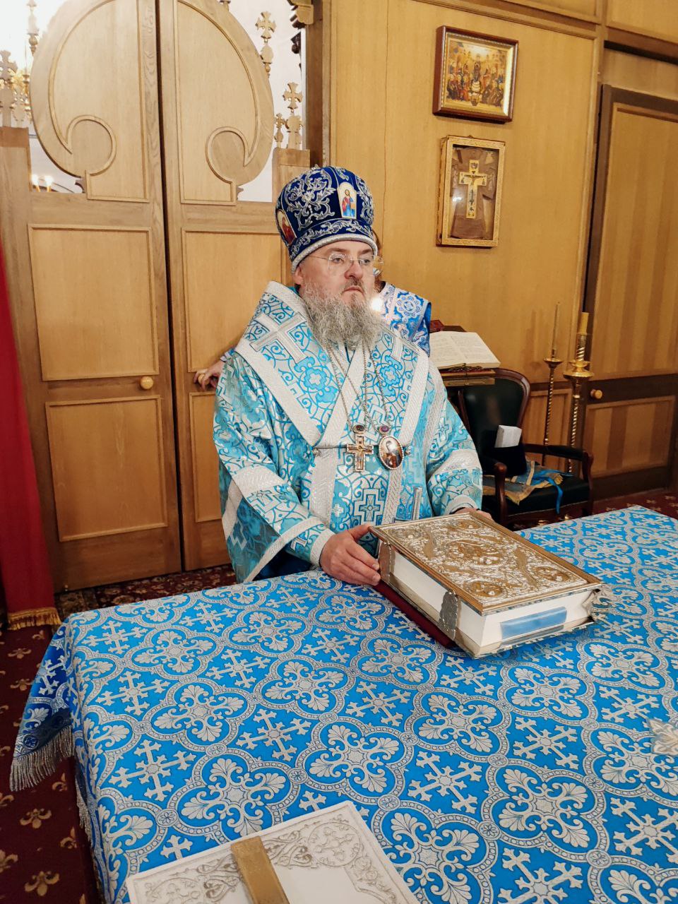 Его Преосвященству сослужили клирики собора: иеромонах Паисий (Курмаз) – настоятель храма, протоиерей Антоний Хатунцев, иерей Елисей Тимофеев, иерей Евгений Чуркин, диакон Евгений Ковригин и диакон Дмитрий Лутков.