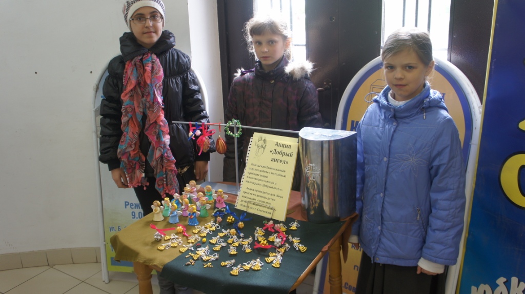 В Акции приняли участие воспитанники православного детского Центра «Возрождение» из объединений «Керамика» руководитель Мирошина Валентина Викторовна и «Бисероплетение» руководитель Булатова Ольга Александровна. Они изготовили из глины и бисера ангелочков, которые вручали прохожим людям, неравнодушным к судьбе детей-инвалидов. Приглашаем и другие районы присоединиться к нашей акции «Добрый ангел».