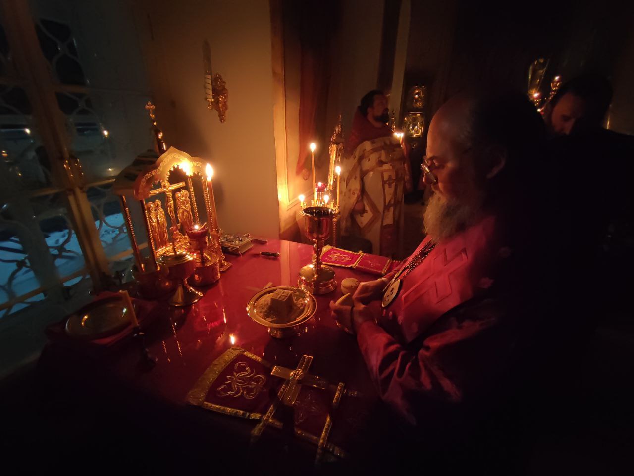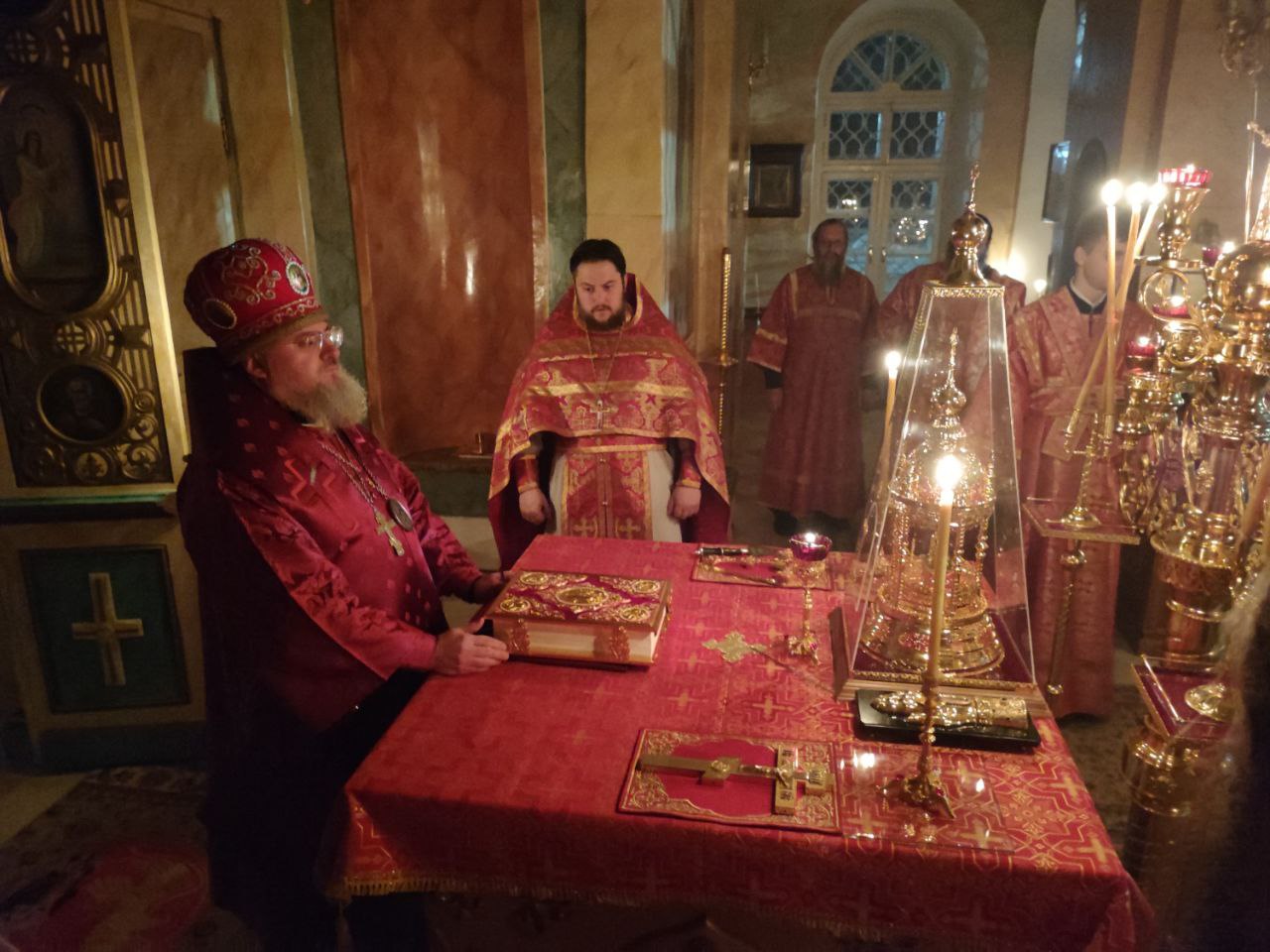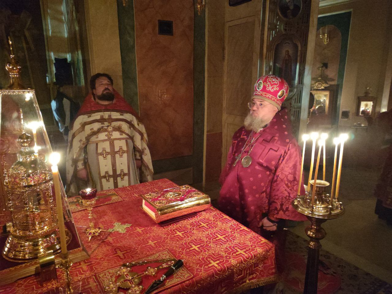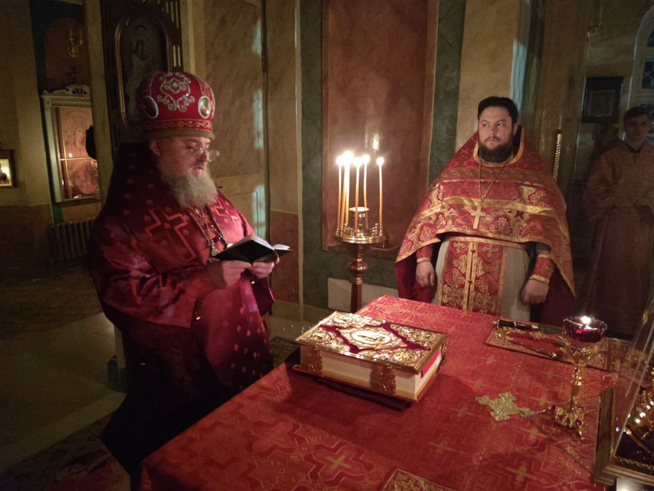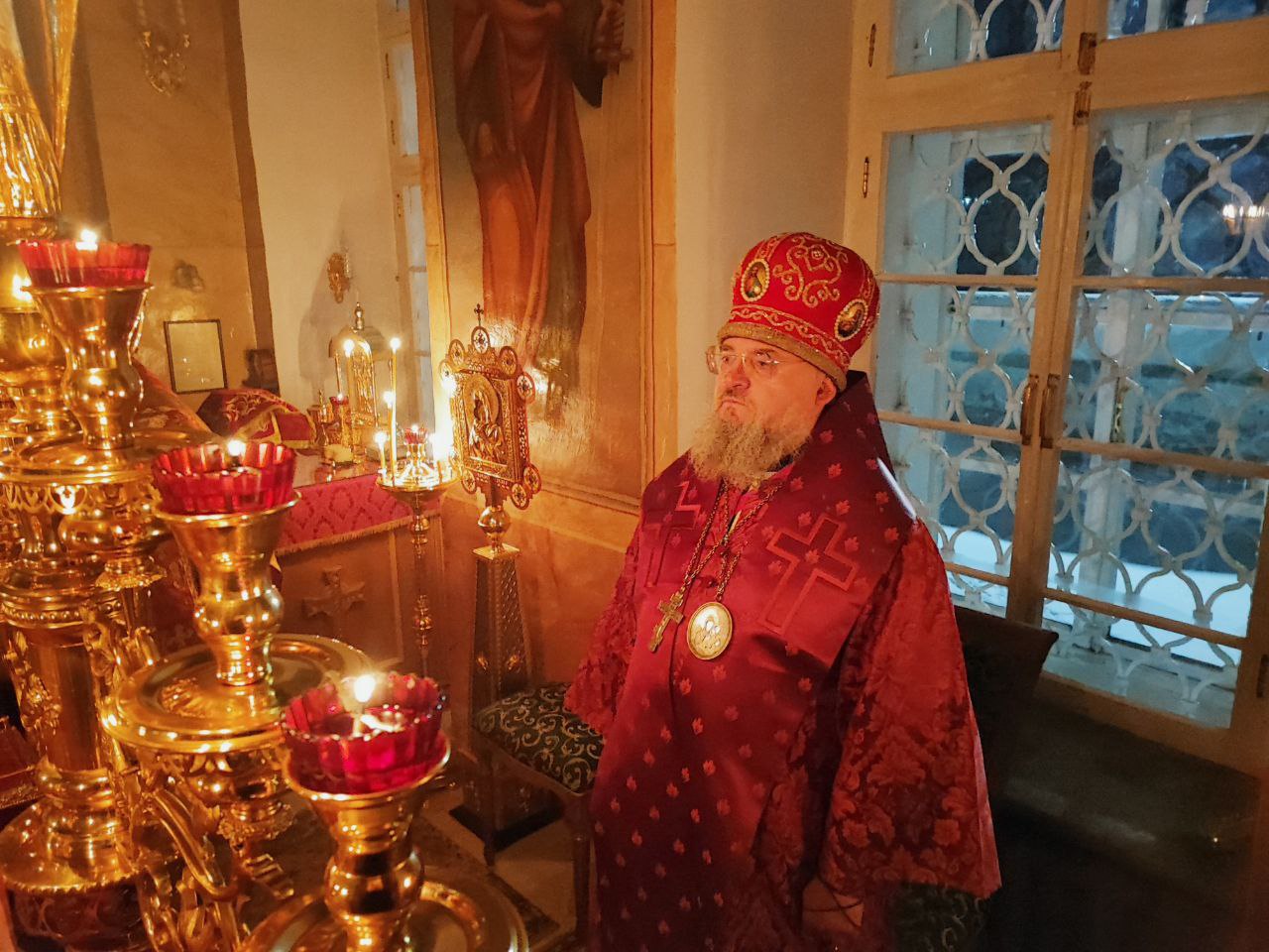 5 декабря. Епископ Козельский и Людиновский Никита совершил ночную Божественную литургию в храме Преображения Господня села Нижние Прыски Козельского района.