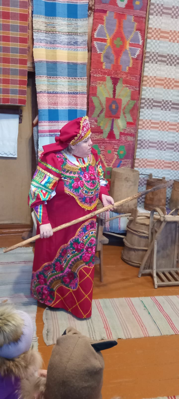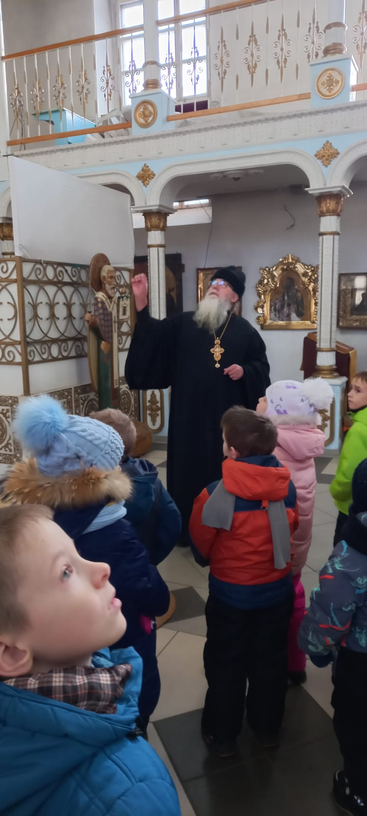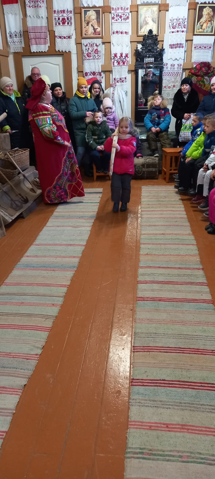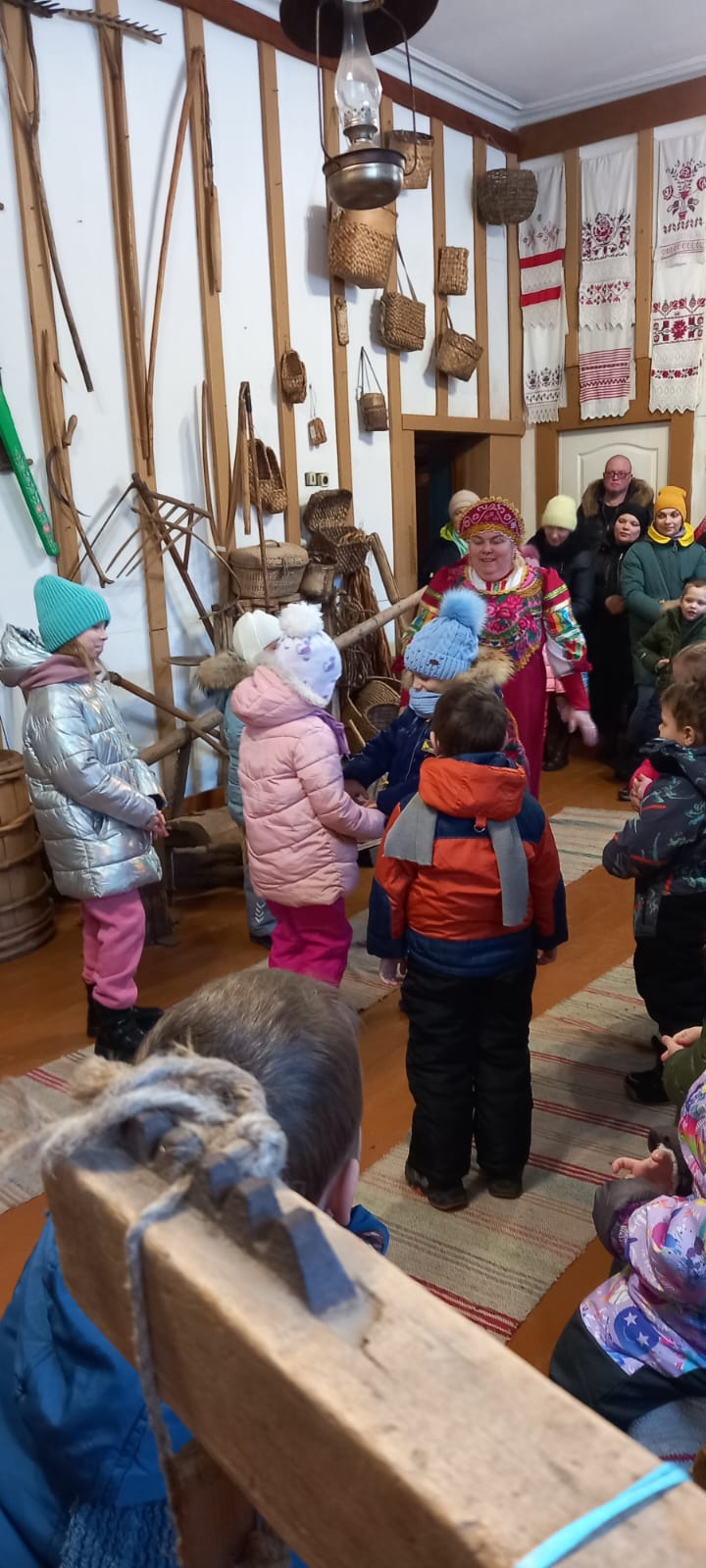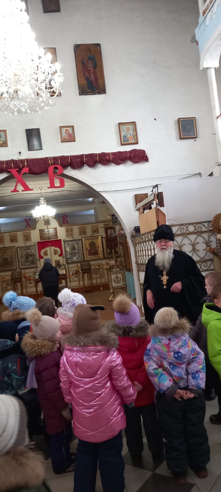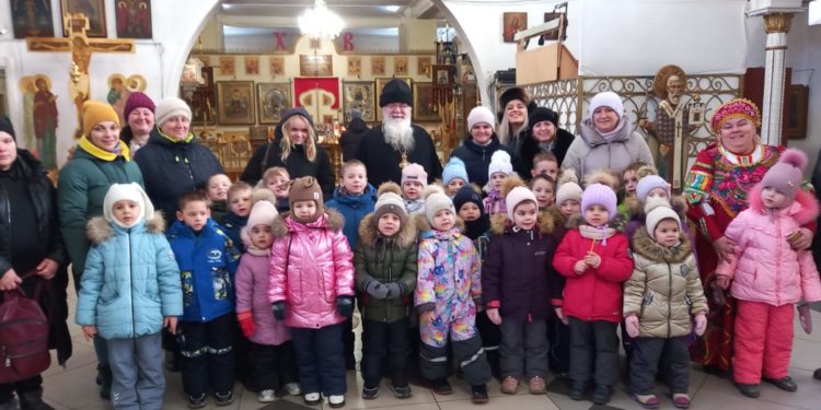 7 декабря 2022года дети из детского сада №5 «Солнышко» вместе со своими воспитателями посетили Казанский собор города Людиново и церковно – краеведческий музей при храме. Экскурсию проводила сотрудник музея Девина Елена Ивановна. По просьбе воспитателей для деток была подготовлена тематическая экскурсия «Согрей свое сердечко у русской печки». Много интересного и познавательного узнали не только дети, но и воспитатели. Елена Ивановна в русском – народном костюме рассказала про русский быт, про печку, какие приспособления использовались для печи. В игровой форме, с большим интересом дети носили воду на коромысле, месили тесто, подносили к печке дрова, ухватом отправляли в печь чугунок – в полной мере ощутили себя в русской – народной избе. После того, как был совместными усилиями приготовлен каравай, дети поводили хоровод с песней. Много интересного из русского быта узнали в этот день экскурсанты. Затем гости побывали в храме. И здесь настоятель собора протоиерей Алексий Жиганов рассказал в доступной форме про убранство храма, про паникадило, познакомил со святынями собора. Дети в этот раз были очень любознательными, несмотря на маленький возраст, задавали интересные вопросы по убранству храма и про иконы. После благословения батюшки, с хорошим настроением, с багажом знаний о русских старинных традициях и дети, и взрослые говорили спасибо, пожелав еще раз побывать в соборе и в замечательном музее храма.