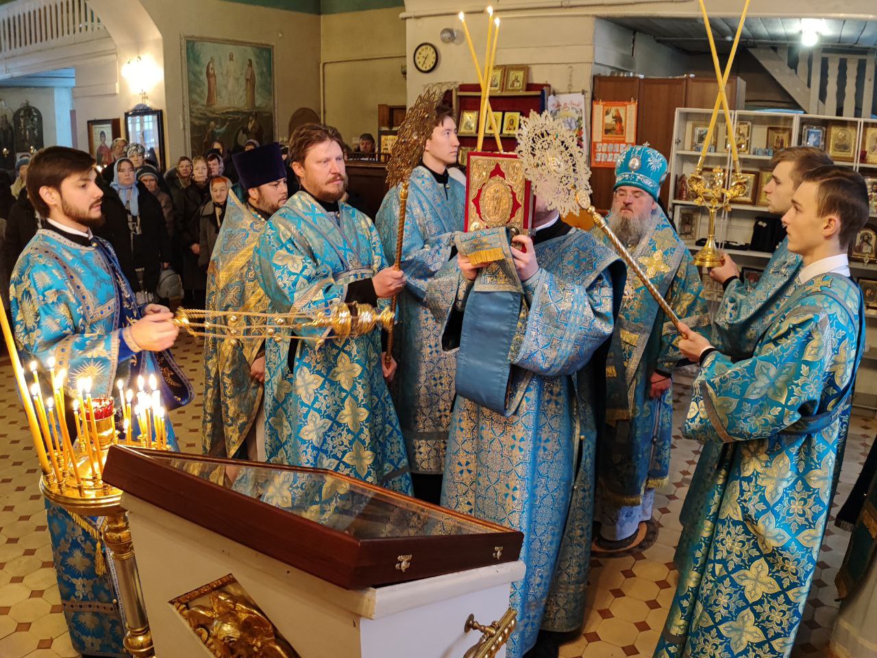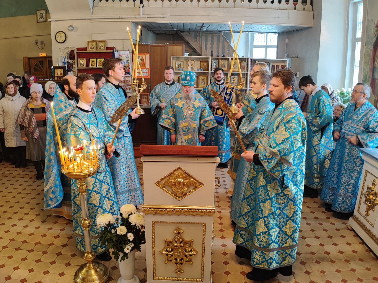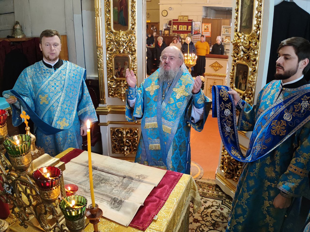 10 декабря. Иконы Божией Матери «Знамение». Епископ Козельский и Людиновский Никита совершил Божественную литургию в северном приделе Благовещенского храма города Козельска, освященном в честь празднуемой иконы Пресвятой Богородицы. Архипастырю сослужили: протоиерей Антоний Хатунцев, иерей Сергий Барыкин – настоятель храма, иерей Андрей Тавмосян, диакон Евгений Ковригин и диакон Евгений Васильев. По отпусте литургии священнослужители совершили славление Божией Матери пред Ее образом «Знамение», а затем владыка обратился к богомольцам с проповедью.