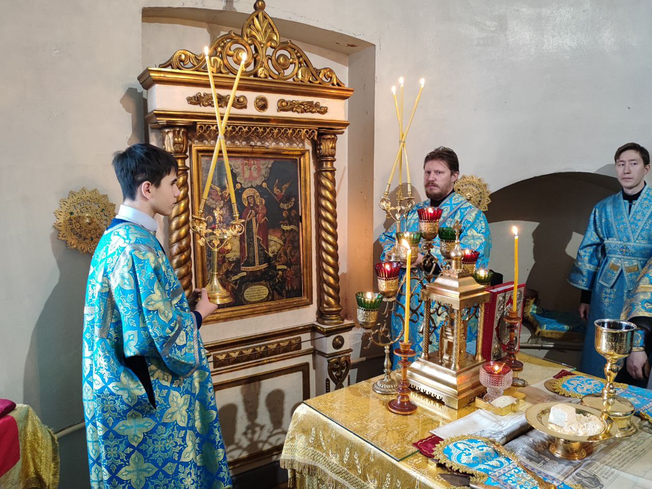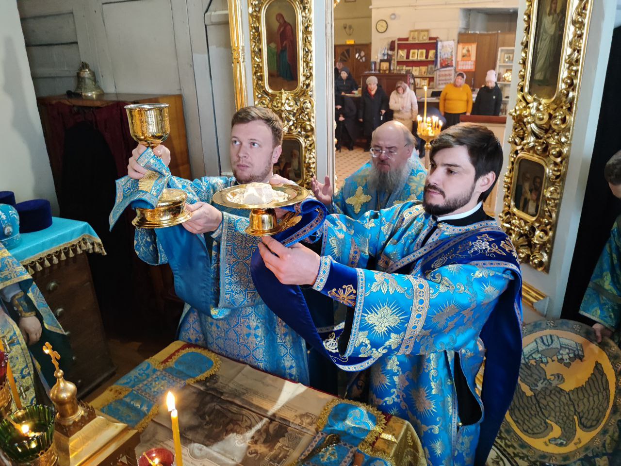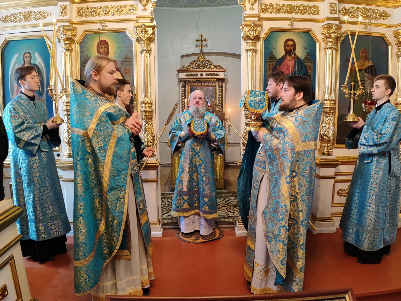 10 декабря. Иконы Божией Матери «Знамение». Епископ Козельский и Людиновский Никита совершил Божественную литургию в северном приделе Благовещенского храма города Козельска, освященном в честь празднуемой иконы Пресвятой Богородицы. Архипастырю сослужили: протоиерей Антоний Хатунцев, иерей Сергий Барыкин – настоятель храма, иерей Андрей Тавмосян, диакон Евгений Ковригин и диакон Евгений Васильев. По отпусте литургии священнослужители совершили славление Божией Матери пред Ее образом «Знамение», а затем владыка обратился к богомольцам с проповедью.