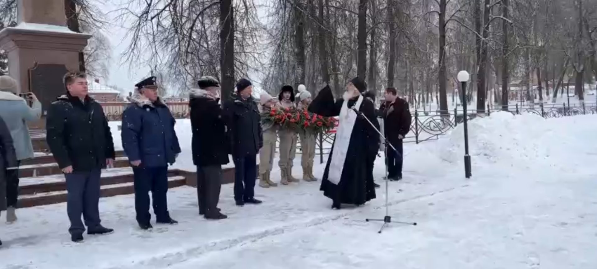 После приветственных слов, отец Алексей прочитал молитву на освящение и окропил монумент святой водой. Закончилось мероприятие возложением венков и цветов к мемориалу.