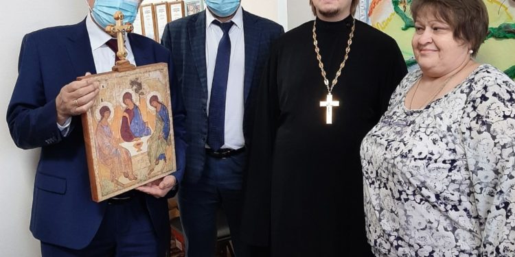Заместитель Председателя Законодательного собрания Калужской области передал икону Святой Троицы в Новослободский дом-интернат для престарелых и инвалидов