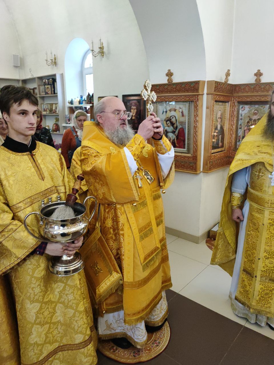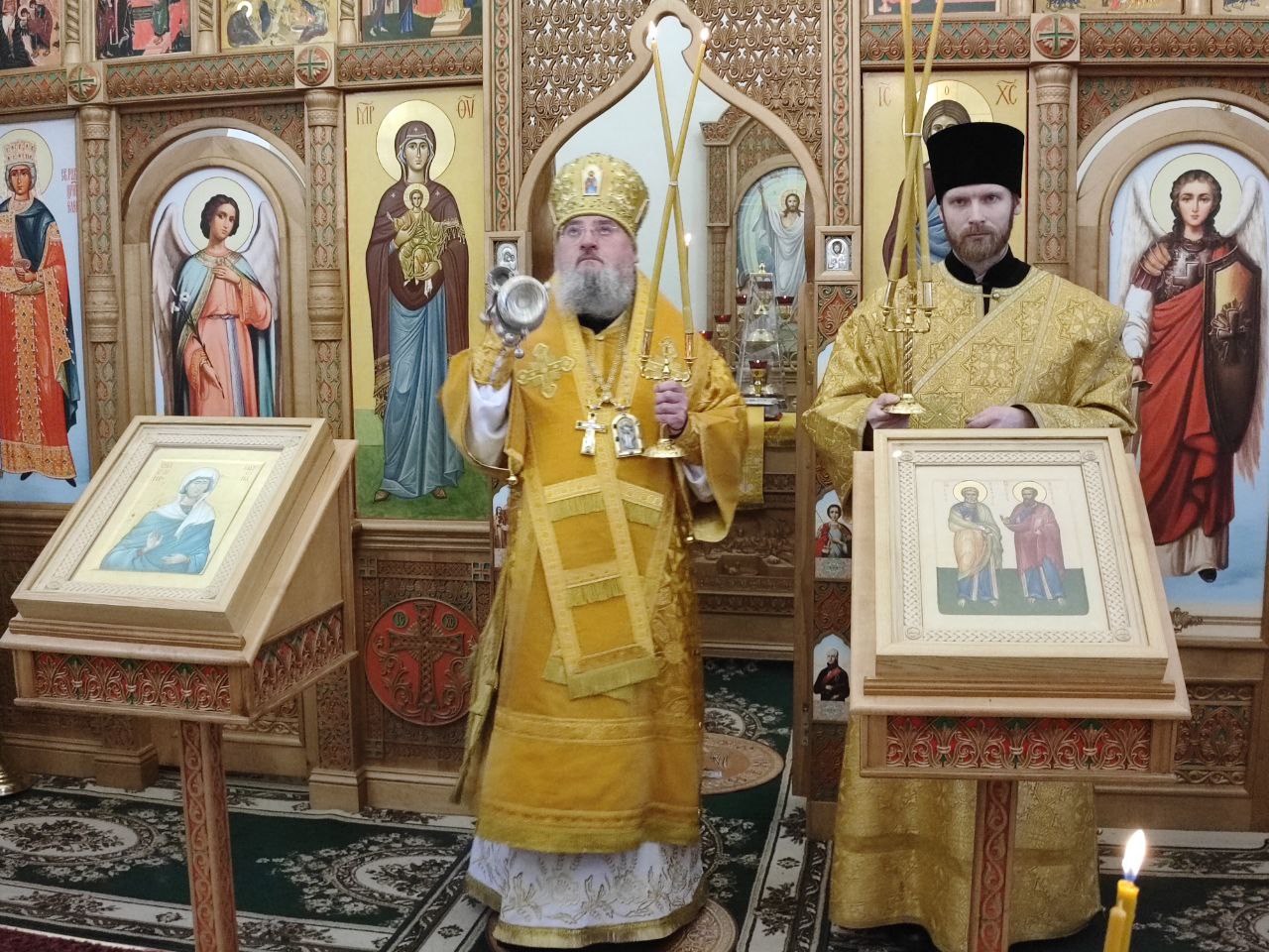 Архипастырю сослужили: протоиерей Антоний Хатунцев, иерей Алексий Скрипкин – настоятель прихода и  иеродиакон Лука (Старостин).