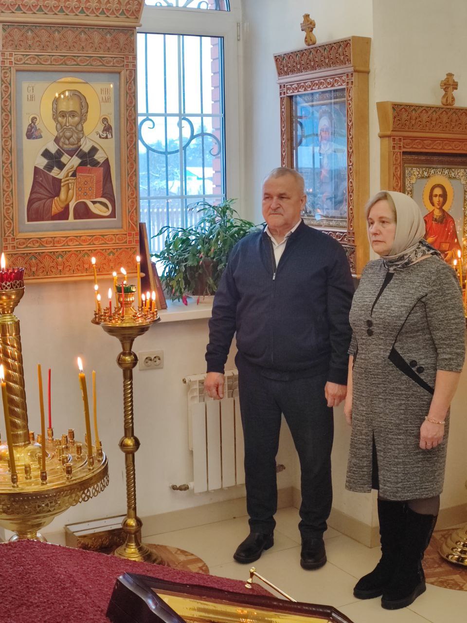За богослужением молились ктитор храма Николай Николаевич Кленов с супругой Еленой Васильевной.