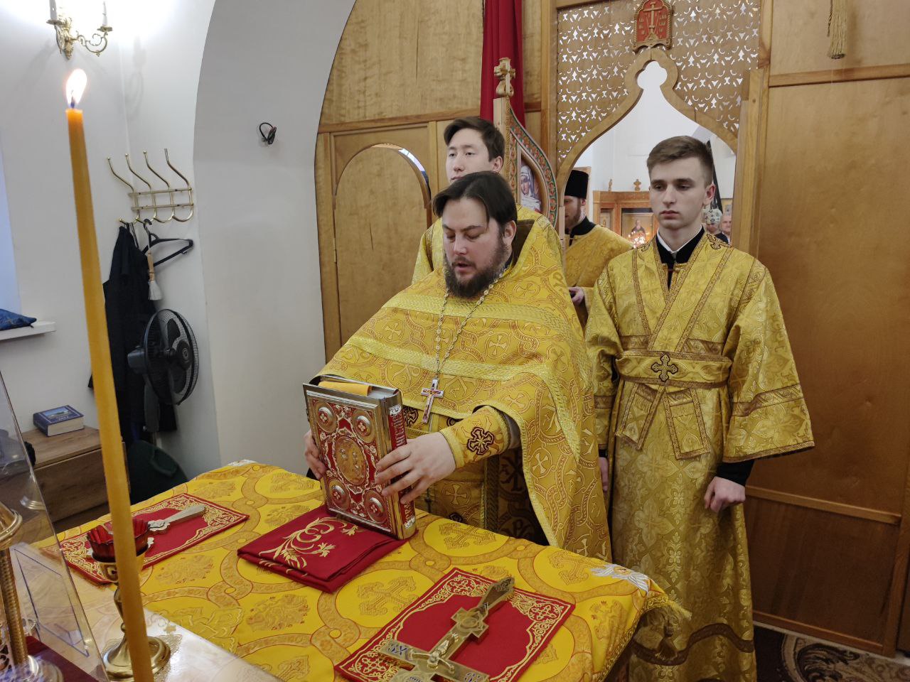 За литургией были вознесены особые прошения и молитва о Святой Руси. По благословению Святейшего Патриарха Московского и всея Руси Кирилла эта сугубая молитва совершается во всех храмах Русской Православной Церкви за каждым богослужением.