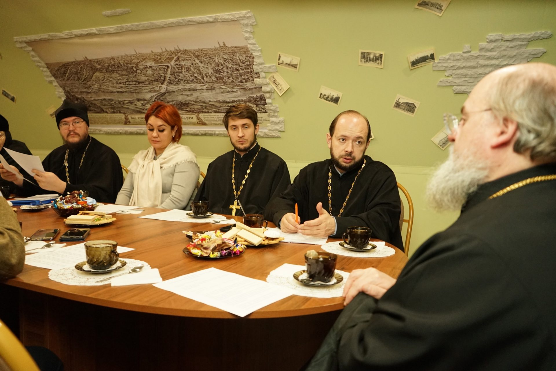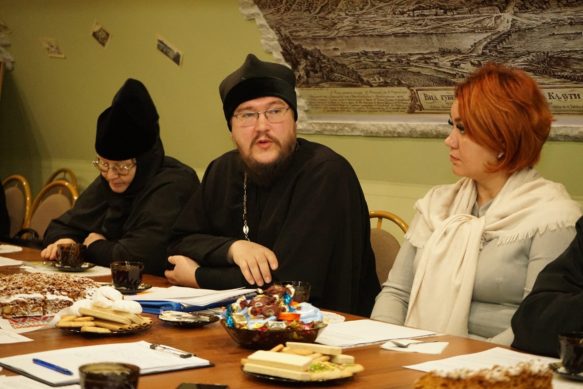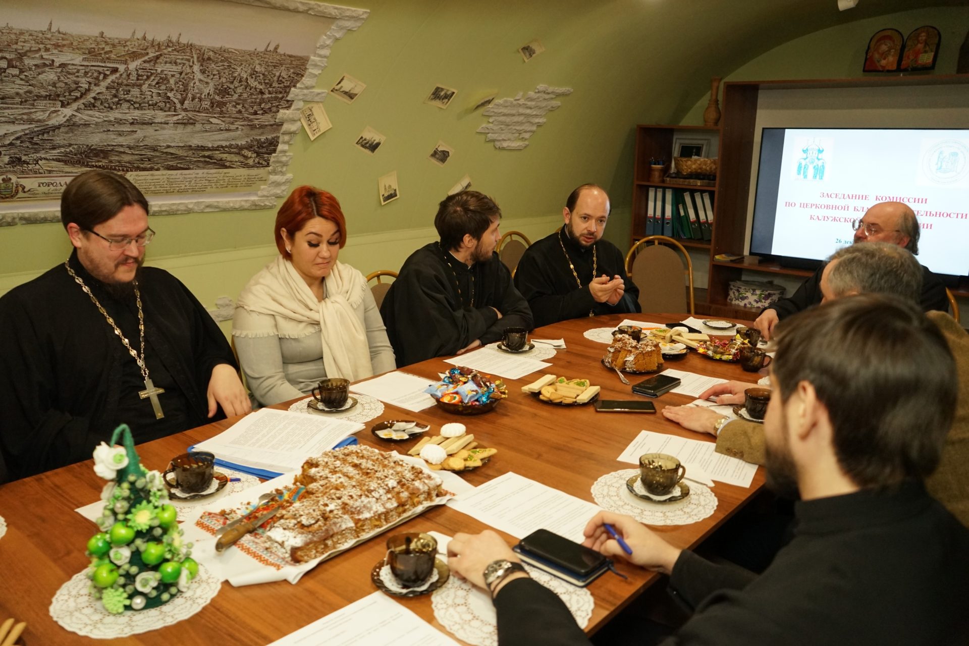 В заседании приняли участие протоиерей Алексей Пелевин — секретарь Комиссии, члены Комиссии, игумения Анастасия (Мордмиллович) — настоятельница Спасо-Преображенского Воротынского монастыря, иерей Сергий Азаркин — руководитель Отдела по церковной благотворительности и социальному служению Песоченской епархии, иерей Дионисий Куваев — руководитель Отдела по церковной благотворительности и социальному служению Козельской епархии, иерей Владислав Береговой — ответственный за направление по защите семьи, материнства и детства при Отделе по церковной благотворительности и социальному служению Песоченской епархии, диакон Евгений Васильев — заместитель председателя Отдела по церковной благотворительности и социальному служению Козельской епархии, иерей Вячеслав Федоров — духовник Калужской региональной общественной организации «Общества православных врачей», Олег Юрьевич Попов – председатель Калужской региональной общественной организации «Общества православных врачей».
