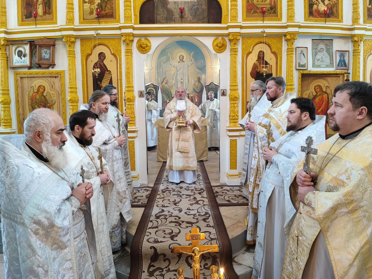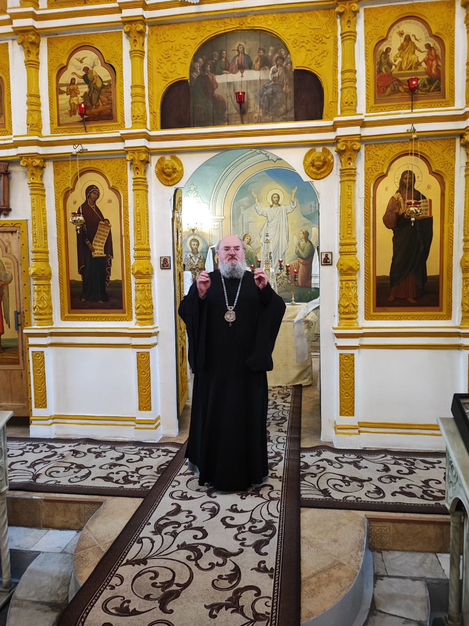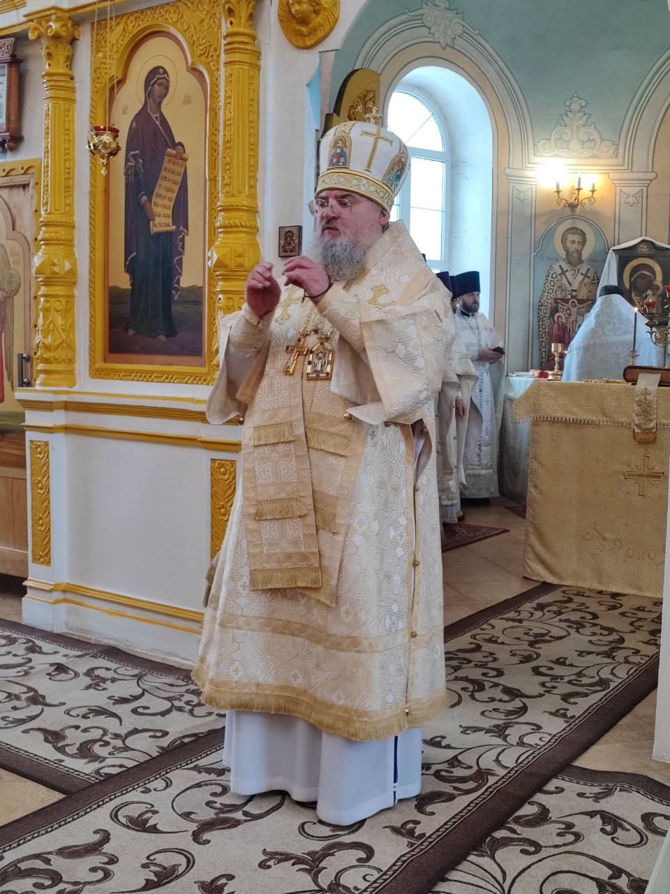 По отпусте литургии священнослужители совершили панихиду по приснопоминаемом архимандрите Серафиме (Олиферчуке), многолетнем настоятеле и строителе храма, скончавшегося в этот день десять назад, а затем  владыка обратился к многочисленным богомольцам – прихожанам и духовным чадам почившего, приехавшим в этот день на могилу старца, с проповедью.