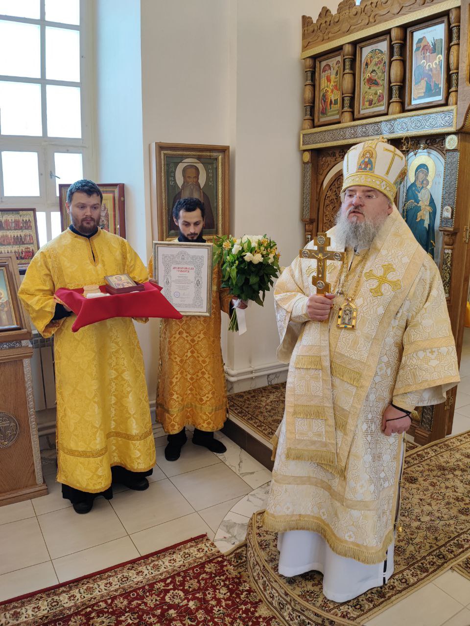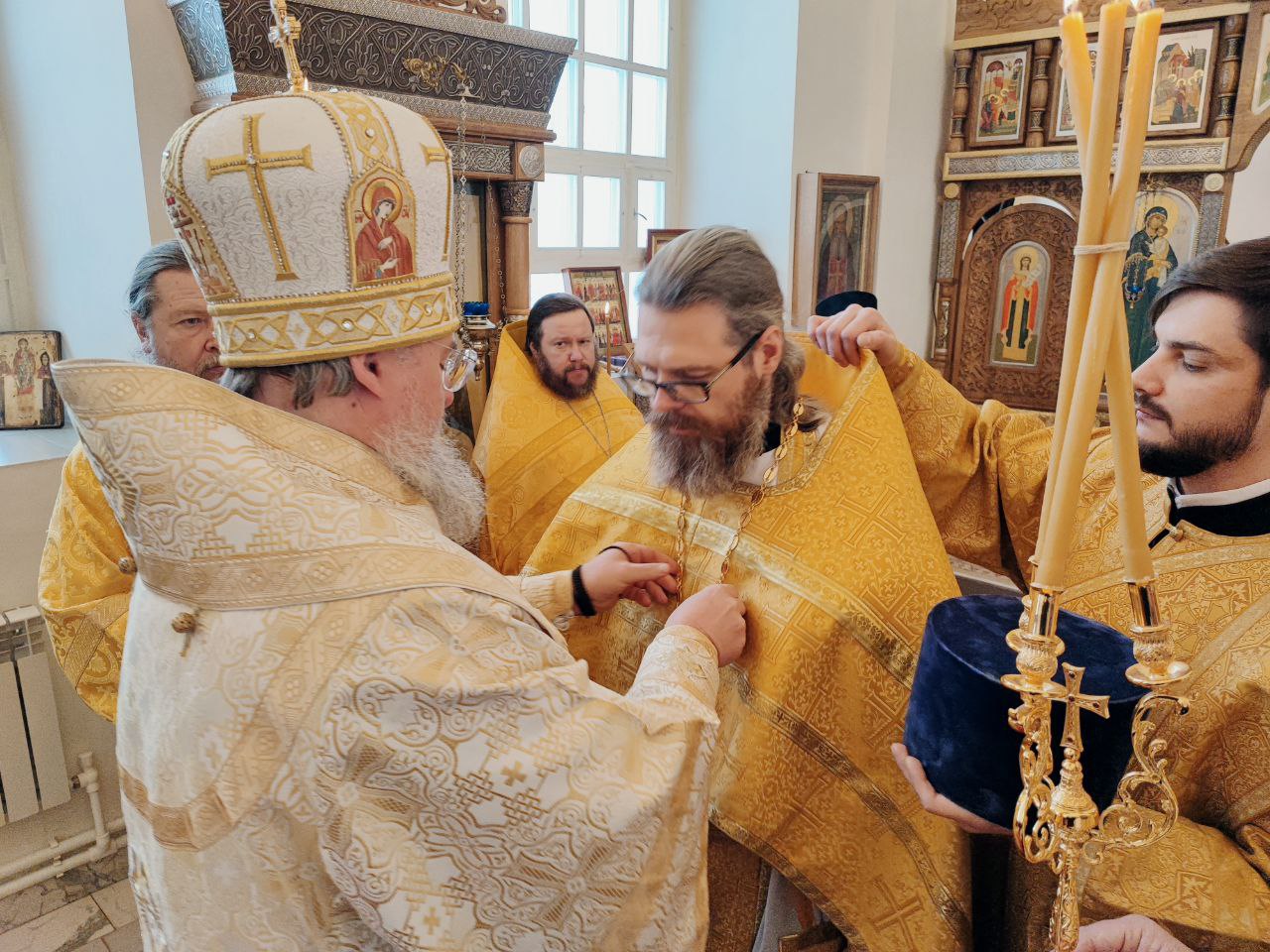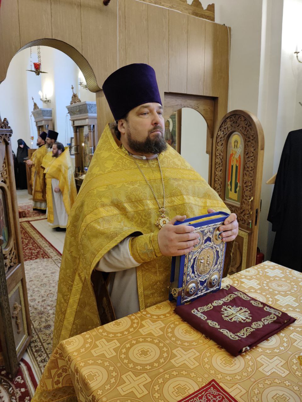 На Малом входе, во внимание к усердным трудам во славу Святой Церкви, клирик монастыря иерей Алексий Боков был удостоен права ношения наперстного креста золотого цвета.