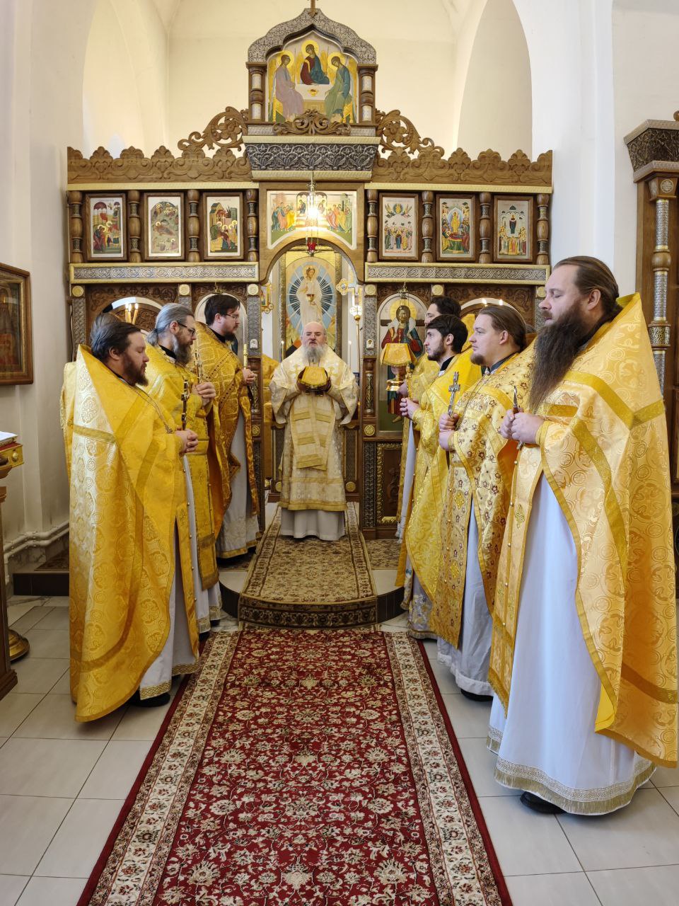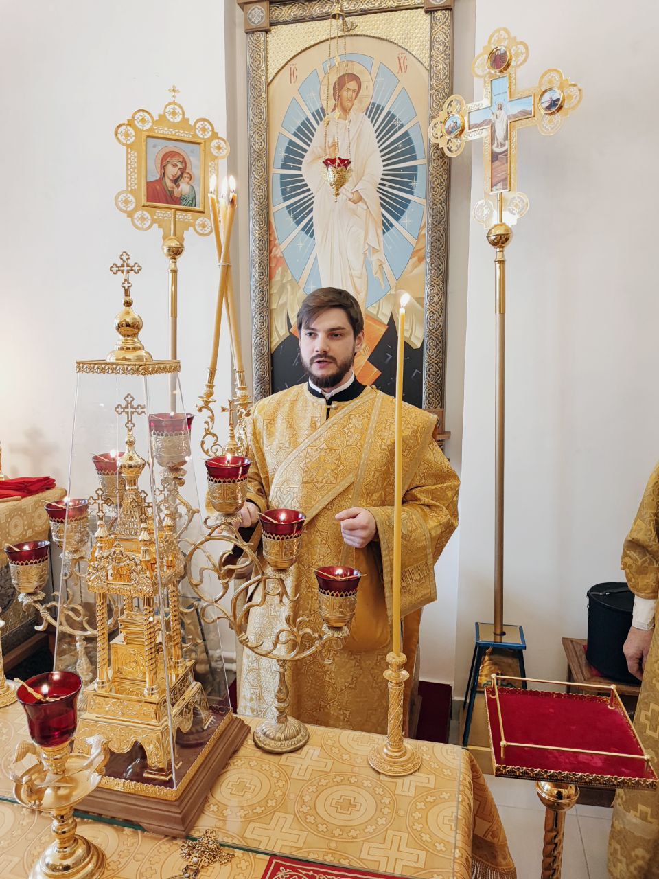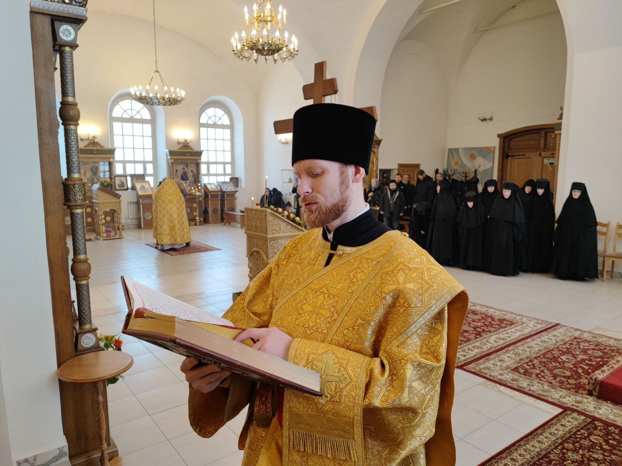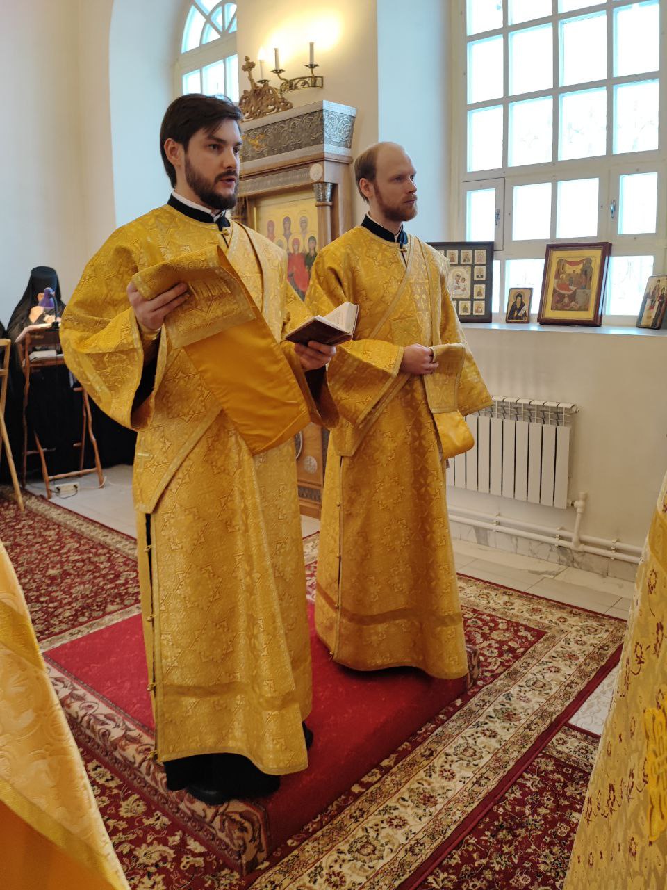На Малом входе, во внимание к усердным трудам во славу Святой Церкви, клирик монастыря иерей Алексий Боков был удостоен права ношения наперстного креста золотого цвета.
