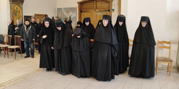 За богослужением молились исполняющая обязанности настоятельницы монастыря монахиня Николая (Александрова) с насельницами обители и паломниками.