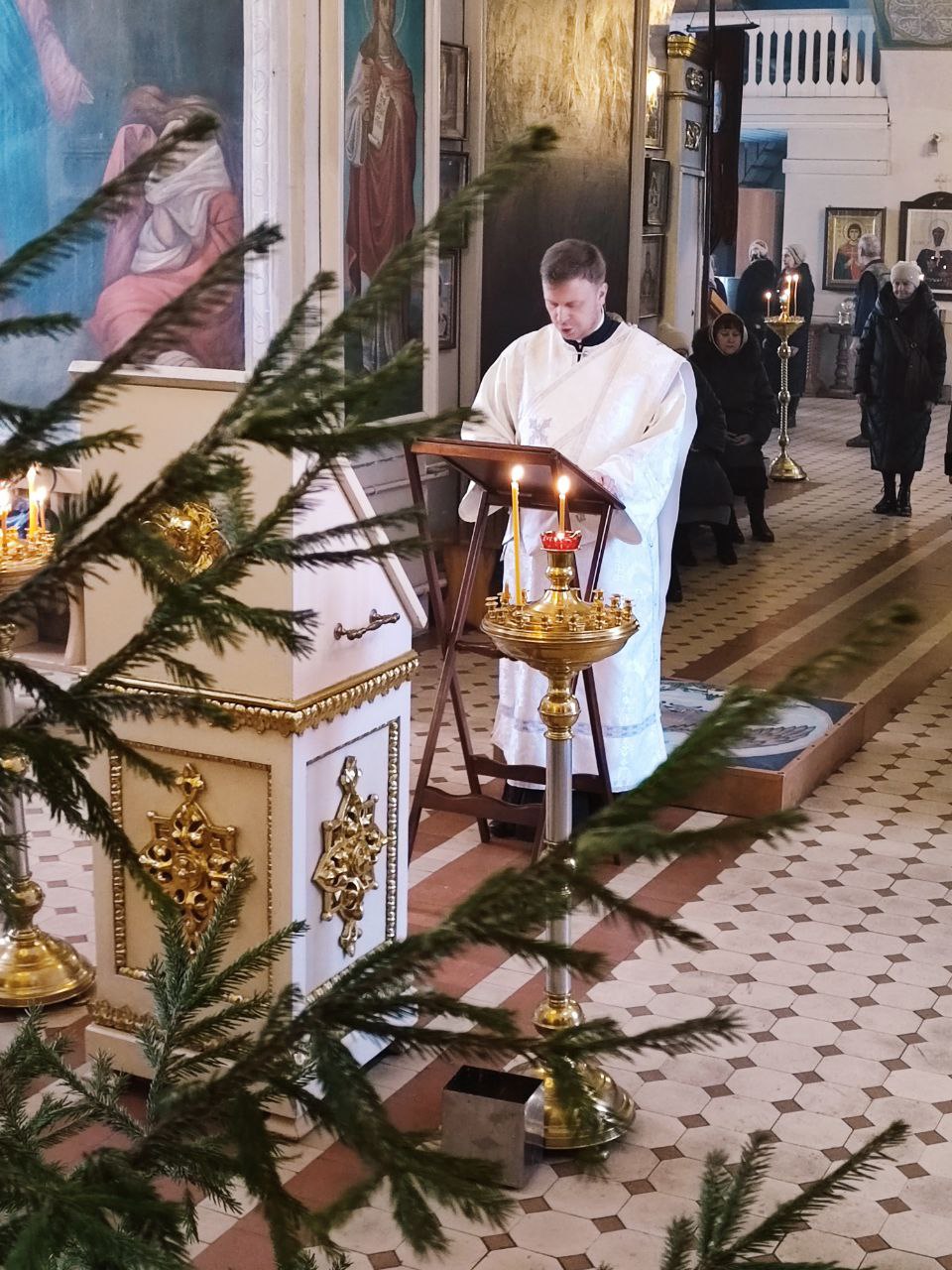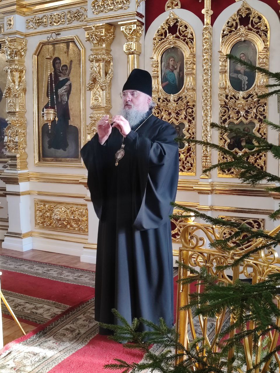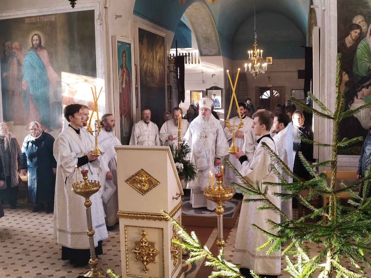 Епископ Козельский и Людиновский Никита совершил великую Рождественскую вечерню в соединении с Божественной литургией святителя Василия Великого в Благовещенском храме города Козельска. Преосвященному владыке сослужили: протоиерей Павел Морозов, настоятель храма иерей Сергий Барыкин, диакон Евгений Ковригин и диакон Евгений Васильев. За литургией были вознесены особые прошения и молитва о Святой Руси. По благословению Святейшего Патриарха Московского и всея Руси Кирилла эта сугубая молитва совершается во всех храмах Русской Православной Церкви за каждым богослужением. По заамвонной молитве перед рождественской свечой, знаменующей Вифлеемскую звезду, священнослужители пропели славление Рождеству Христову, а затем владыка обратился к богомольцам с проповедью.