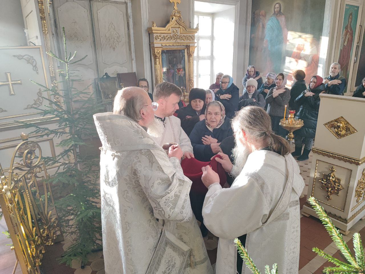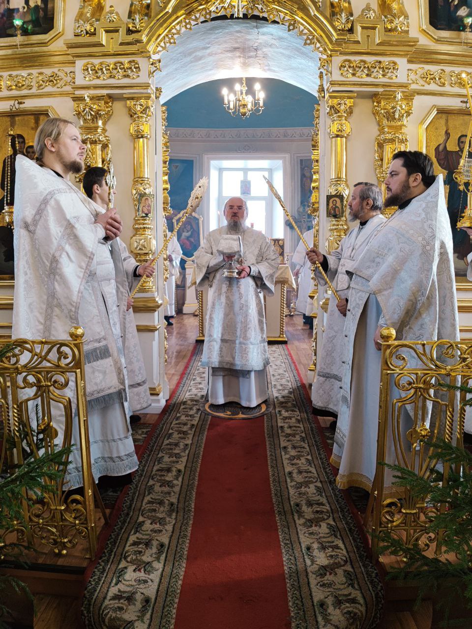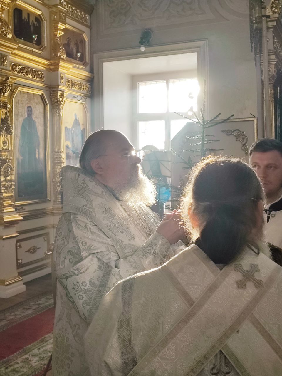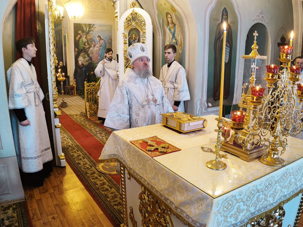 Епископ Козельский и Людиновский Никита совершил великую Рождественскую вечерню в соединении с Божественной литургией святителя Василия Великого в Благовещенском храме города Козельска. Преосвященному владыке сослужили: протоиерей Павел Морозов, настоятель храма иерей Сергий Барыкин, диакон Евгений Ковригин и диакон Евгений Васильев. За литургией были вознесены особые прошения и молитва о Святой Руси. По благословению Святейшего Патриарха Московского и всея Руси Кирилла эта сугубая молитва совершается во всех храмах Русской Православной Церкви за каждым богослужением. По заамвонной молитве перед рождественской свечой, знаменующей Вифлеемскую звезду, священнослужители пропели славление Рождеству Христову, а затем владыка обратился к богомольцам с проповедью.