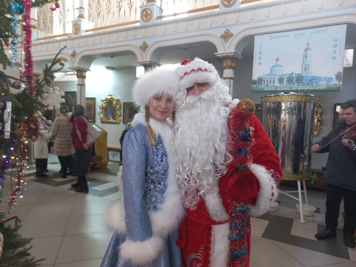 Затем, по  благословению настоятеля Казанского собора протоиерея Алексия Жиганова, началось праздничное представление для детей дошкольников и младшего школьного возраста. Для младших деток ребята из старшей группы Воскресной школы «Светоч» театрального кружка «Светлячок» (руководитель Ангелина Александровна Виноградова) подготовили сказочное представление – сказку «Морозко». В духовно – просветительском центре «Светоч», после сказки в большом трапезном зале всем воспитанникам Воскресной школы «Светоч» и студии «Дошкольник» были  вручены сладкие Рождественские подарки и фрукты с шоколадками от добрых спонсоров. А все детки, которые в это прекрасное время пришли в Казанский собор, также получили утешительные сладкие подарки. Детей и взрослых ждали Дед Мороз (Константин Храпыкин) со Снегурочкой (Елена Носова) – родители Воскресной школы «Светоч». Любой желающий мог с ними сфотографироваться у елочки и рассказать стишок и, конечно, не остаться без игрушки, а с дошколятами вокруг елки – красавицы Дедушка Мороз с внучкой Снегурочкой поводили хороводы с любимыми песнями о елочке. Рождество пришло в наш дом счастьем, радостью, добром.  «Христос родился! Бог воплотился!» — звучало из уст всех присутствующих в эти прекрасные Рождественские дни.