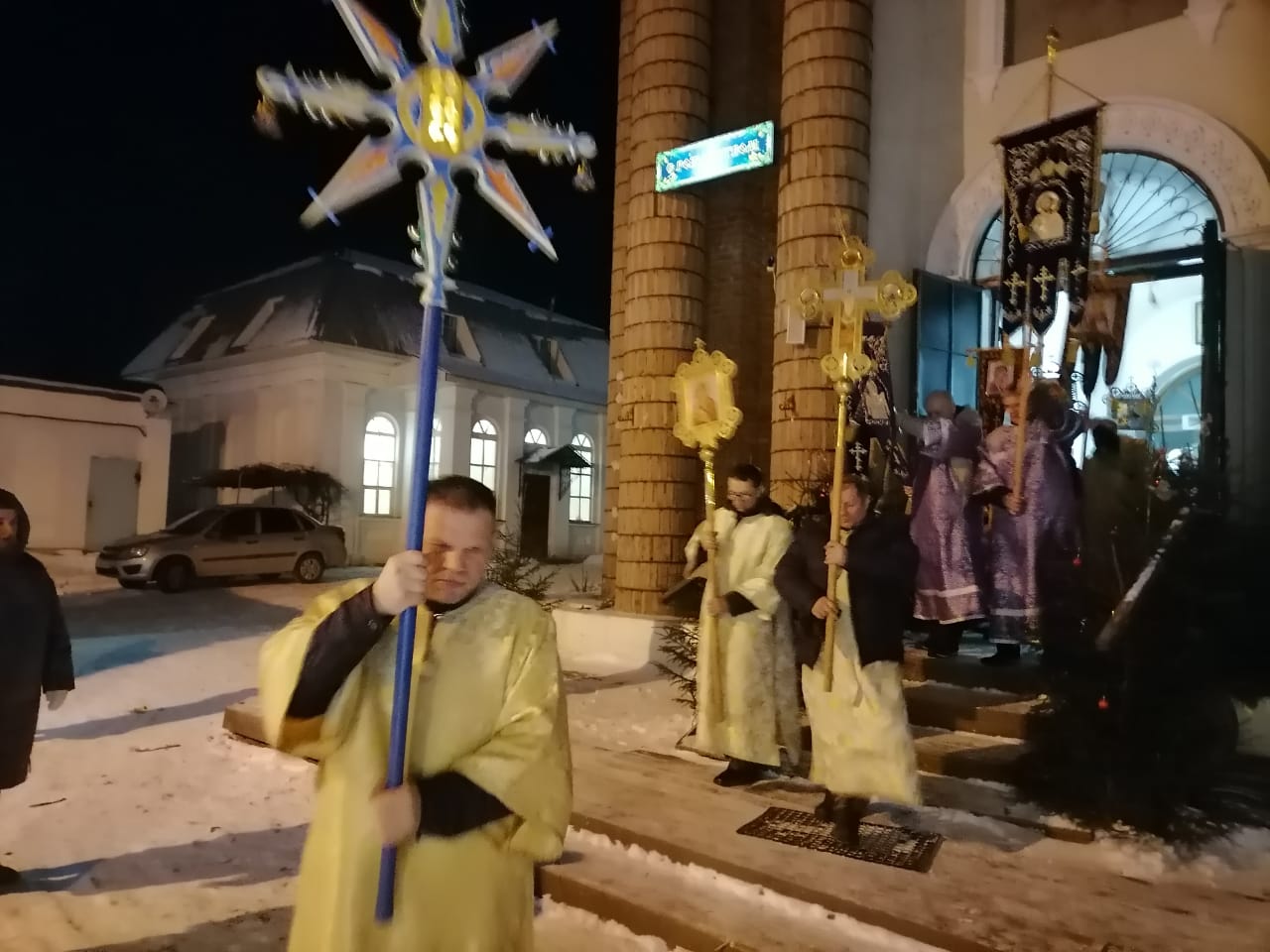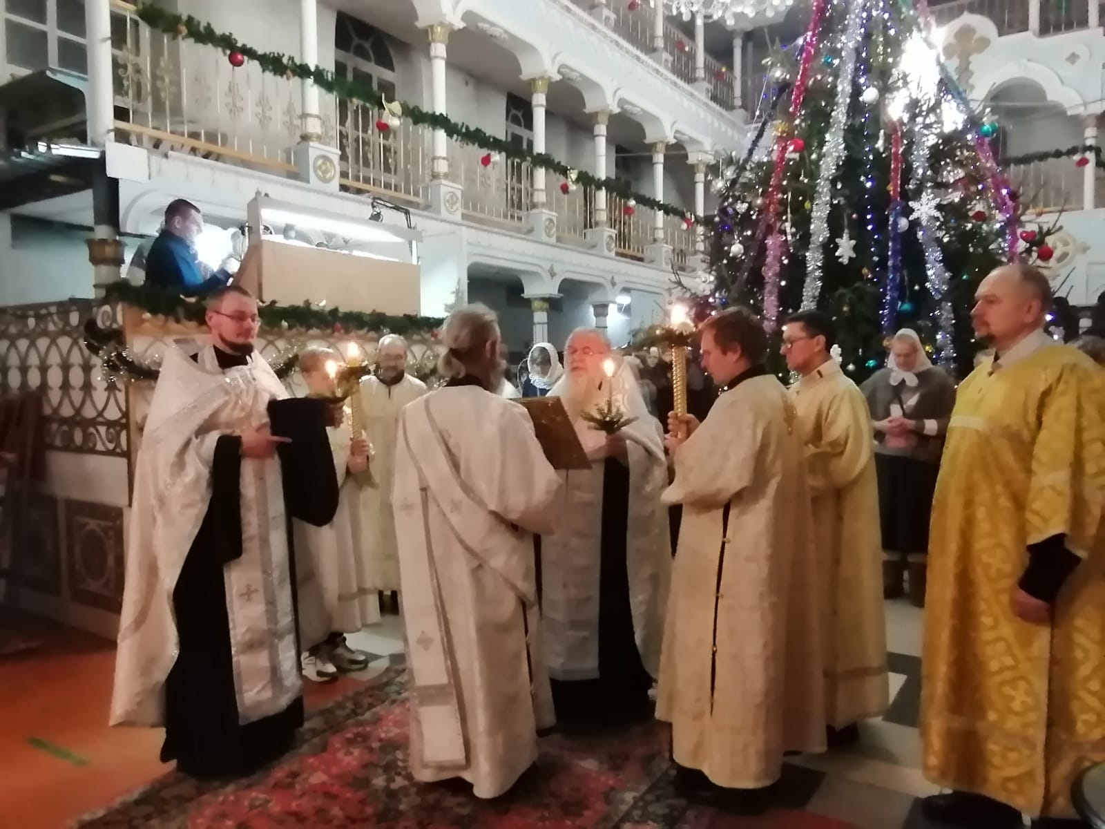 Рождественские торжества в Казанском соборе города Людиново начались праздничным всенощным бдением, которое вечером 6 января 2023 года возглавил настоятель собора протоиерей Алексий Жиганов в сослужении клириков храма иерея Алексия Сначева и диакона Андрея Соколова. Во время полиелея на утрене духовенство в центре храма пред иконой Рождества пропело величание праздника, после чего было прочитано Евангельское зачало от Матфея, повествующее о рождении в мир Спаса Христа. Затем прихожане храма приложились к праздничному образу и помазались освященным елеем.  После вечернего богослужения, по доброй местной традиции Казанского собора, был совершен Крестный ход вокруг храма с пением тропаря праздника. 7 января 2023 года, в полночь, в Казанском соборе совершилась праздничная Божественная литургия. В храме к этому часу было особенно торжественно. Радость переполняла сердца людей, пришедших  в эту светозарную ночь прославить родившегося Младенца Христа в главный храм города. Перед началом Божественной литургии протоиерей Алексий Жиганов огласил Рождественское послание Святейшего Патриарха Московского и всея Руси Кирилла архипастырям, пастырям и всем верным чадам Русской Православной Церкви, и Рождественское послание Преосвященнейшего Никиты, епископа Козельского и Людиновского. По окончании богослужения традиционно настоятель пригласил прихожан прославить Богомладенца пением колядок и Рождественских стихов. Самые смелые и подготовленные получили от настоятеля сладкие подарки.