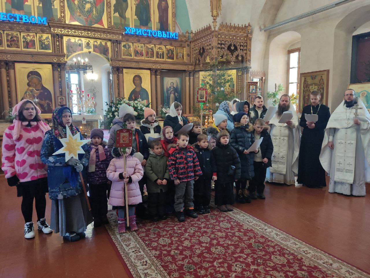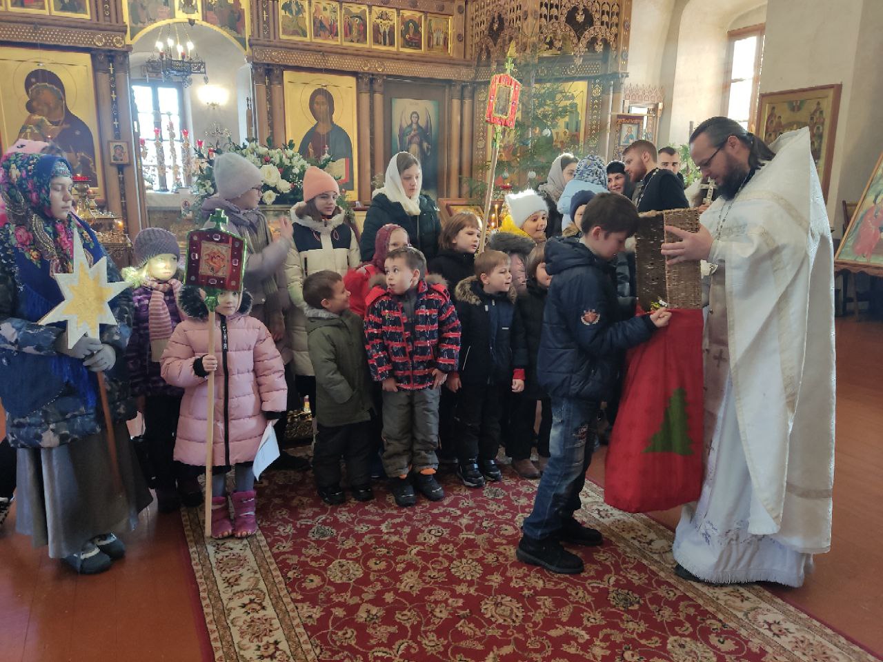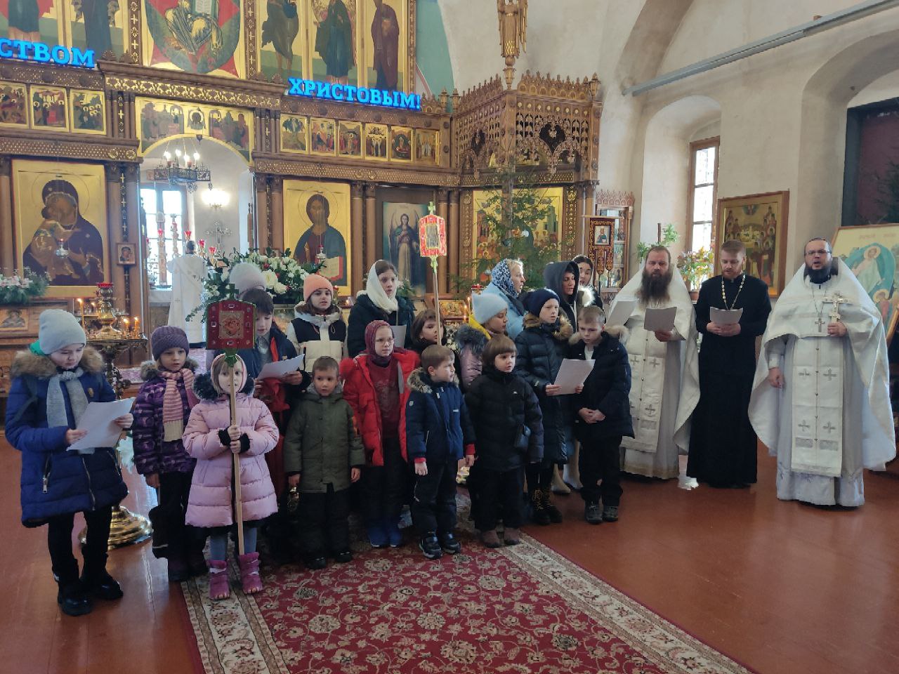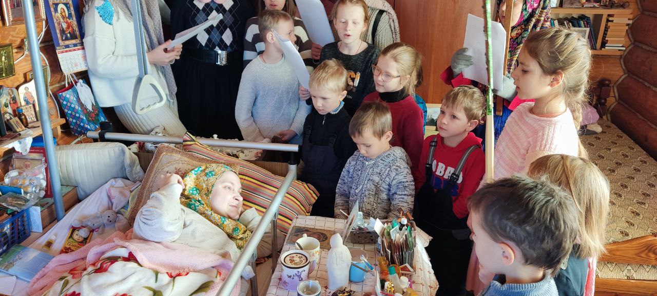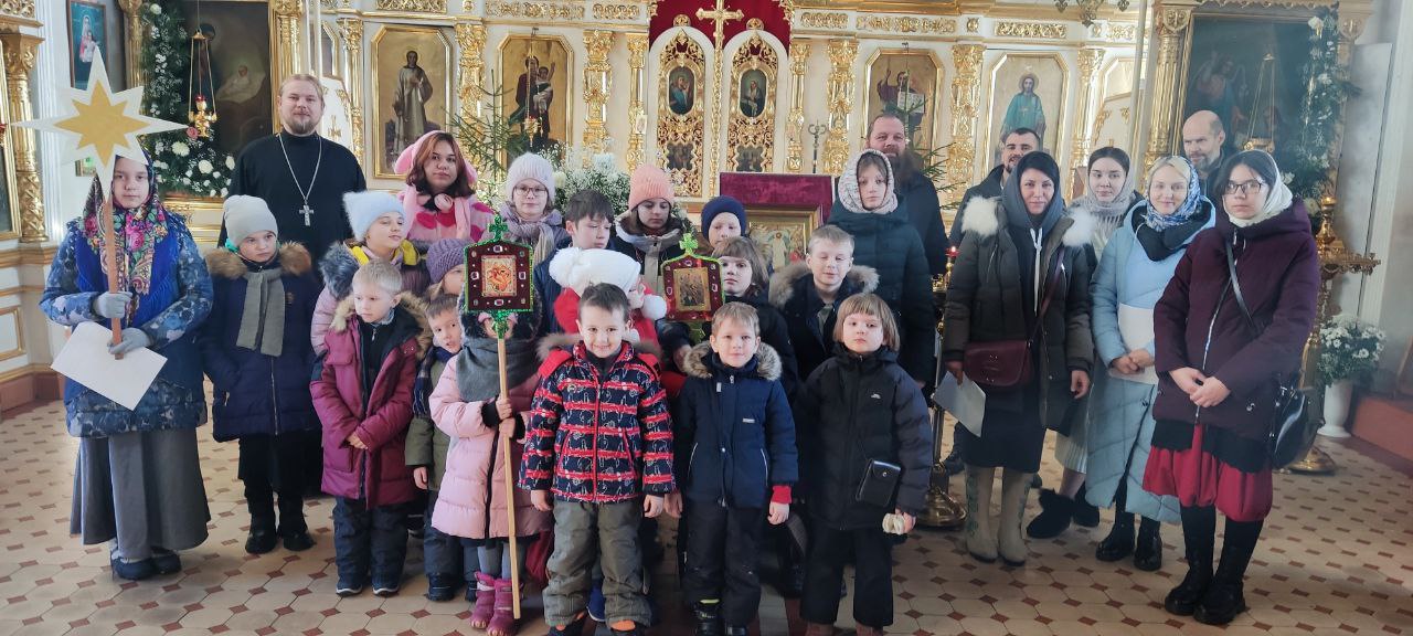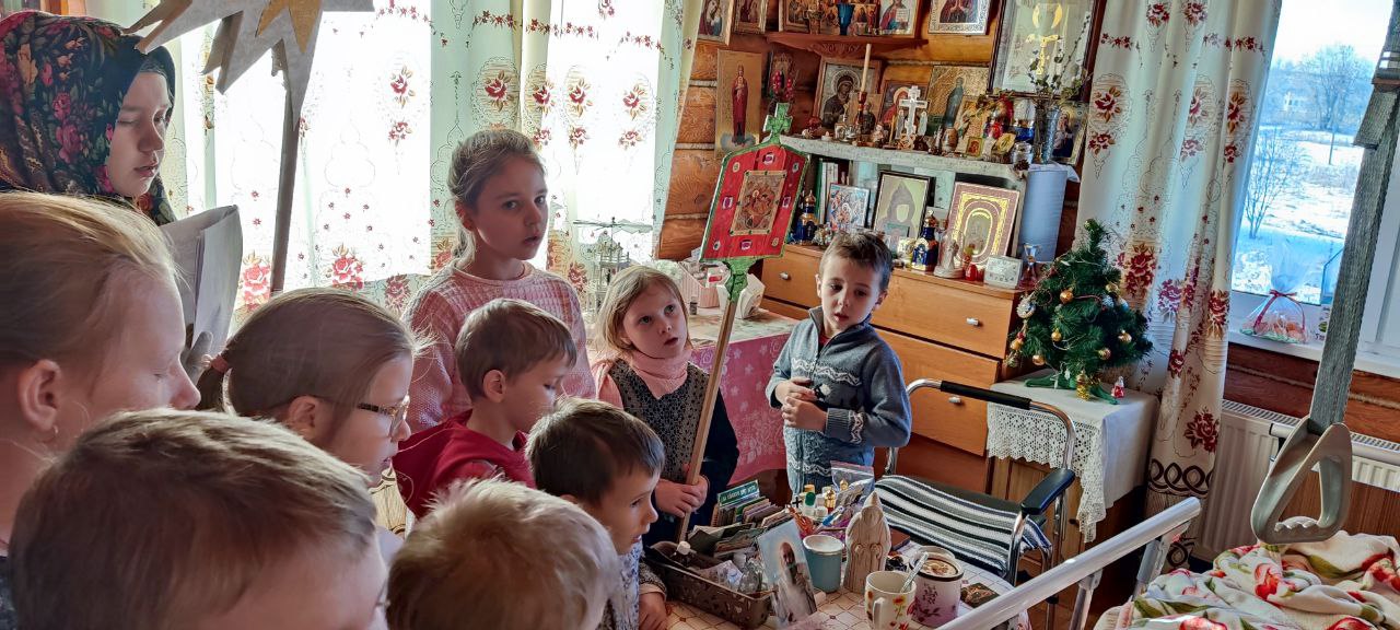 Уже традиционно, с рождественскими песнопениями и сладкими подарками, воспитанники воскресной школы посещают пожилых людей. Дети посетили богадельню при храме в селе Фроловском, а завершили колядования в богадельне  при монастыре в селе Клыково.
