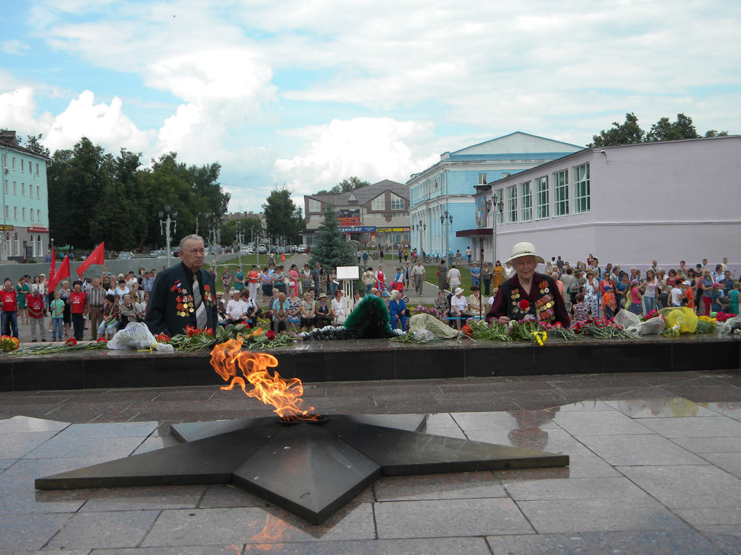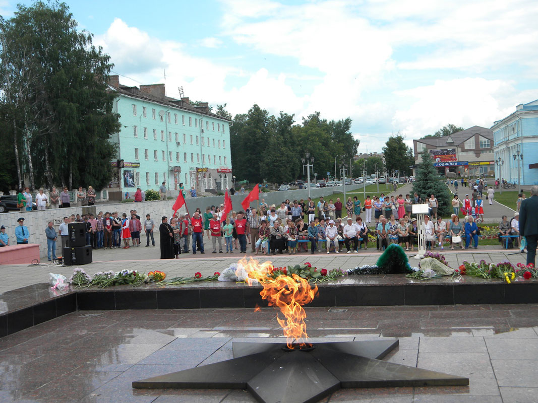 В приветственном слове о.Василий сказал: «22 июня 1941 года – самый печальный день в истории нашей страны. В день памяти и скорби мы вспоминаем всех погибших в жесткой схватке с врагом, склоняем головы перед поколением советских людей, принесших нам Победу. Рядом с нами в День памяти и скорби сегодня стоят те, кто воевал, выжил, восстановил страну, наш город. С каждым годом этих людей все меньше. Они уходят. Скоро их не будет совсем. Сегодня им нужно от нас, последующих поколений, не так много: чтобы знали и не забывали о великом подвиге, который каждый из них совершил, жертвуя всем, ради того, чтобы мы жили. И нам необходимо помнить, благодаря кому мы живем, и сказать им спасибо. И пусть никто не будет забыт, и ничто не будет забыто… И каждый год 22 июня к памятникам и монументам героям этой войны малыши и взрослые пусть по-прежнему несут цветы и траурные гирлянды. И отдают дань уважения ныне живущим ветеранам. Вечная память тем, кто не вернулся с войны, кто скончался от полученных ранений в послевоенные годы! Низкий поклон ныне живущим ветеранам Великой Отечественной войны, труженикам тыла, чьи боевые и трудовые свершения заслуживают восхищения и благодарности!»