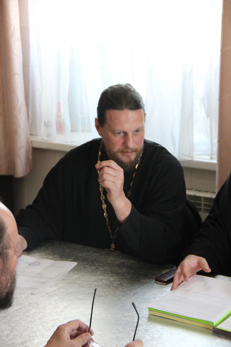 На встрече обсуждались вопросы преподавания ОПК в школах вышеозначенных благочиннических округов, были рассмотрены программы мероприятий по данному вопросу, методические пособия, разработанные в благочиниях в помощь преподавателям этого предмета.