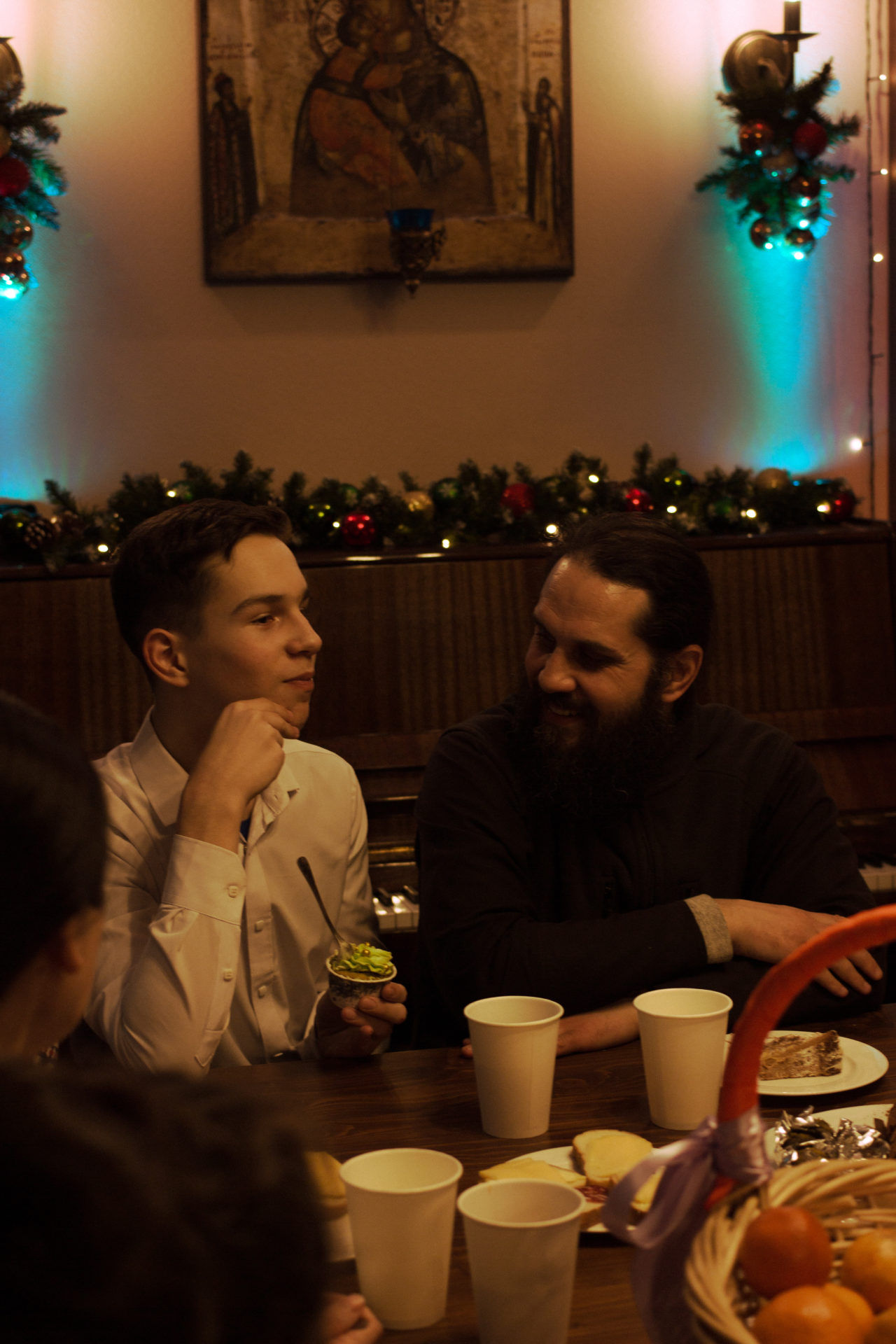 По окончании Рождественского мероприятия настоятель храма иерей Максим Изопов поблагодарил детей за старательные выступления и вручил всем и даже самым маленьким сладкие подарки. Особенно он отметил, что дети занимаясь третий год с музыкальным руководителем делают большие успехи. Поблагодарил клирос за красивое пение и родителей, которые потрудились и испекли для всех угощения к столу.