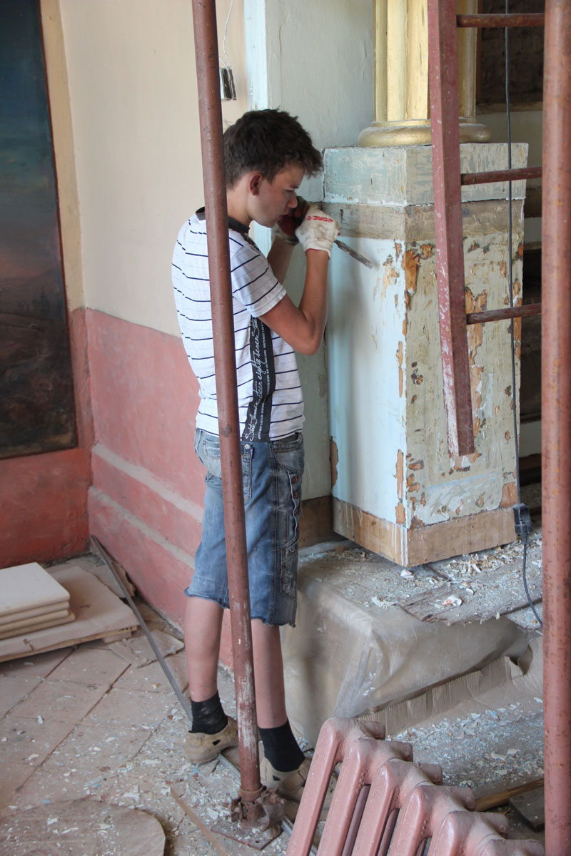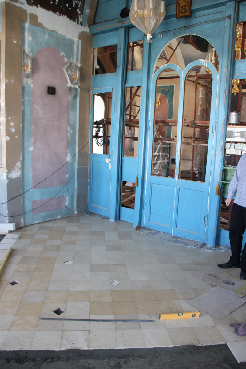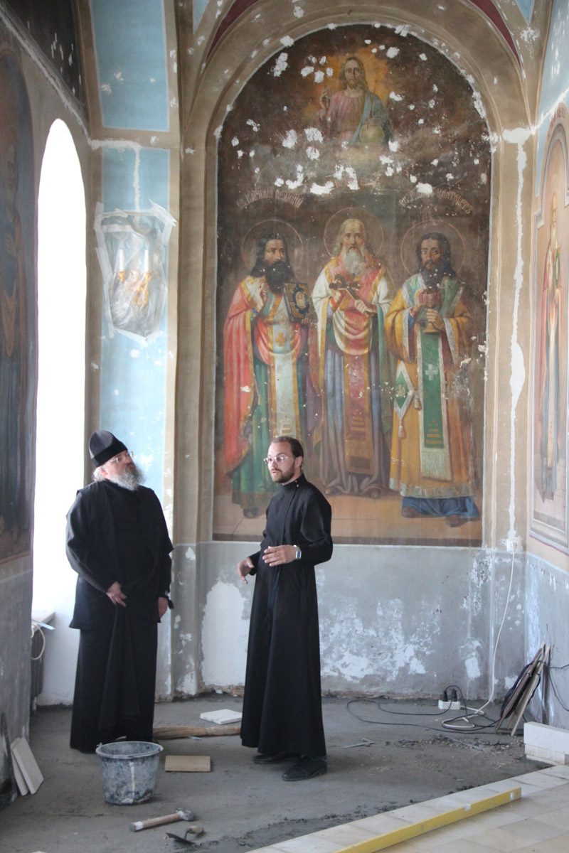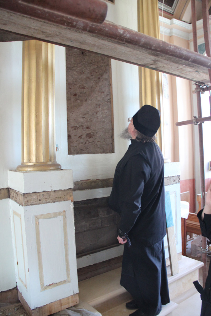 Староста храма диакон Тихон Худяков подробно рассказал владыке о ходе ремонта и сроках его завершения. В настоящее время осуществляется замена полов в алтаре и реставрация центрального иконостаса, установка новой системы отопления и подготовка к реставрации росписи алтарной части храма.