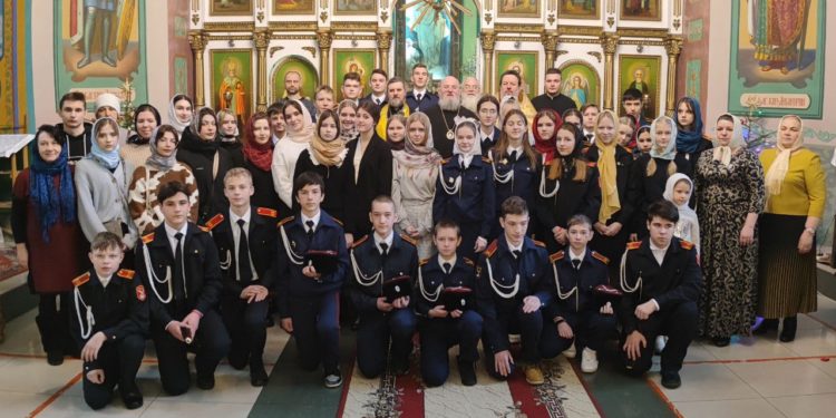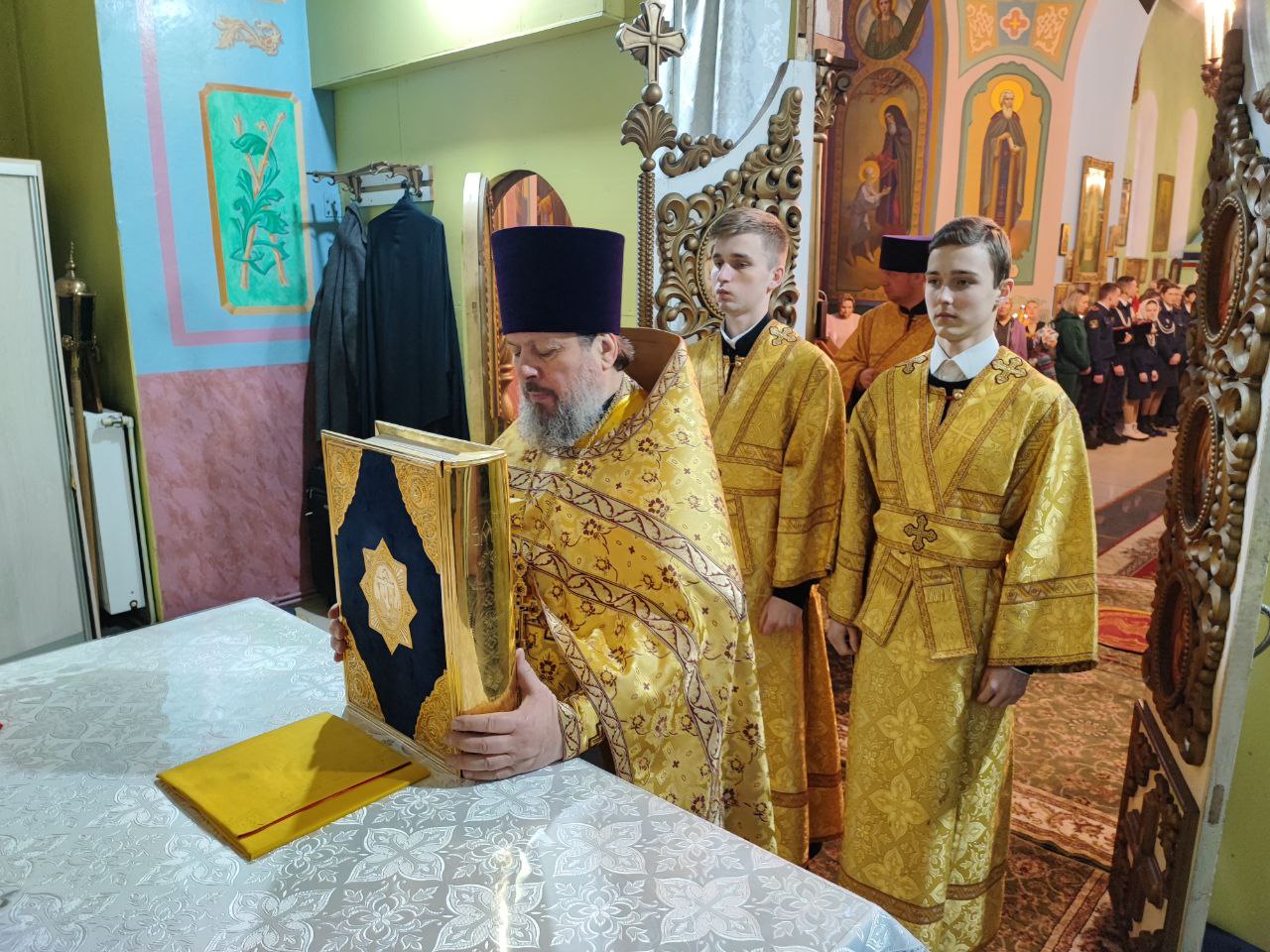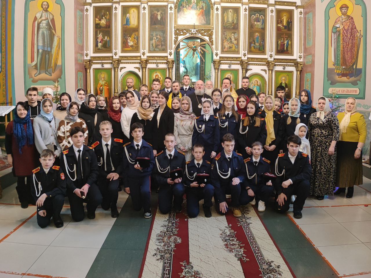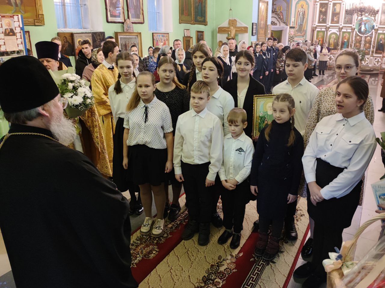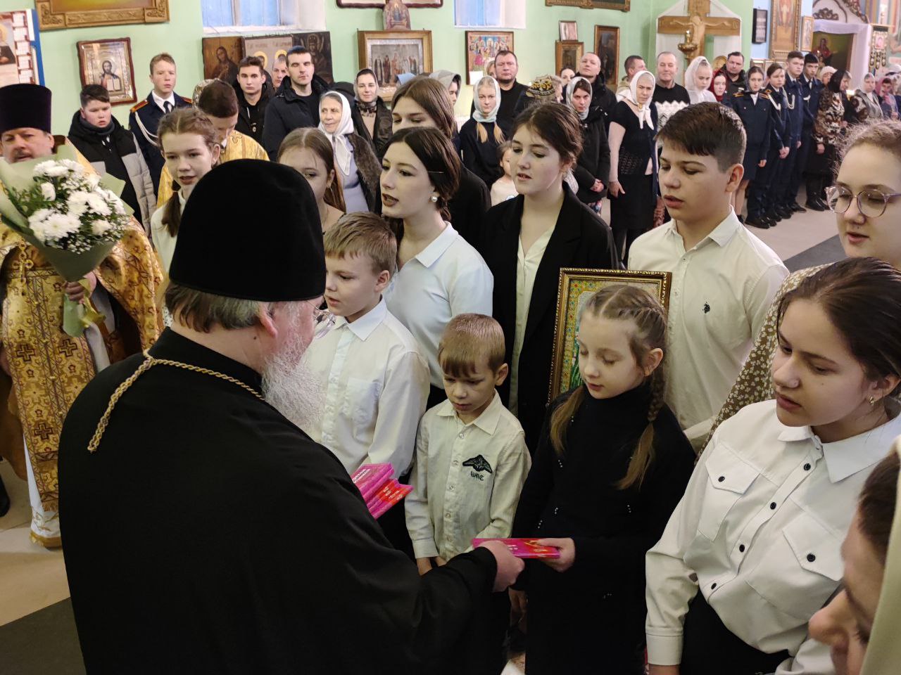 За Богослужением молились кадетские классы муниципального казенного общеобразовательного учреждения «Средняя общеобразовательная школа № 6 имени Героя Советского Союза А.И.Свертилова», прихожане и жители города Людиново.