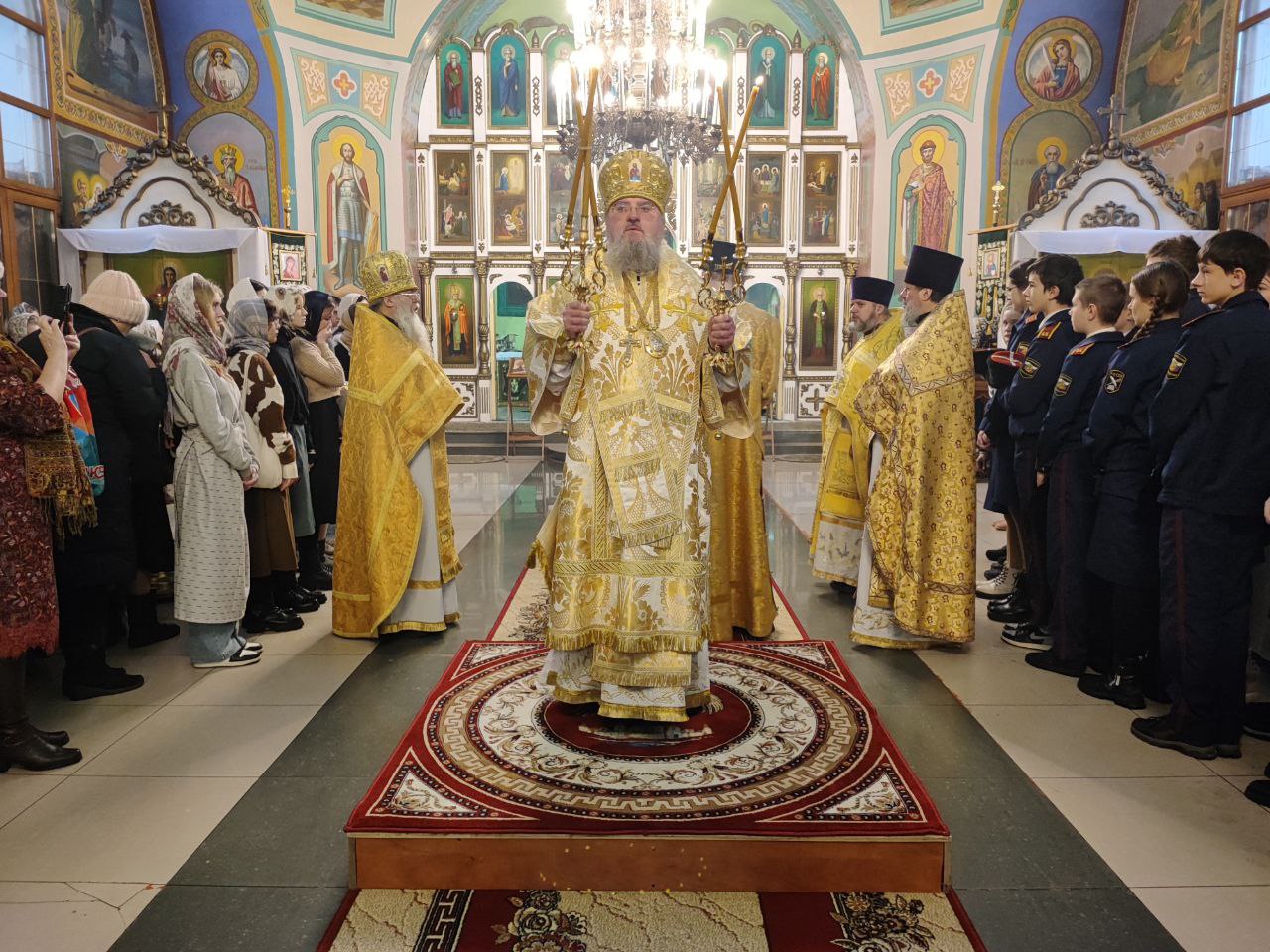 По отпусте литургии священнослужители совершили молитвословия на начало нового 2023 года, начавшегося в этот день по юлианскому календарю, и славление святителю Василию Великому архиепископу Кесарии Каппадокийской, по окончании которого Владыка обратился к богомольцам с проповедью.