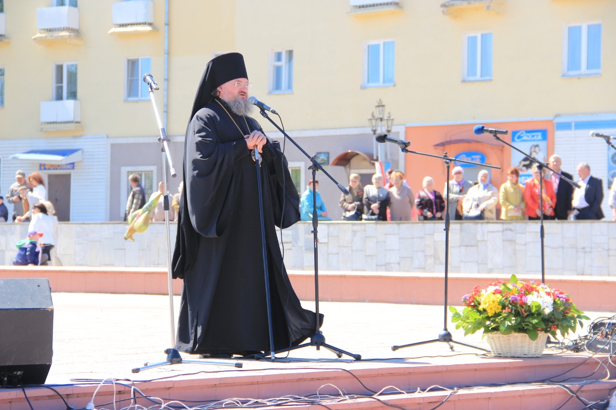 Епископ Козельский и Людиновский Никита принял участие в праздничном шествии и в митинге в городе Людиново