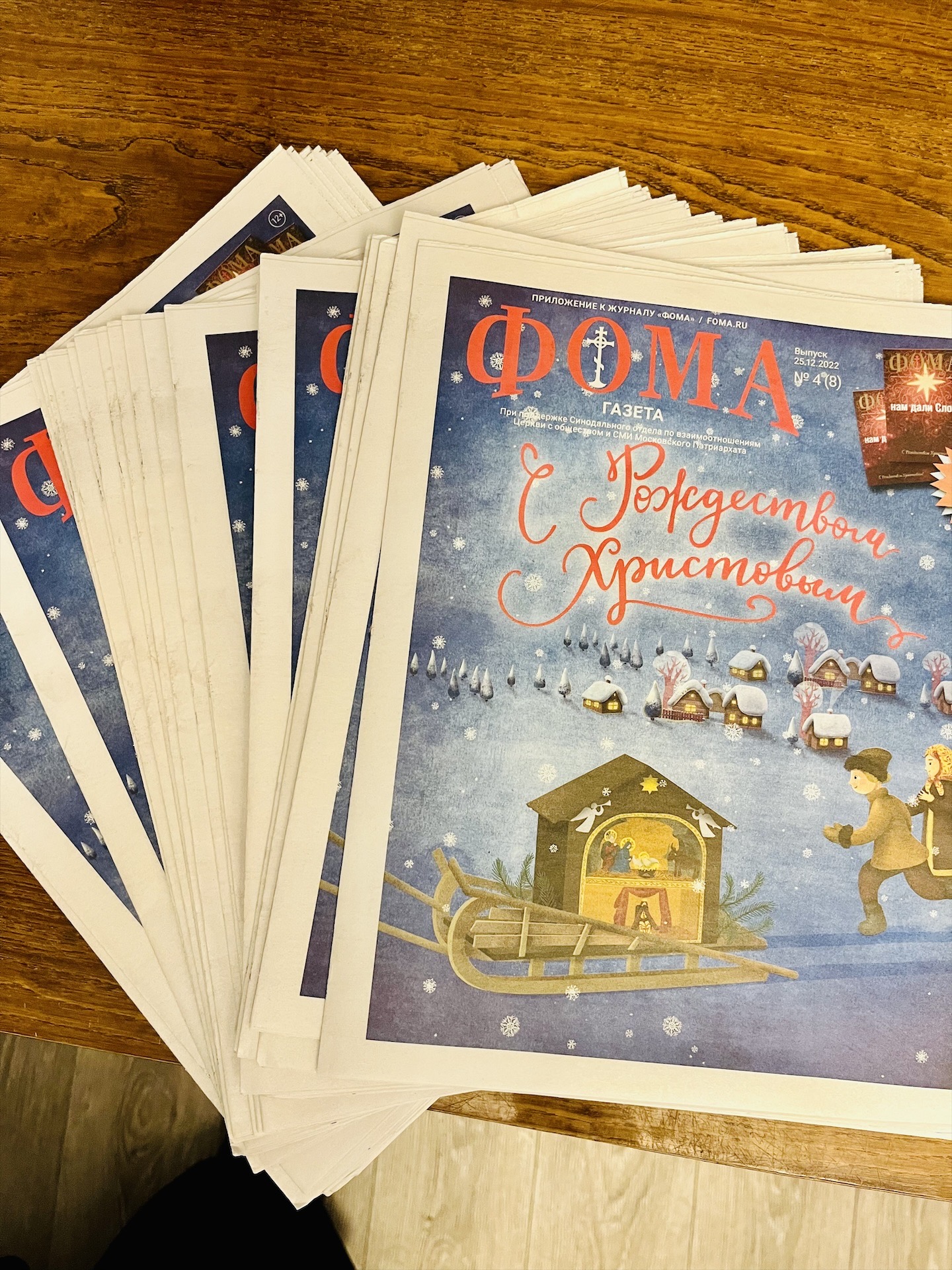 1000 экземпляров газеты «Фома» было благотворительно роздано прихожанам Козельских храмов. В святочные дни и в праздник Крещения Господня люди могли бесплатно взять в храмах интересную, ярку, иллюстрированную газету «Фома», в которой говорилось о праздниках Рождества и Крещения Господня, история праздников, значение, иконография. Также газета распространялась среди подопечных Сестричества Милосердия. Данная акция была организована Миссионерским отделом епархии с целью духовного просвещения. Выражаем благодарность фонду «Фома Центр» за предоставление газет.
