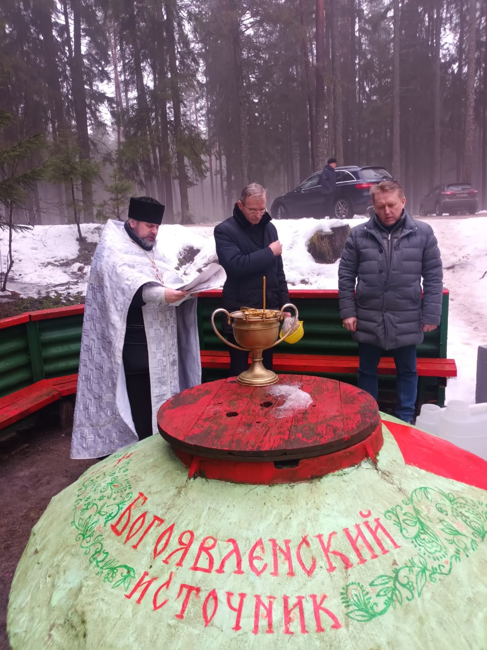 19 января, в день празднования Богоявления и Крещения Господня, настоятель Свято-Лазаревского храма в городе Людиново протоиерей Михаил Карпенко совершил чин Великого освящения воды на святом источнике «Башкиров колодец» и в купели в честь иконы Божией Матери «Живоносный источник» у деревни Тихоновка Людиновского района.