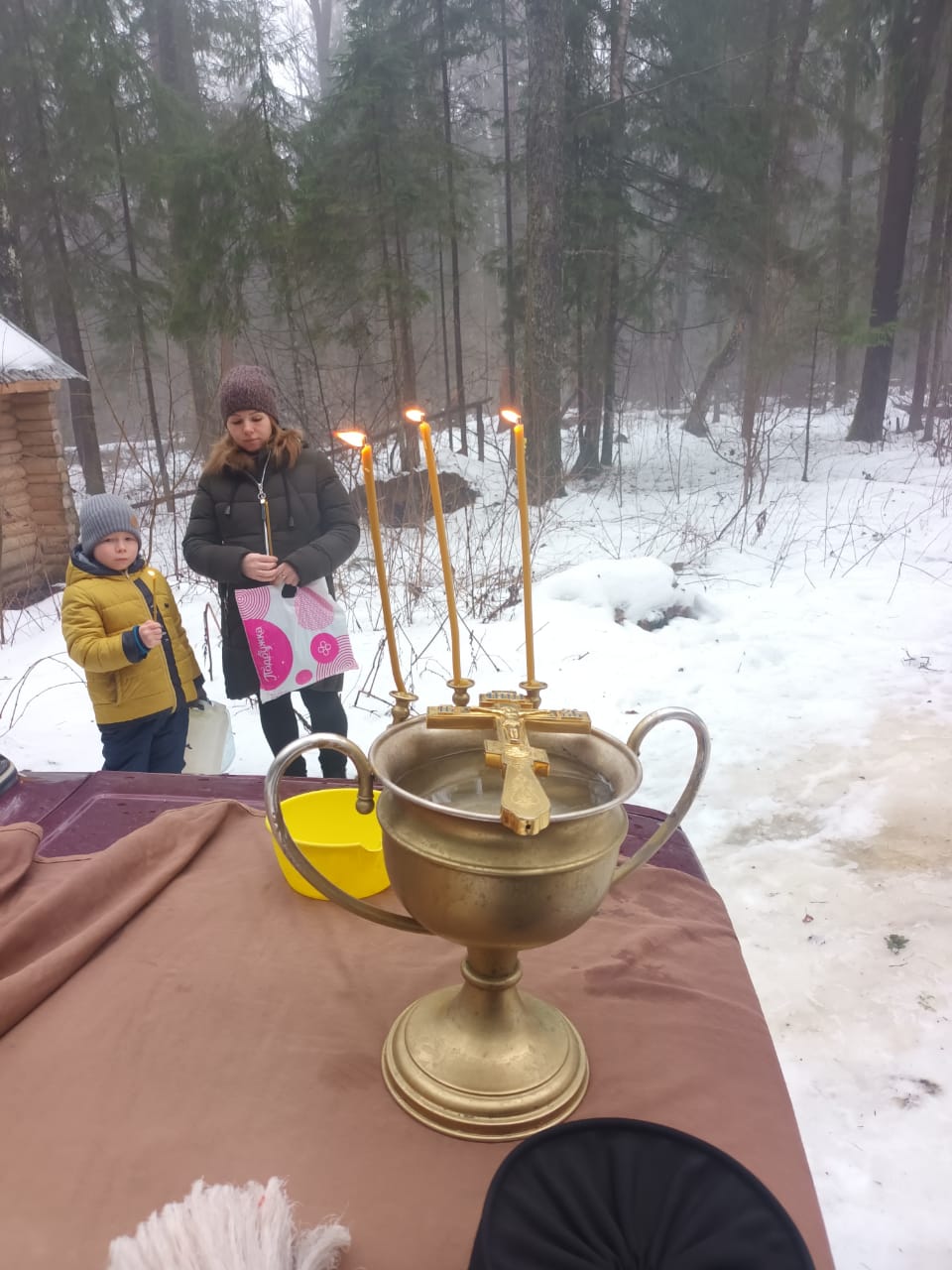Поблагодарив присутствующих за общую молитву, батюшка напомнил как хранить и пользоваться Крещенской водой.