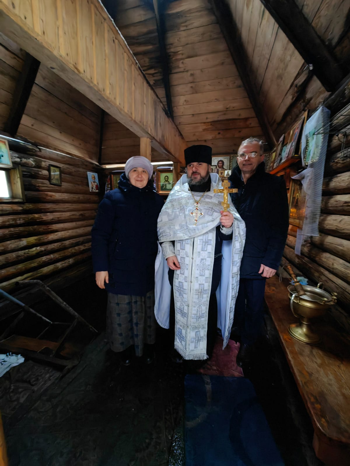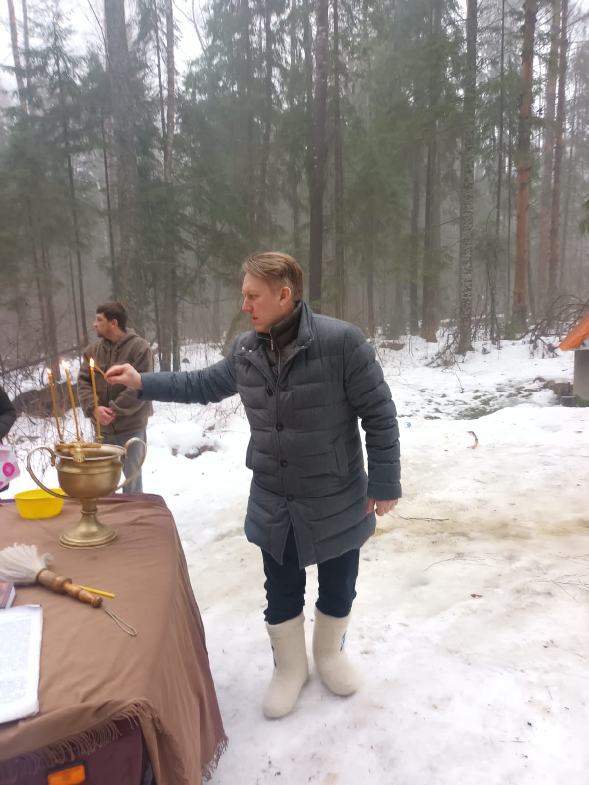 Во время чина водосвятия молились Генеральный директор АО «Людиновокабель» Вадим Юрьевич Чайко и заместитель исполнительного директора АО «Людиновокабель», депутат Городской Думы Владимир Евгеньевич Потапов.