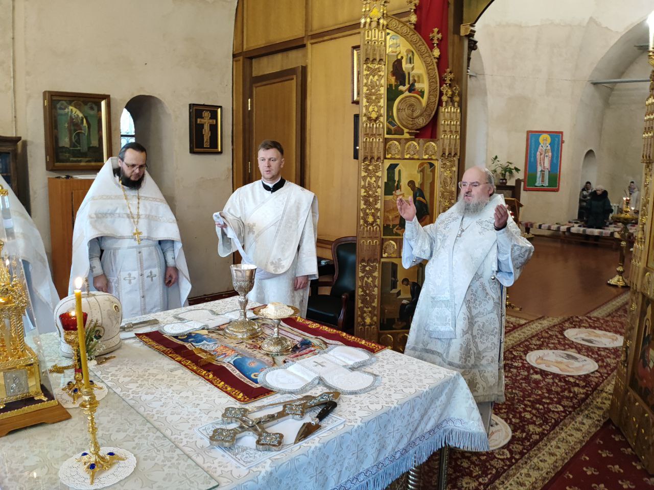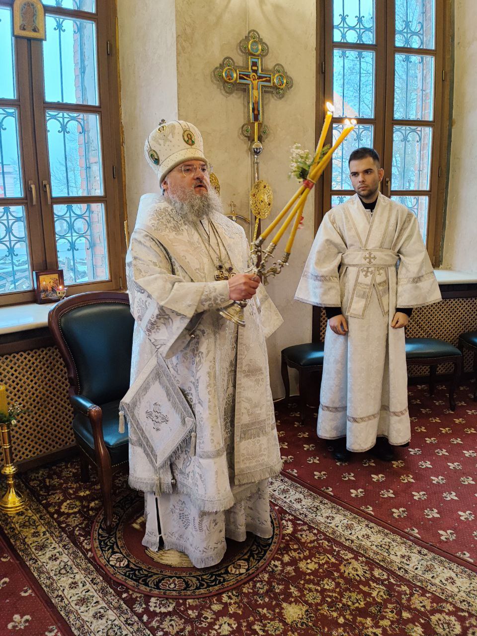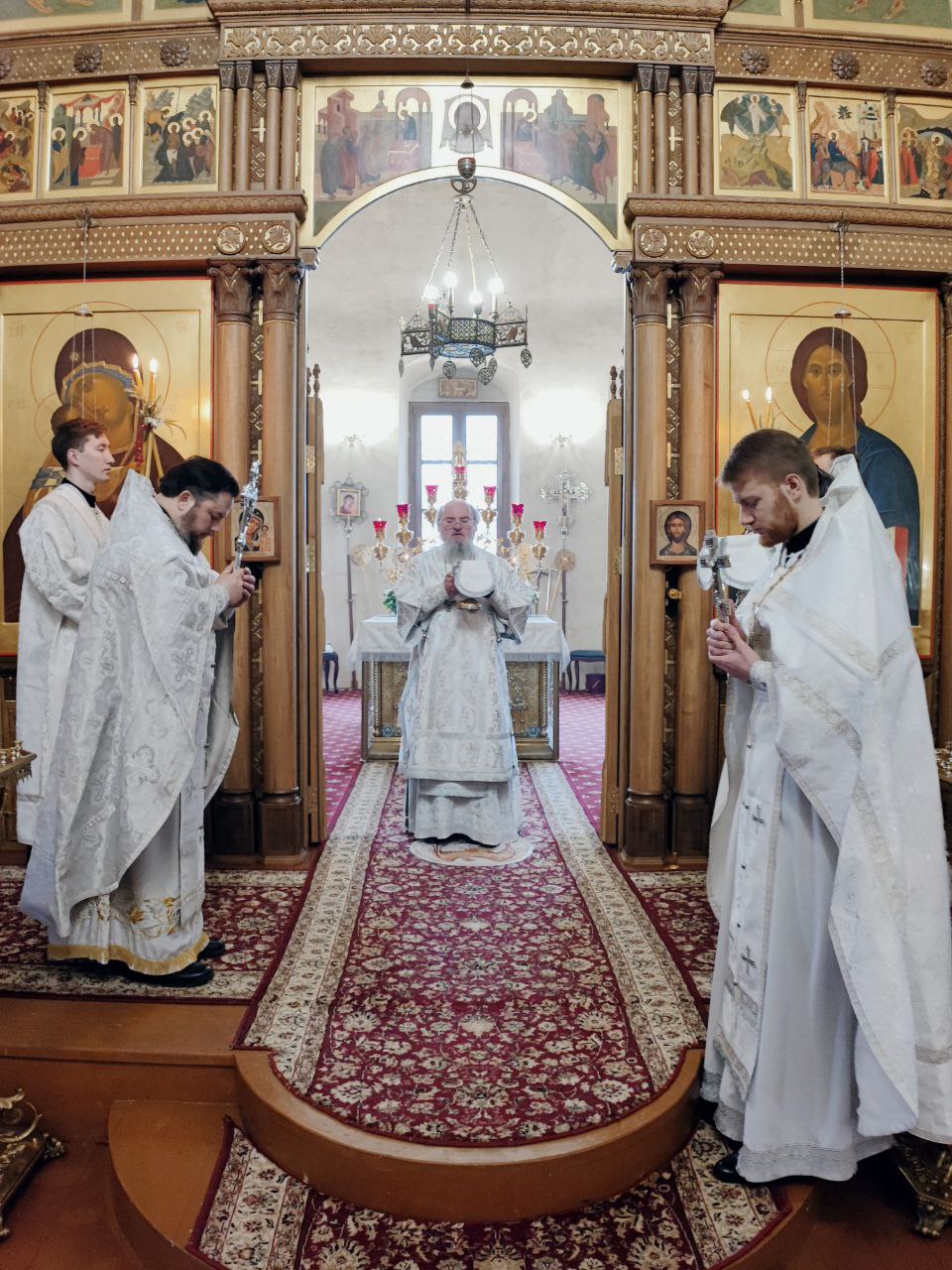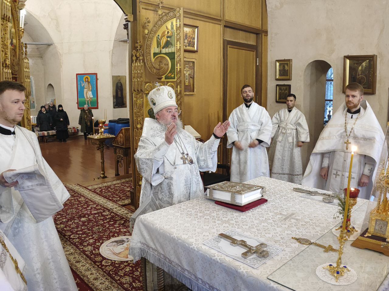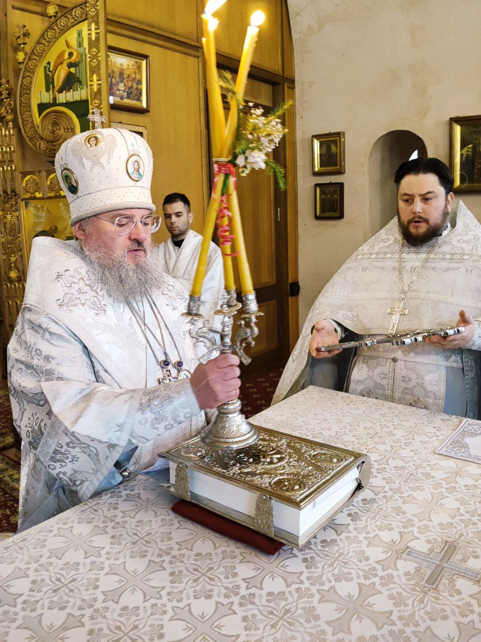 Преосвященному владыке сослужили: иеромонах Паисий (Курмаз) настоятель собора, протоиерей Антоний Хатунцев, иерей Елисей Тимофеев и диакон Евгений Ковригин.