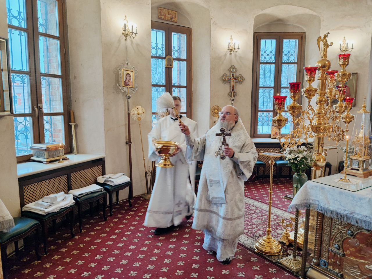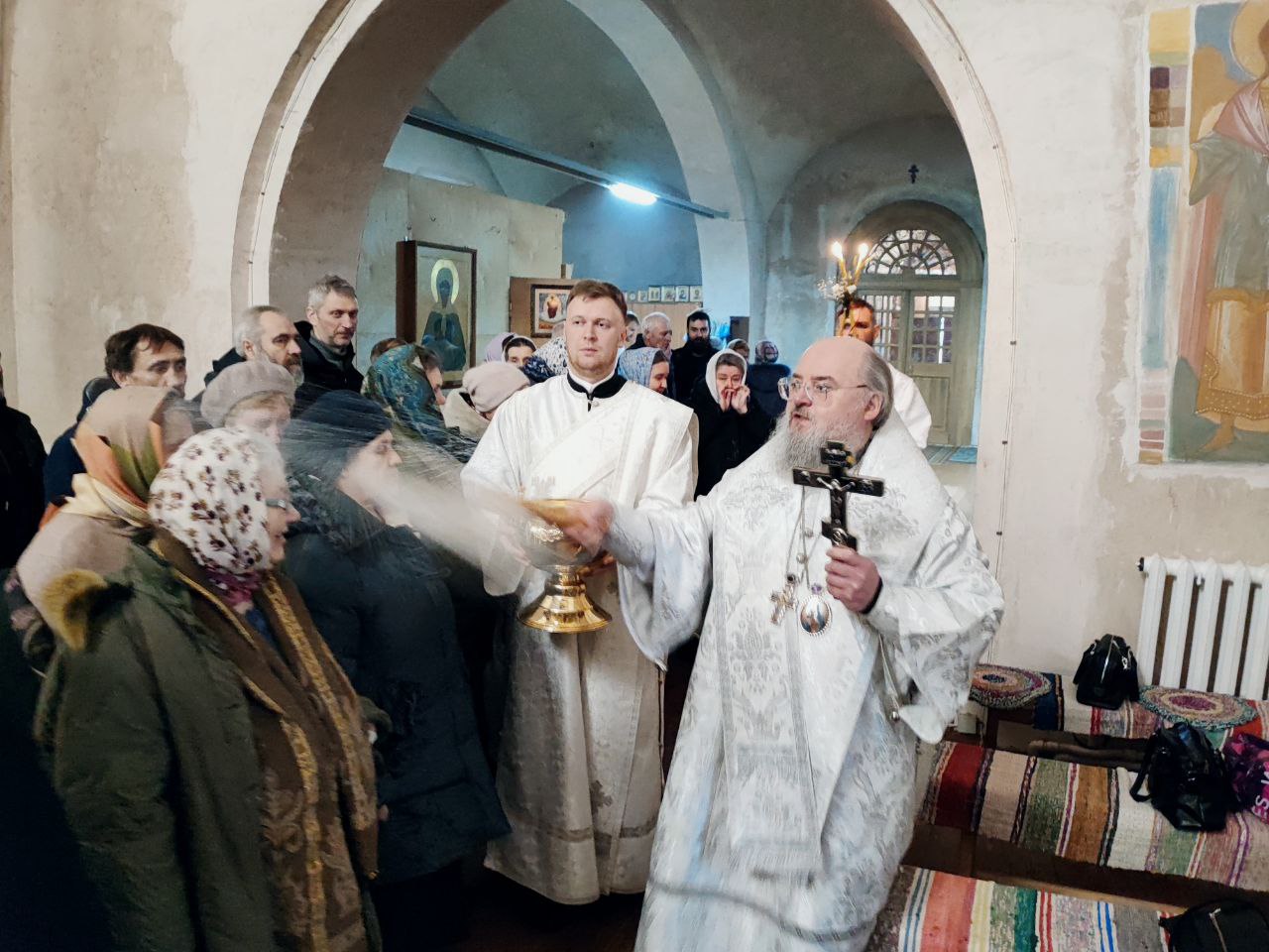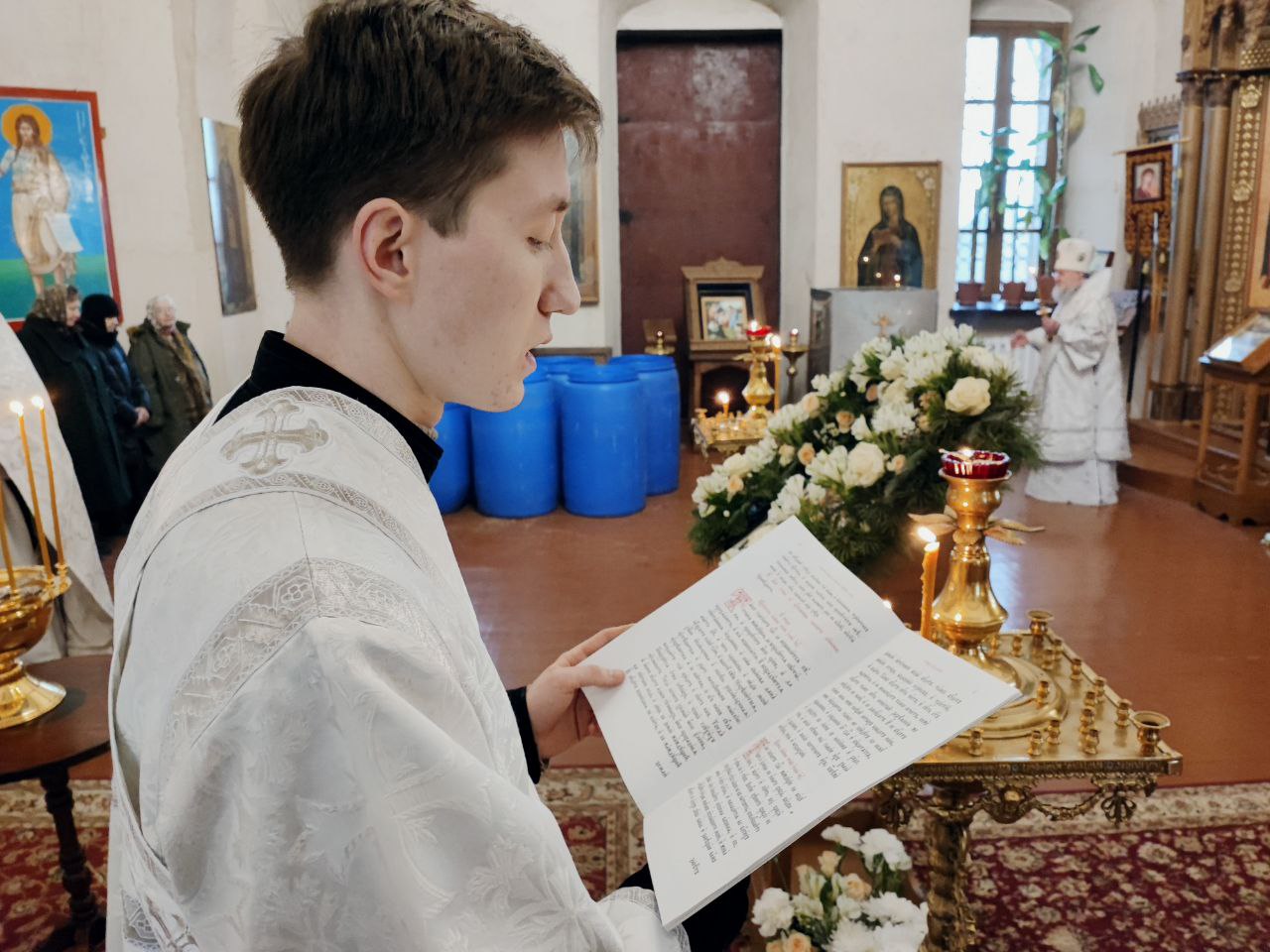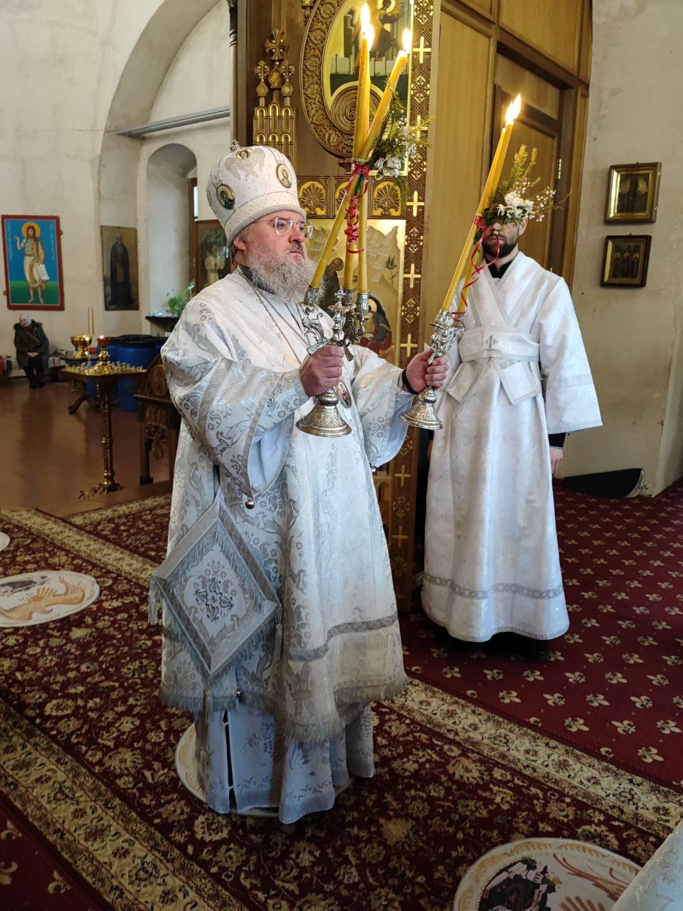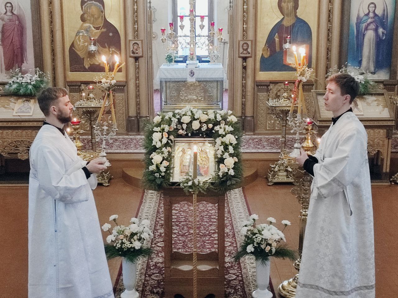 Преосвященному владыке сослужили: иеромонах Паисий (Курмаз) настоятель собора, протоиерей Антоний Хатунцев, иерей Елисей Тимофеев и диакон Евгений Ковригин.