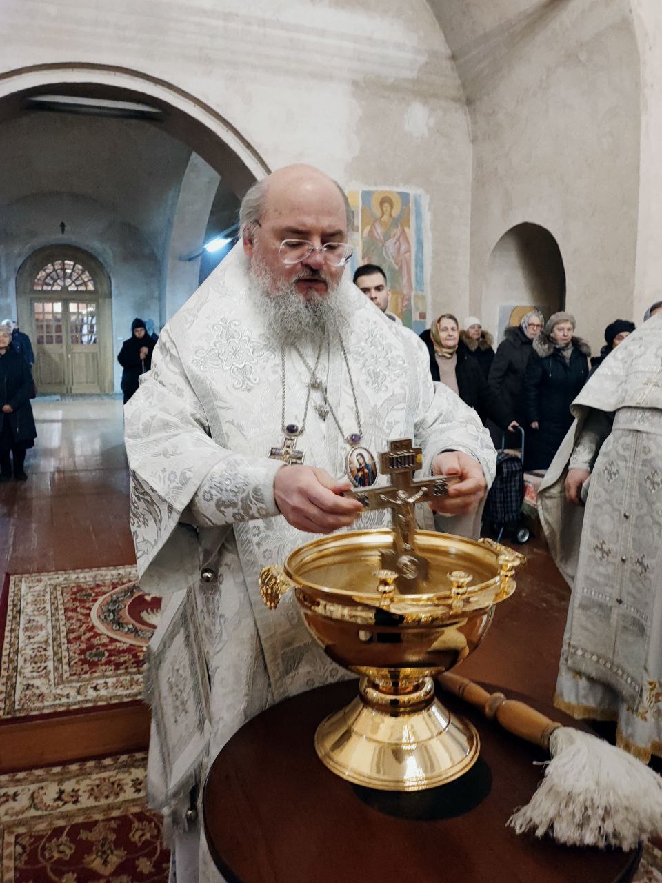 Епископ Козельский и Людиновский Никита совершил в Успенском кафедральном соборе города Козельска великую вечерню Богоявления в соединении с Божественной литургией святителя Василия Великого и чин Великого освящения воды.