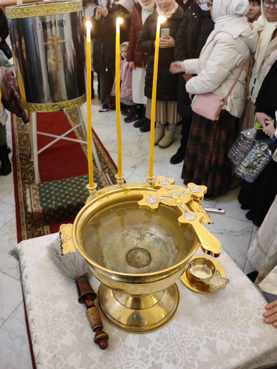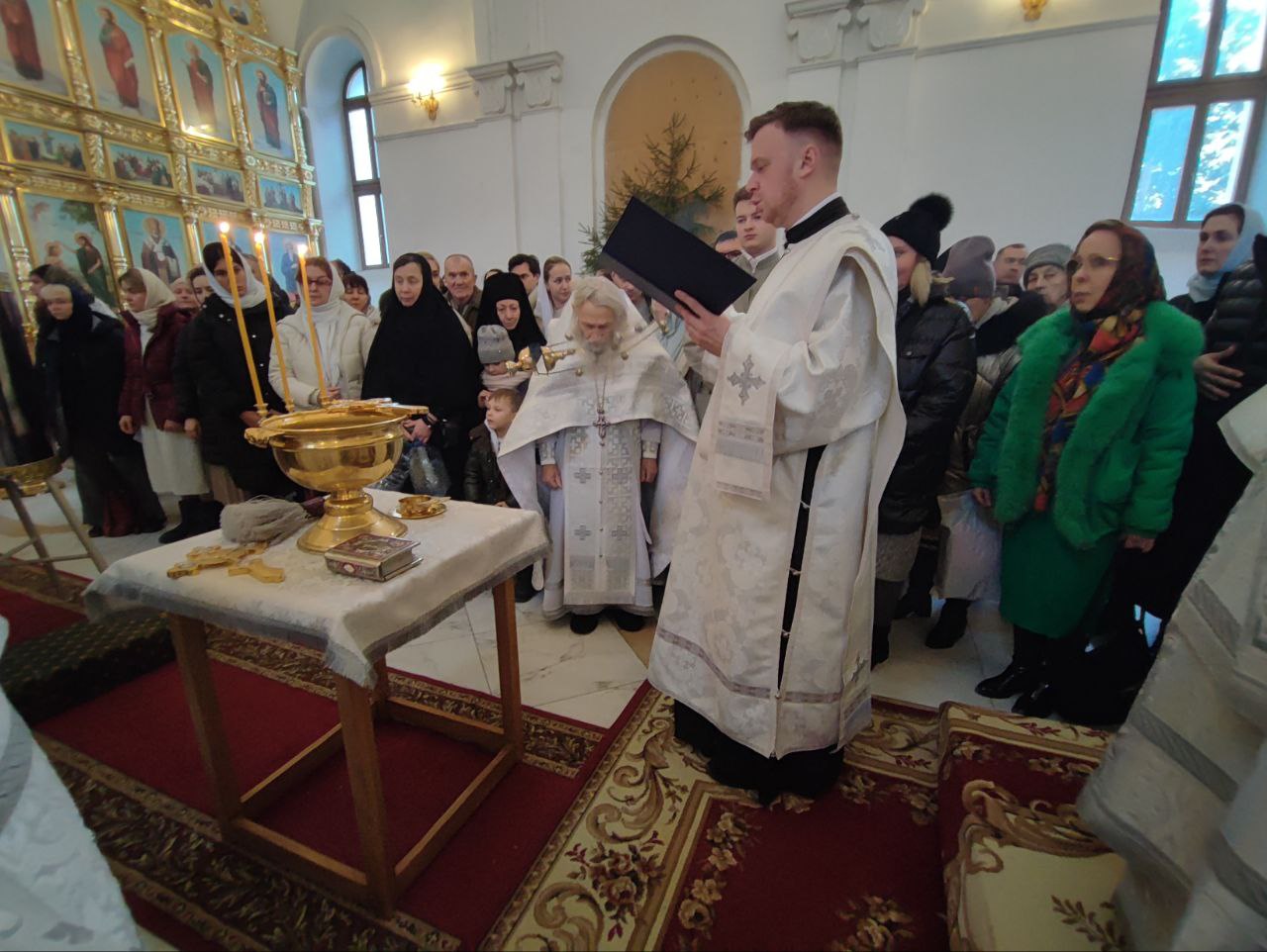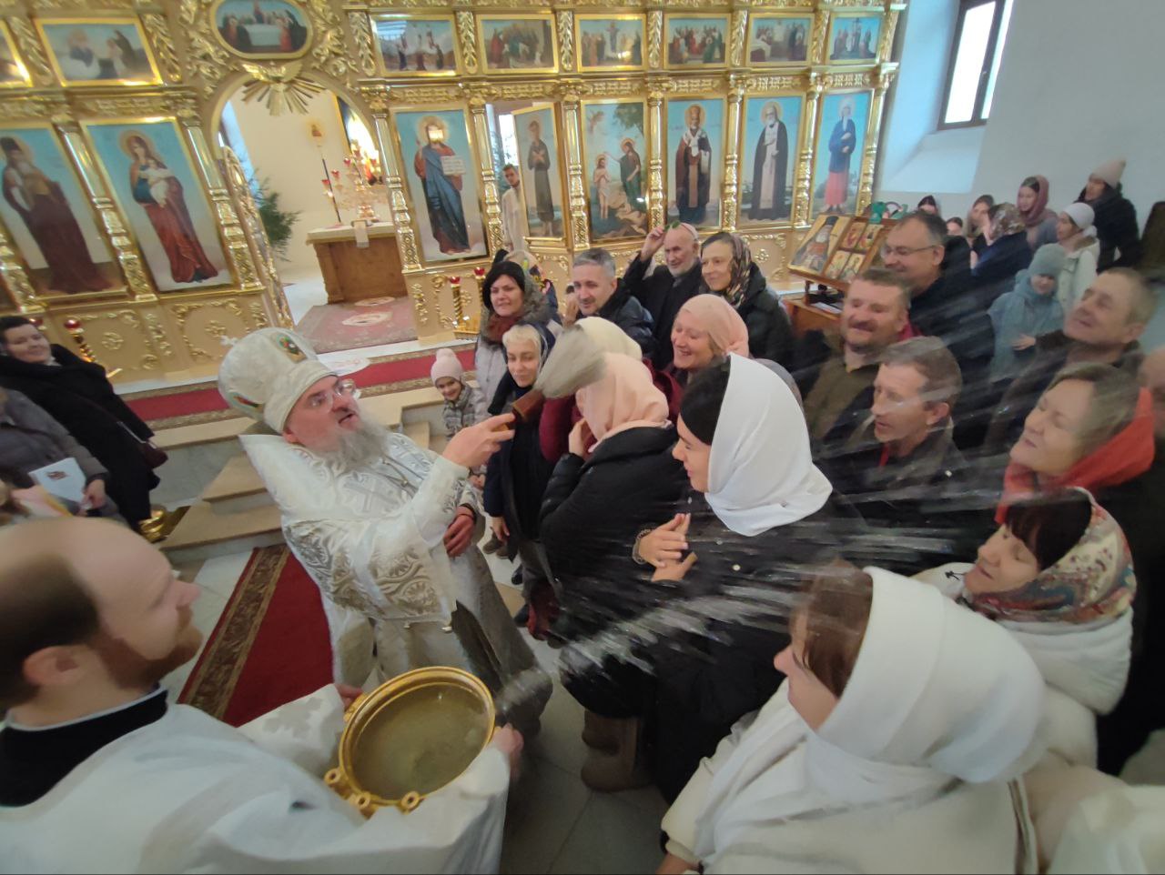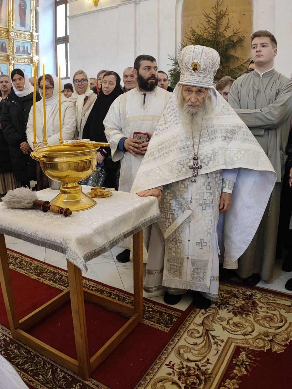 После заамвонной молитвы священнослужители совершили чинопоследование великого освящения воды, а затем владыка обратился к богомольцам с проповедью.