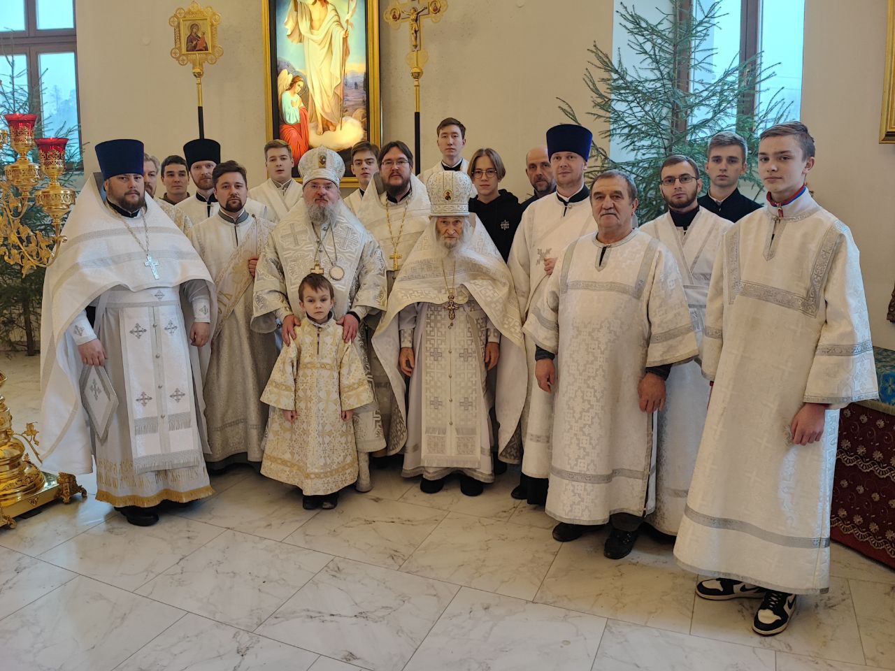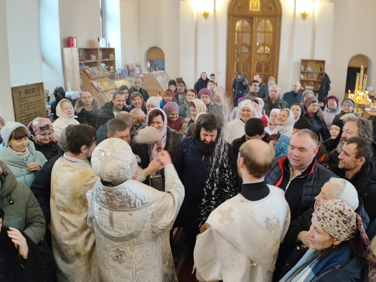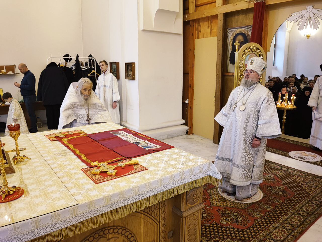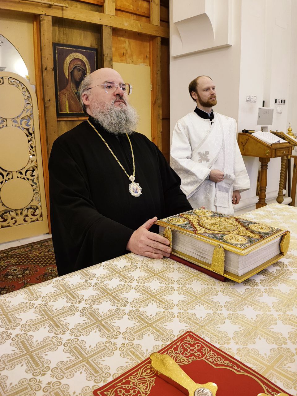Его Преосвященству сослужили: схиархимандрит Илий (Ноздрин), протоиерей Антоний Хатунцев, иерей Дионисий Куваев – настоятель храма, диакон Евгений Ковригин, иеродиакон Лука (Старостин) и диакон Павел Викулов.