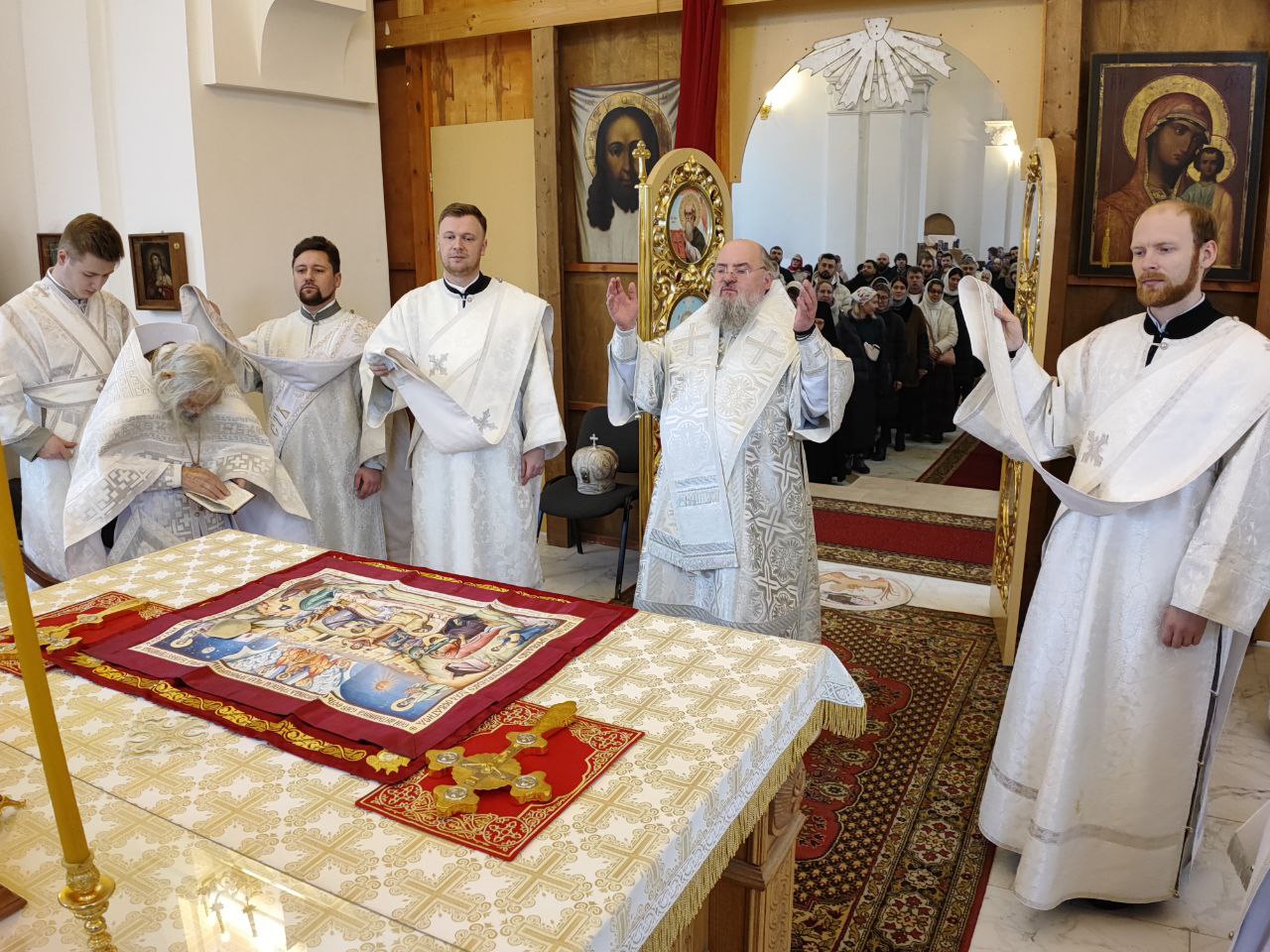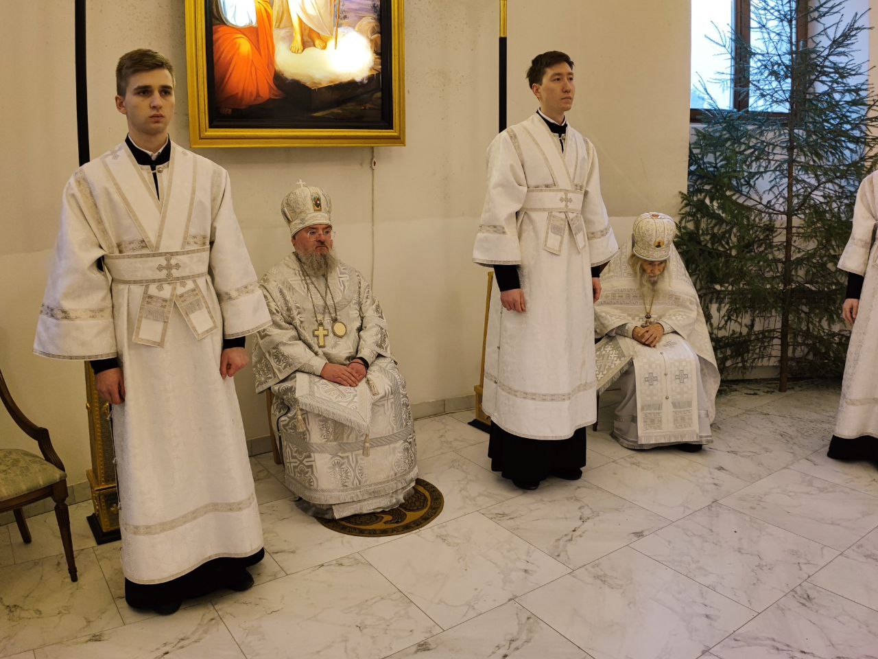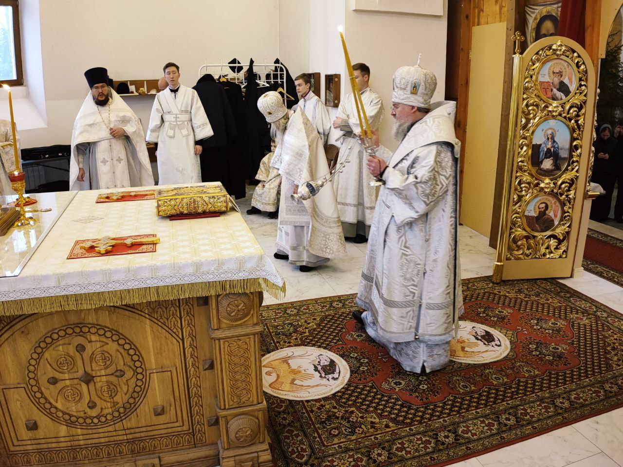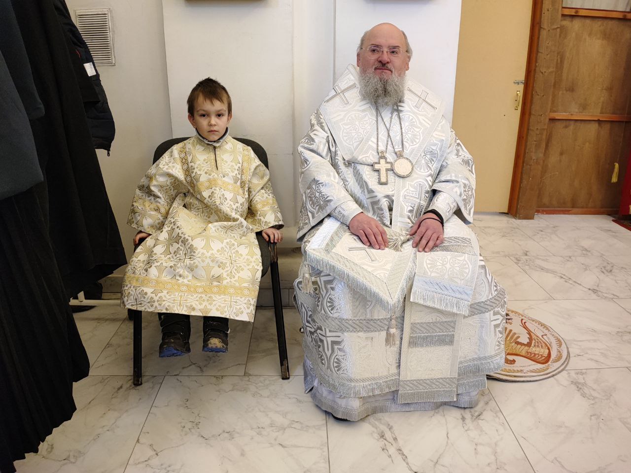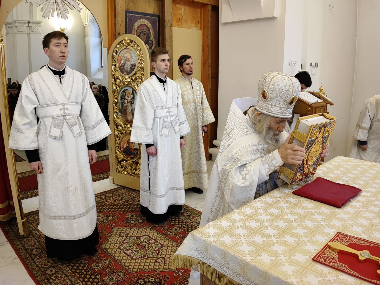 Его Преосвященству сослужили: схиархимандрит Илий (Ноздрин), протоиерей Антоний Хатунцев, иерей Дионисий Куваев – настоятель храма, диакон Евгений Ковригин, иеродиакон Лука (Старостин) и диакон Павел Викулов.