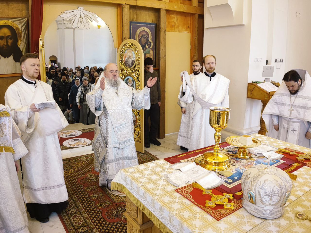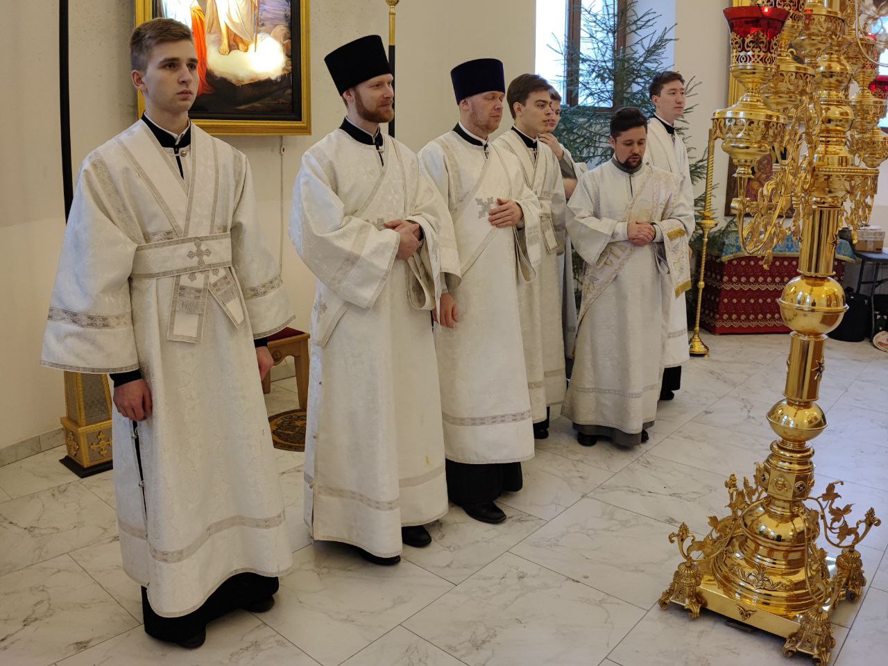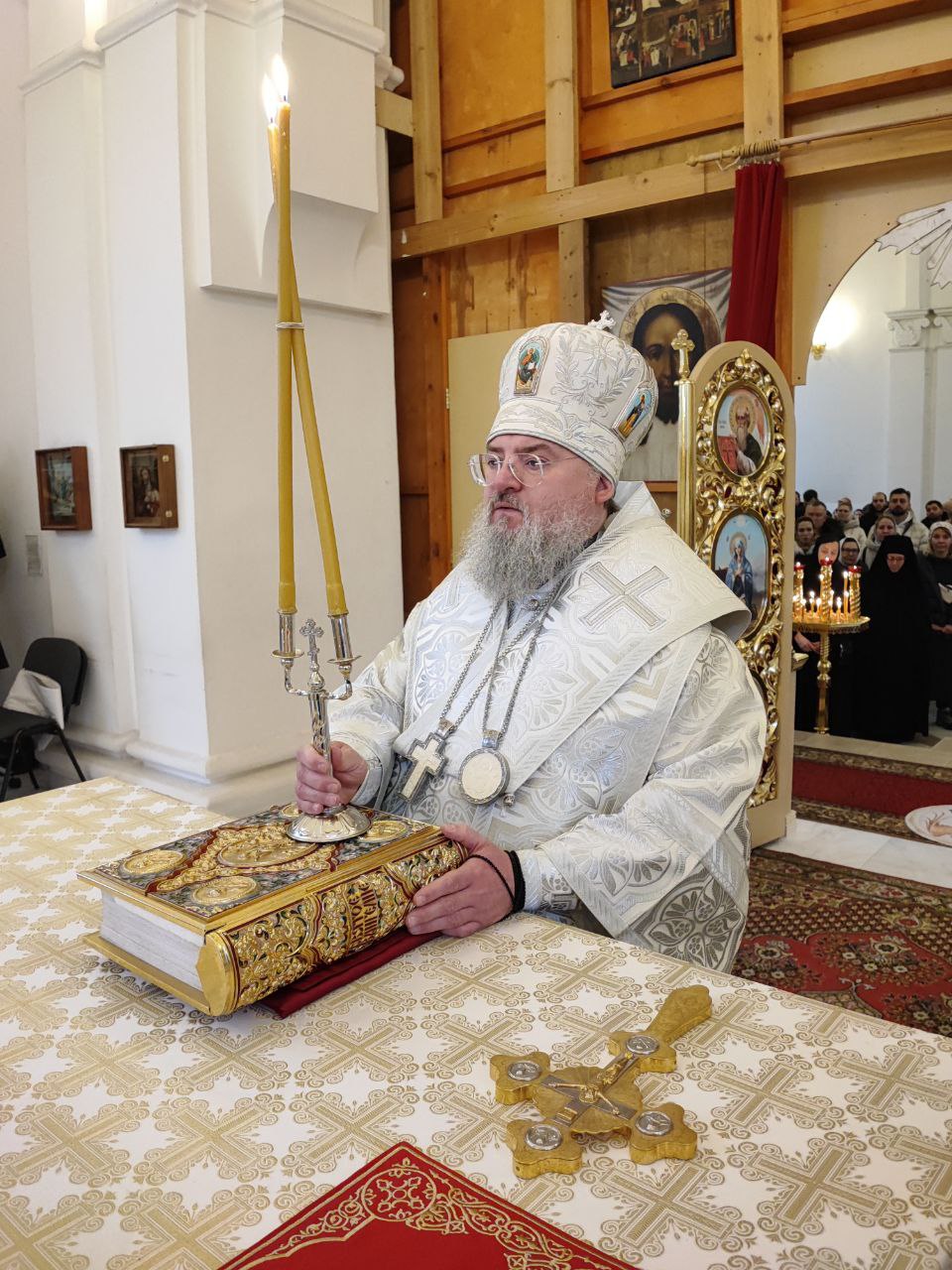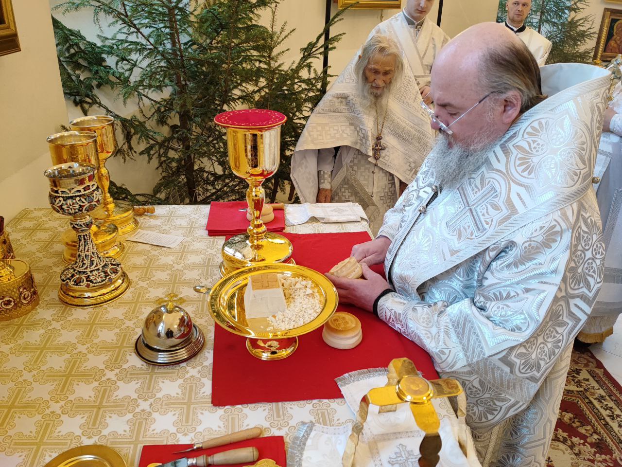 Его Преосвященству сослужили: схиархимандрит Илий (Ноздрин), протоиерей Антоний Хатунцев, иерей Дионисий Куваев – настоятель храма, диакон Евгений Ковригин, иеродиакон Лука (Старостин) и диакон Павел Викулов.