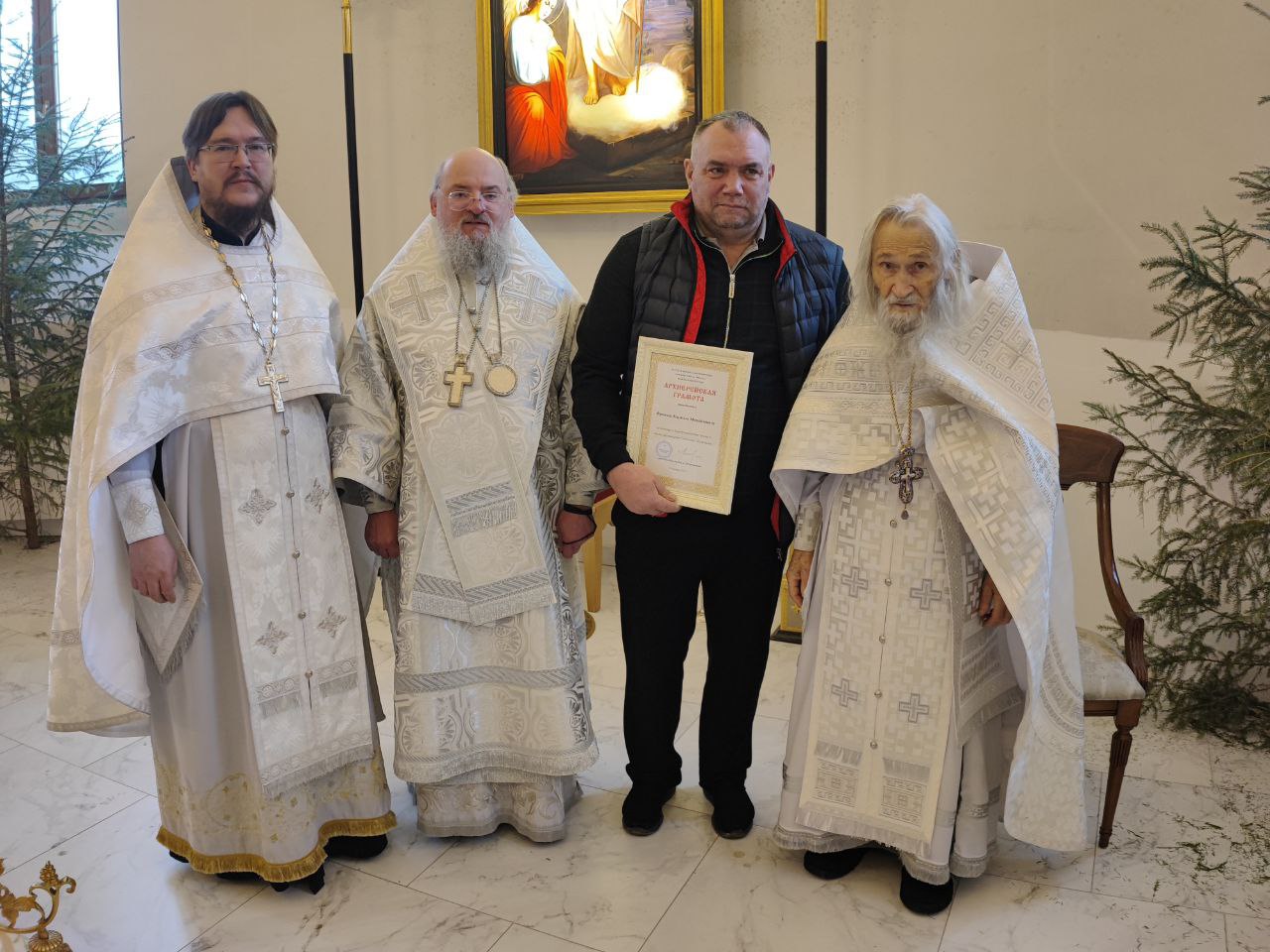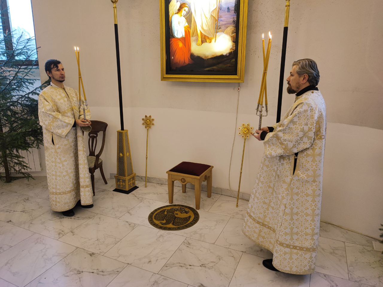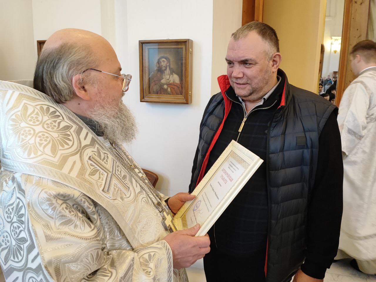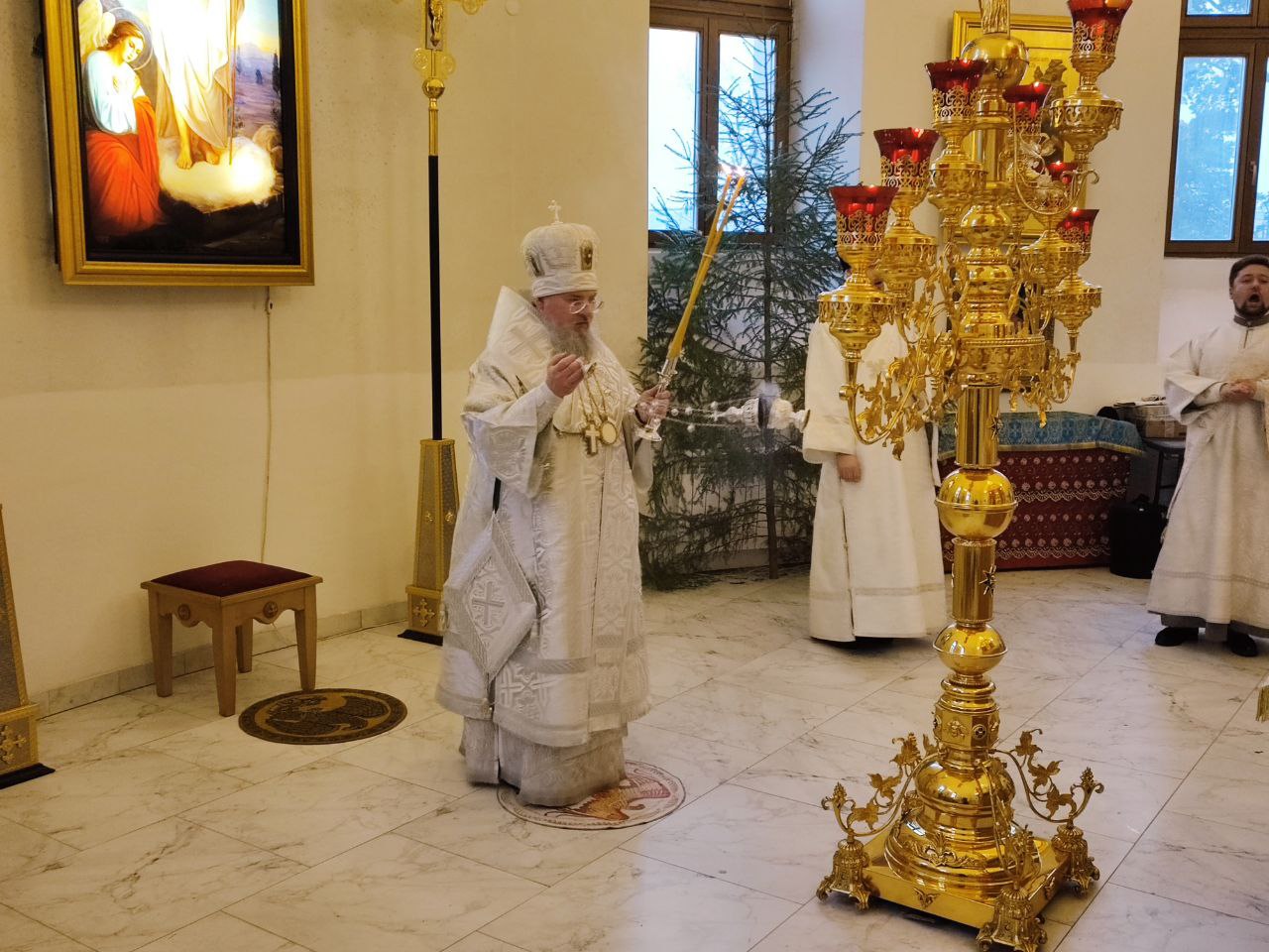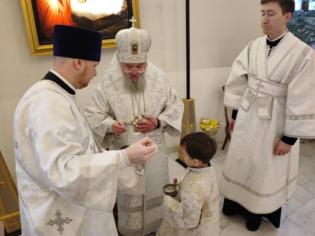 Его Преосвященству сослужили: схиархимандрит Илий (Ноздрин), протоиерей Антоний Хатунцев, иерей Дионисий Куваев – настоятель храма, диакон Евгений Ковригин, иеродиакон Лука (Старостин) и диакон Павел Викулов.